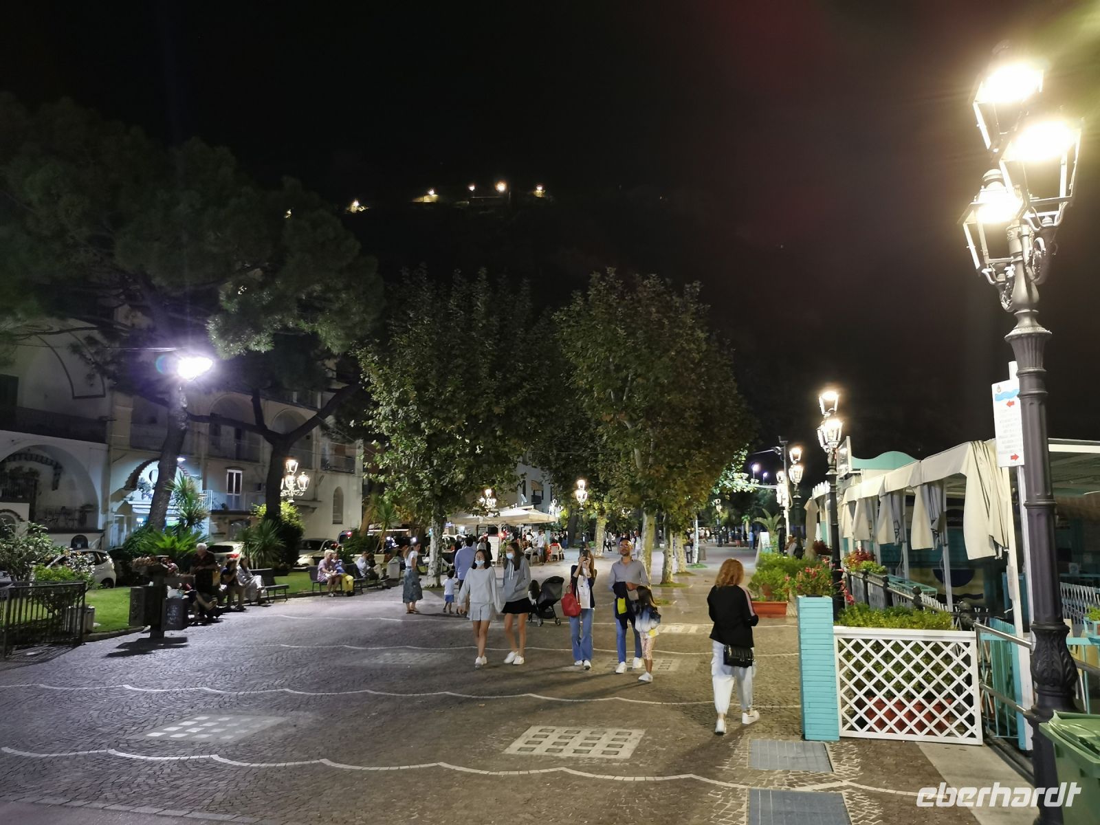 Der Herbst an der Amalfiküste hat seine Besonderheiten. Feigen und Johannisbrot waren reif geworden und wir konnten uns während der Wanderung an den Früchten erlaben. An den Hängen standen zahlreiche Zitronenhaine, abgedeckt unter schwarzen Netzen um die köstlichen Früchte vor Hagel zu schützen. Der Weg führte über unzählige Stufen steil hinunter nach Pontone und wieder hinauf zum Piazza de S. Giovanni. Dort fanden wir uns in der lokalen Attraktion Blu Bar wieder. Ein nettes, typisches italienisches Restaurant bekannt für vorzügliche Speisen und freundlichem Service.