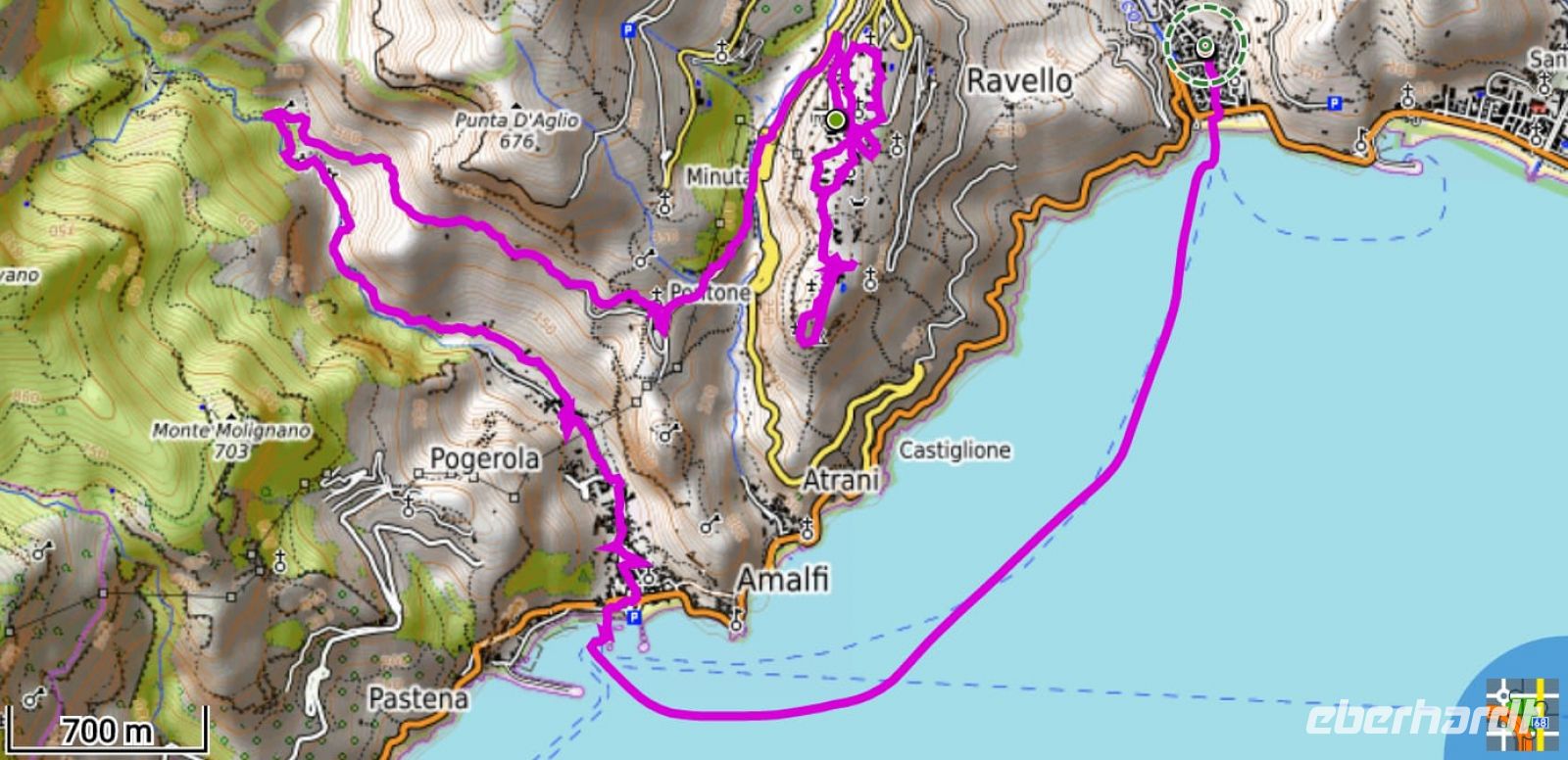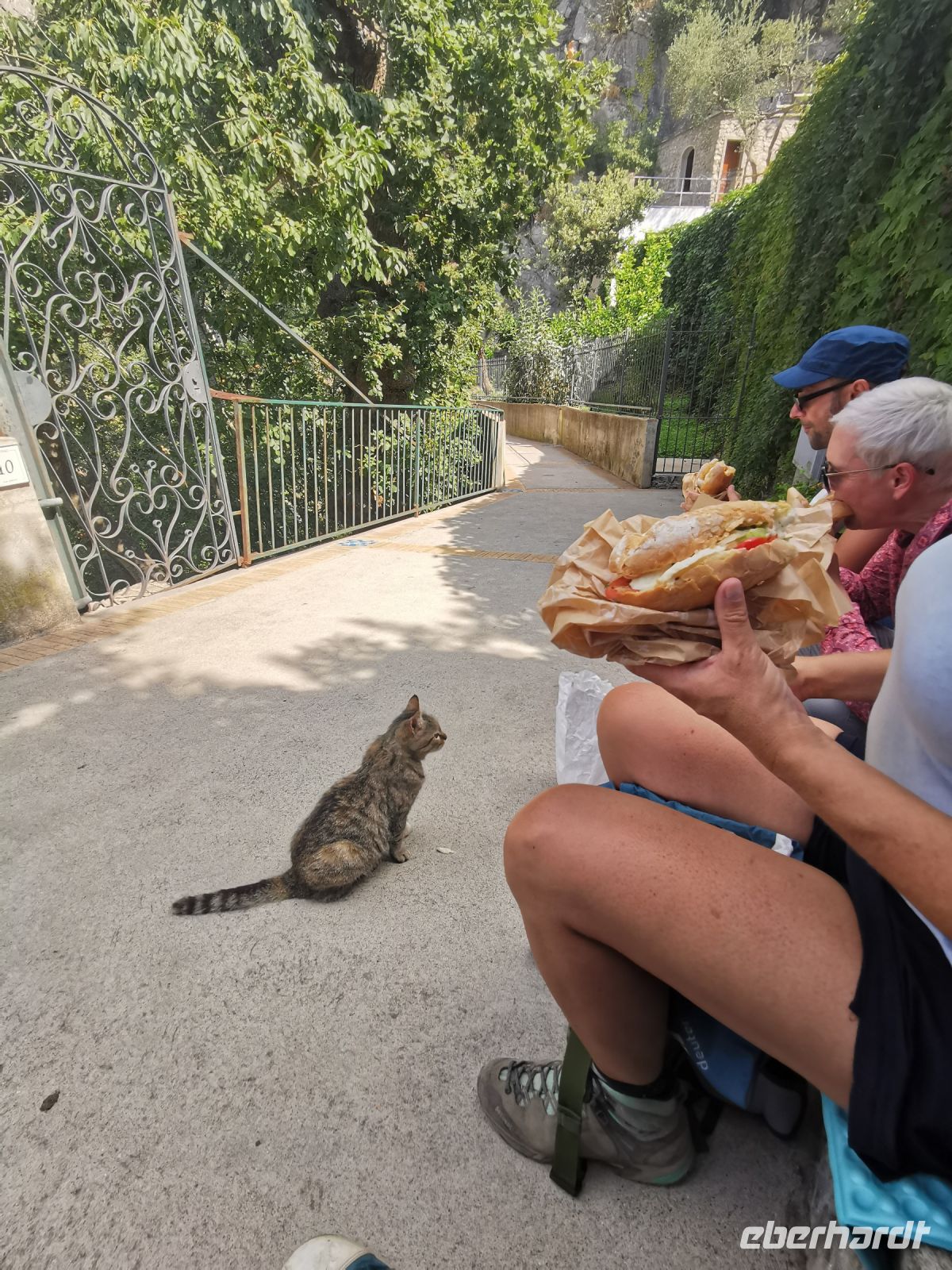 In Amalfi hatte man jetzt Zeit die Stadt näher zu erkunden. Ein Besuch im mittelalterlichen Dom zu Amalfi lohnt sich auf jedenfall. Oder in einem Kaffee das geschäftige Treiben der Touristen zuzusehen. Ich selbst traf mich mit Frau Marrone, die unsere Wanderreise in Amalfi in Zusammenarbeit mit Eberhardt erstellte. Da sie eine andere Reisegruppe leiten musste, erkundigte sie sich nach dem Wohlbefinden und der Zufriedenheit der Wandergäste.