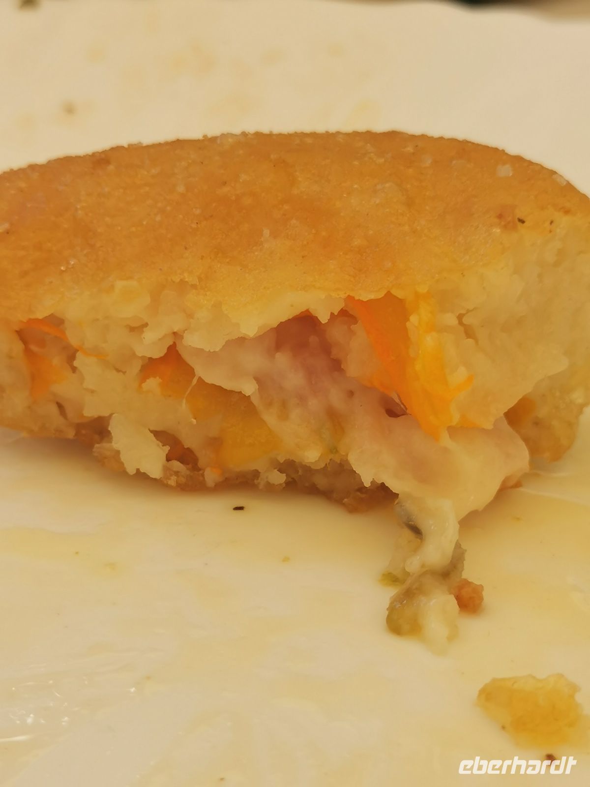 Diese panierten Zuchiniblätter wurden einstimmig von der gesamten Gruppe als bestes Essen aus dem Menü empfunden.