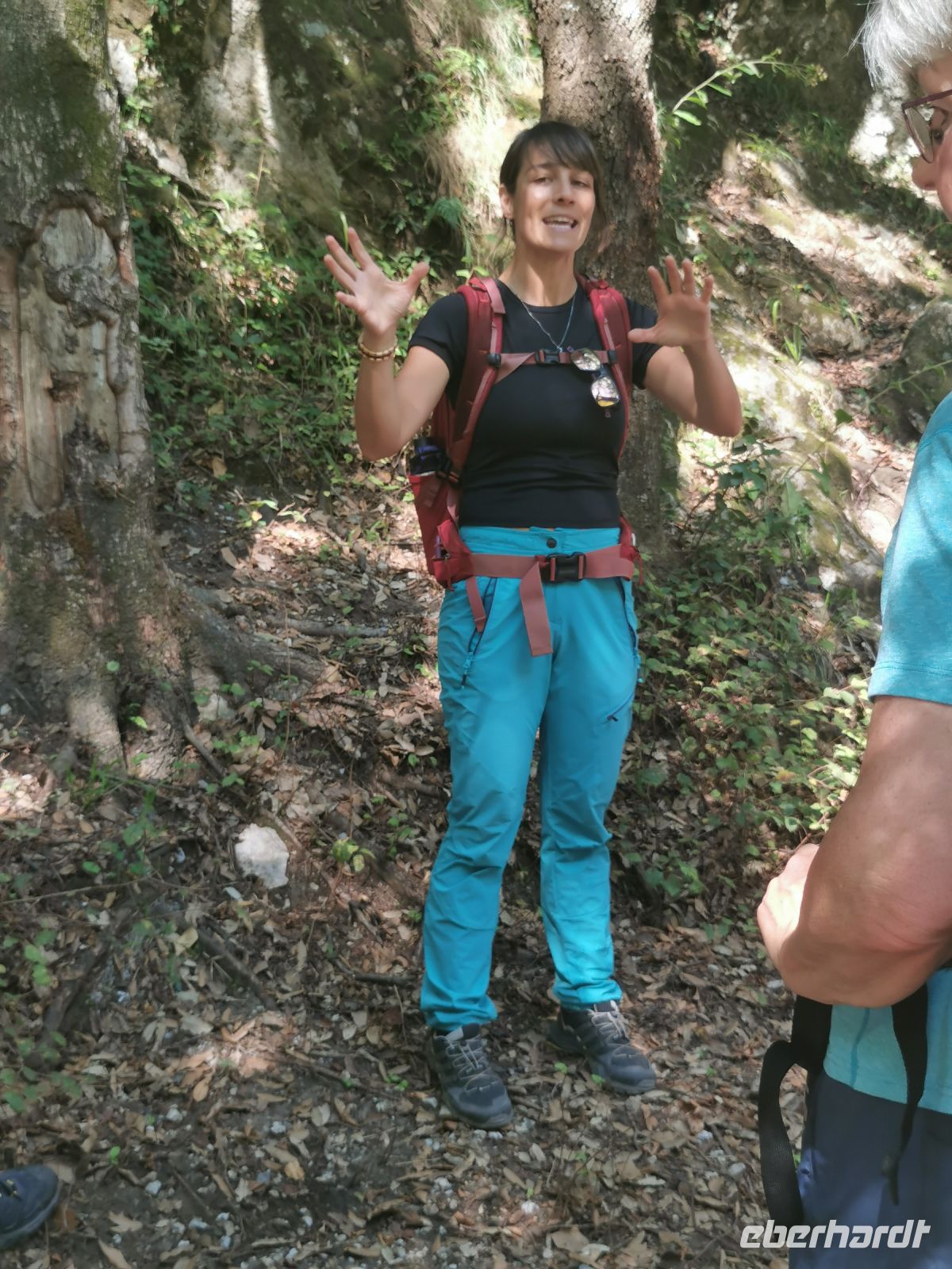 Eine Stimme erhob sich und klang an unser Ohr. Die wohl süßeste Stimme Italiens. Mitten in der Gruppe erschien sie, Veronika Verde, unsere Wanderführerin für die ganze Woche. Ein großes Glück, sie in unserer Mitte zu haben, was bedeutet, sie in unserer Gemeinschaft zu haben.