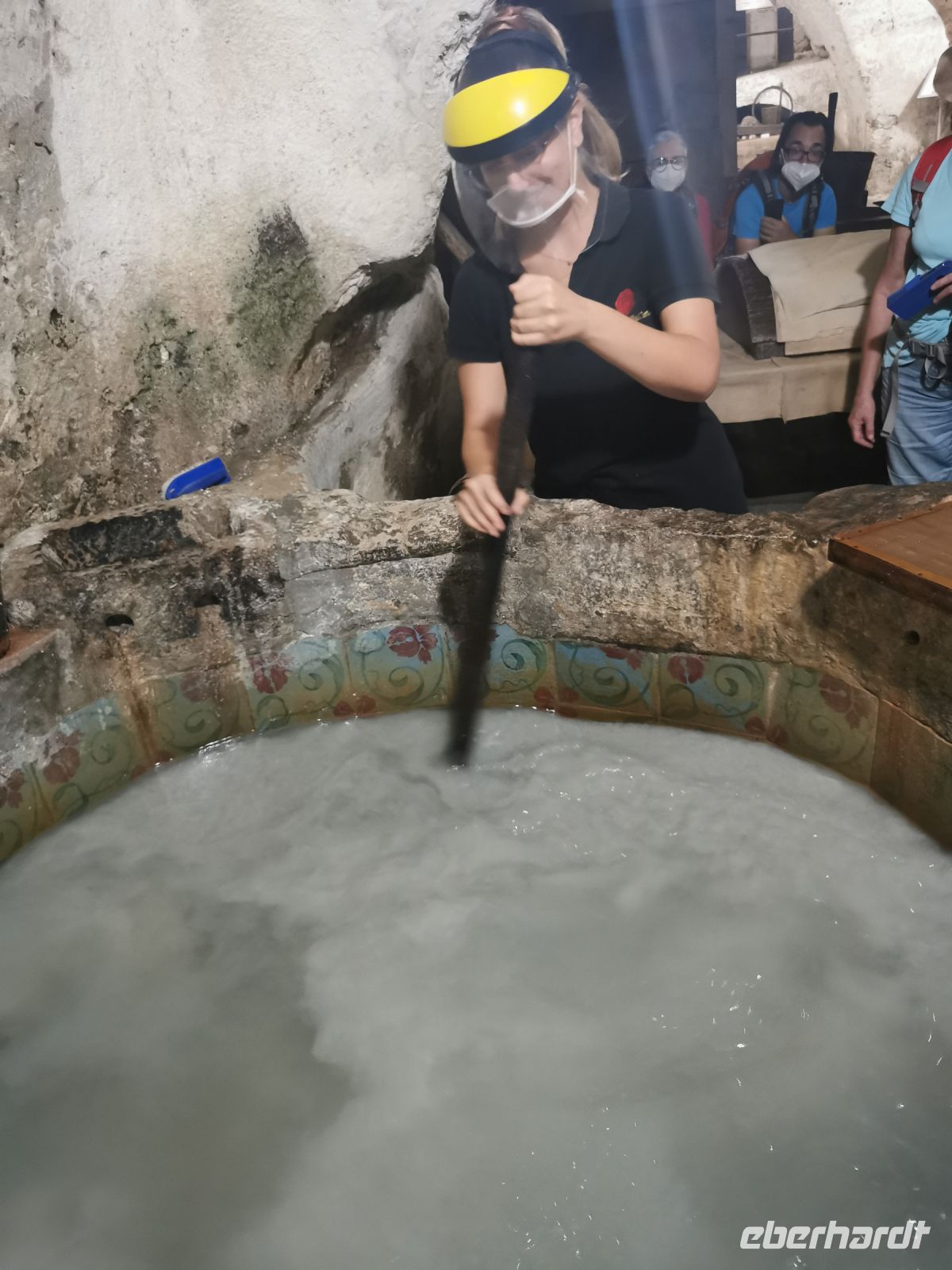 Im Papiermuseum erklärte man uns den Unterschied zwischen Amalfipapier und Büttenpapier ganz anschaulich und praktisch an den alten Maschinen.