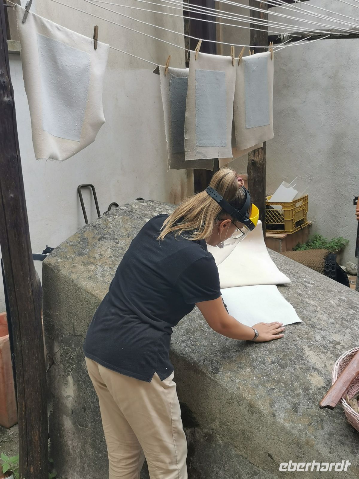 Natürlich durfte sich einer aus der Gruppe als Papiermacher beweisen. Er machte seine Sache sehr gut und hält nun sein eigenes Stück Amalfipapier in Ehren.