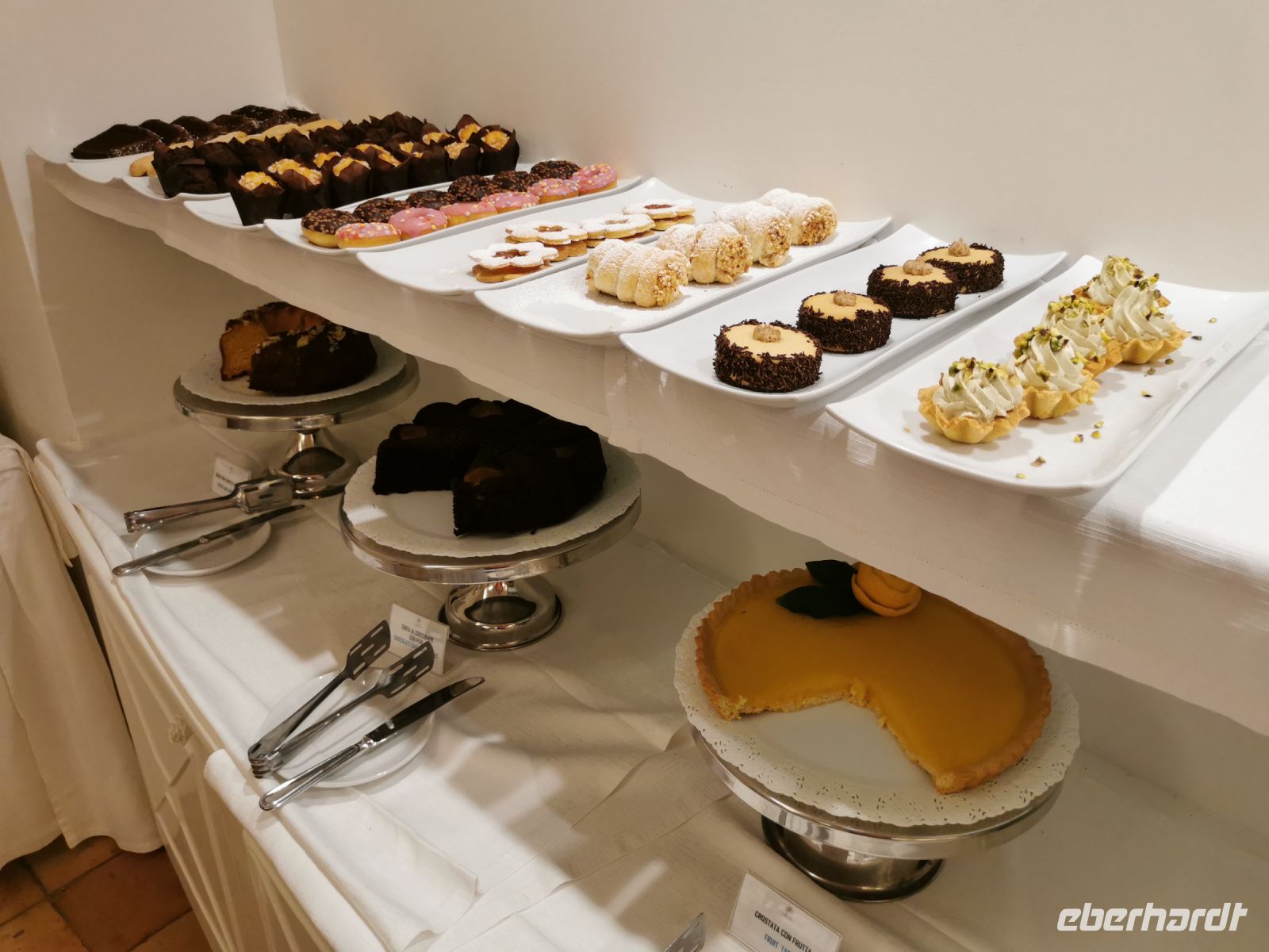 Wer gerne Süßes mochte, der fühlte sich hier im Paradies. Aber auch für Herzhaftes wurde gesorgt. Salami, luftgetrocknetes Pancetta, wer mochte, konnte es mit Melonen essen, warme Speisen, Salate, Obst, Marmeladen, Honig und die beliebten Müslis. Für jeden gab es das Richtige und so konnten wir gestärkt in den Tag hinein gehen.