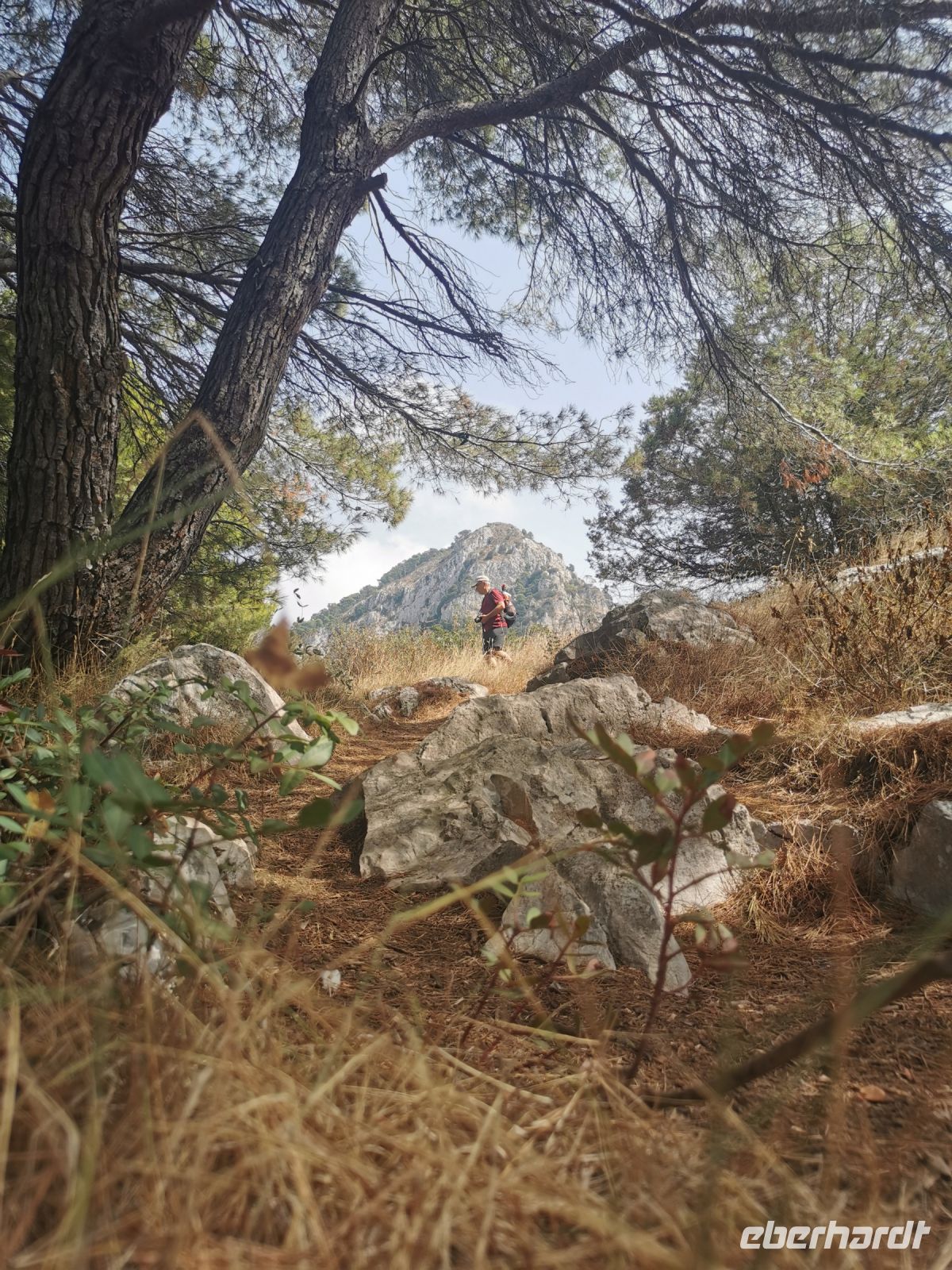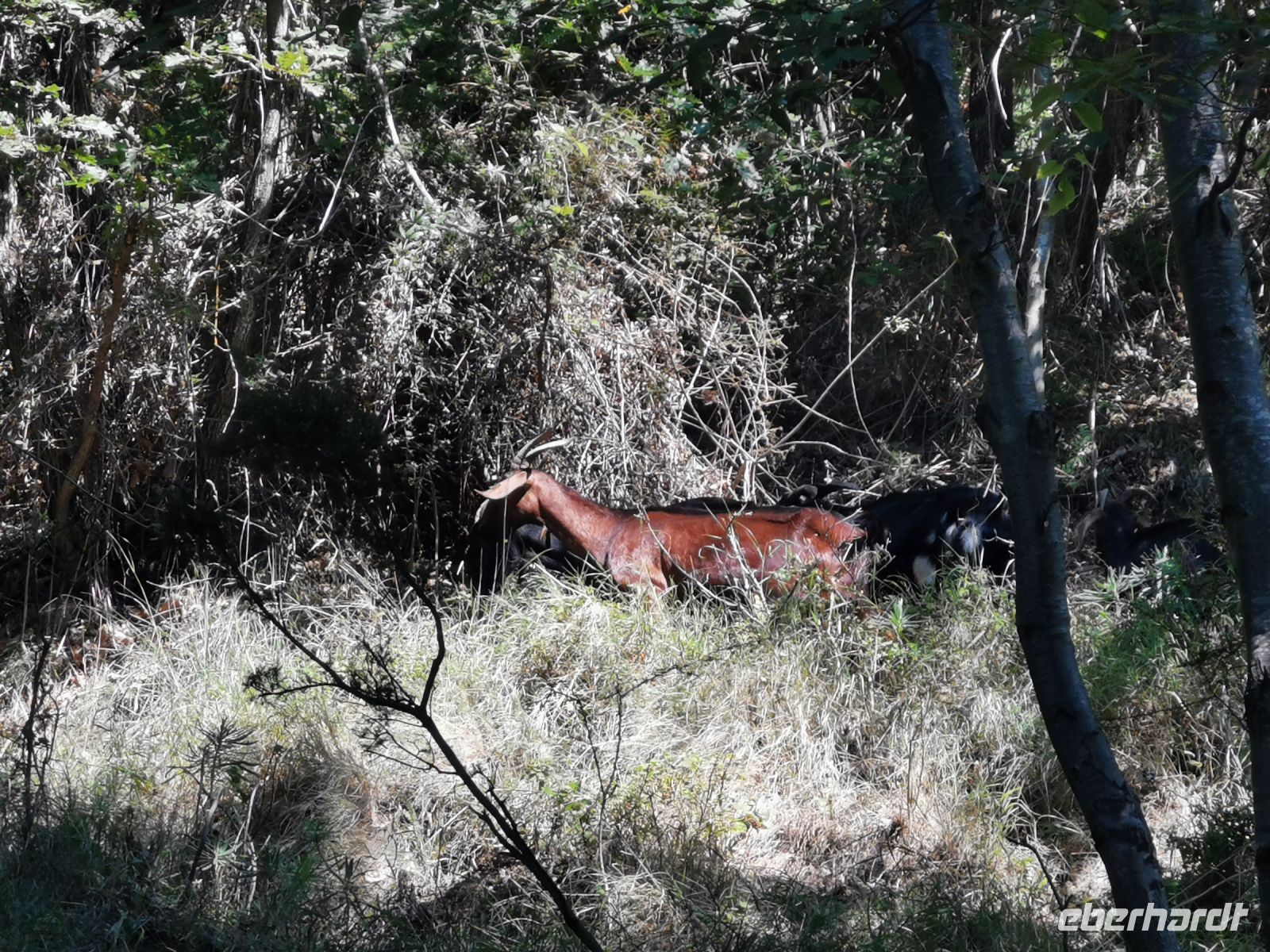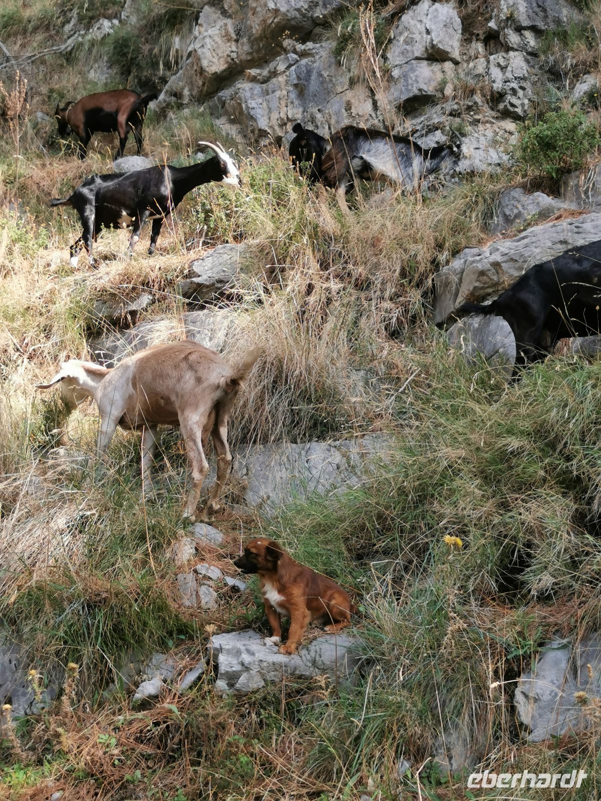 Da war mitten im Wald der Ziegenhirte, den man durch die sonnengebräunte Hautfarbe kaum von den Bäumen unterscheiden konnte. Plötzlich stand er am Wegesrand und pfiff seine Melodie, lächelte uns zu und erzählte, dass er mit seinen Hunden und dem Maultier geduldig auf seine Ziegen wartet. In der Ferne konnte man schon die Glocken seiner Herde hören. Der Herr kennt seine Ziegen und die Ziegen ihren Herrn. Unweit des Hirten sah man wie die Herde dem Hirten bereits entgegen lief, unter den achtsamen Augen des Ziegenbockes, der auch schon mal energisch etwaige Langweiler antreiben musste.