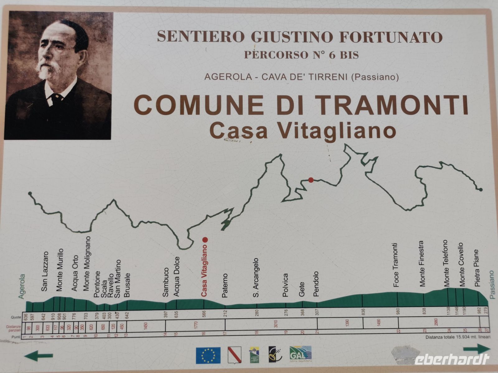 Der Naturpfad, der dem italienischen Historiker und Politiker Giustino Fortunato gewidmet ist, verlangt vom Wanderer absolute Trittsicherheit, Schwindelfreiheit und sehr gute körperliche Verfassung.
