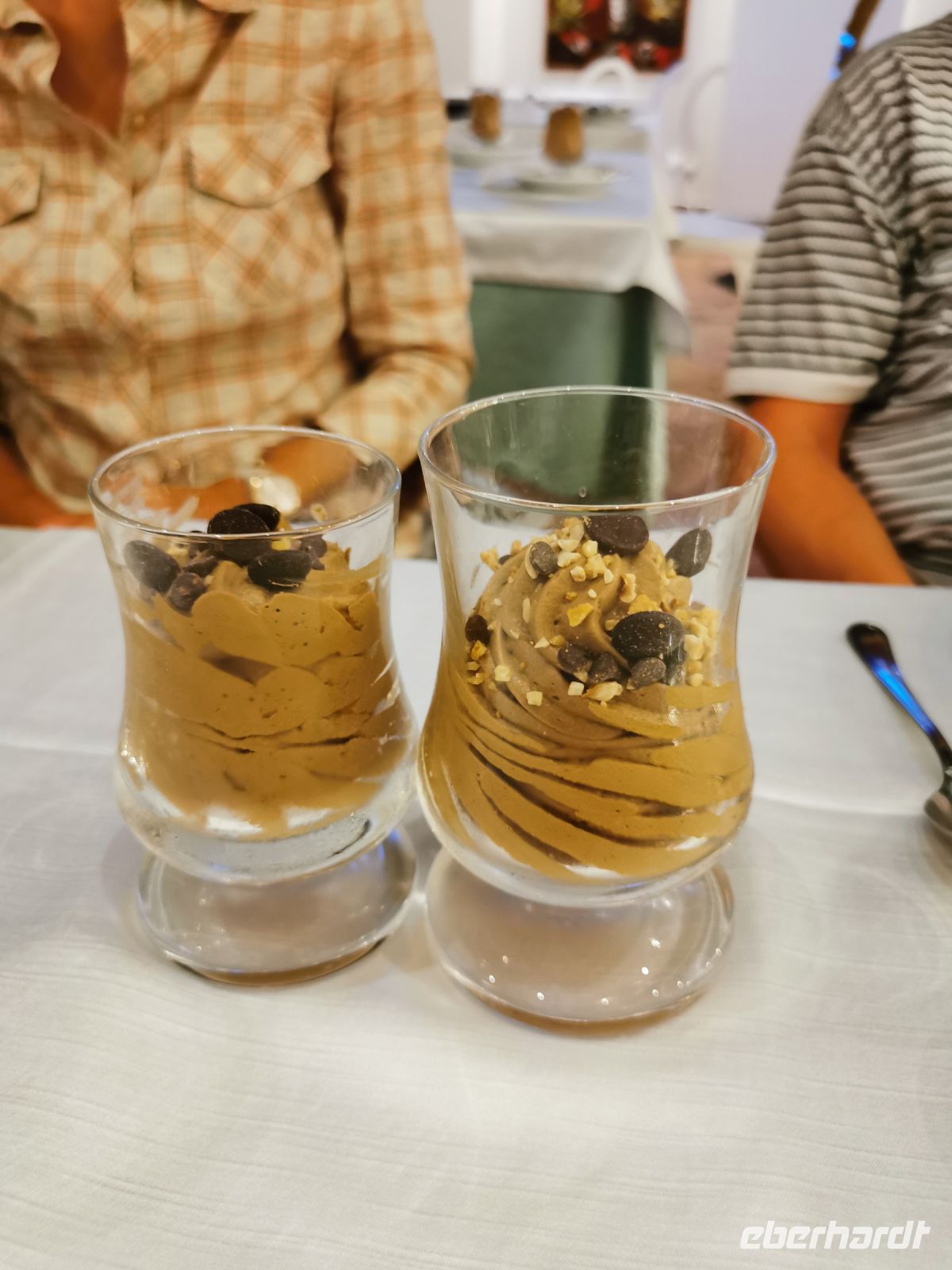 Ein lustiges Ereignis erwartete uns beim Abendessen im Hotel, als die Nachspeise Mousse au chocolat in Gläsern serviert wurde.