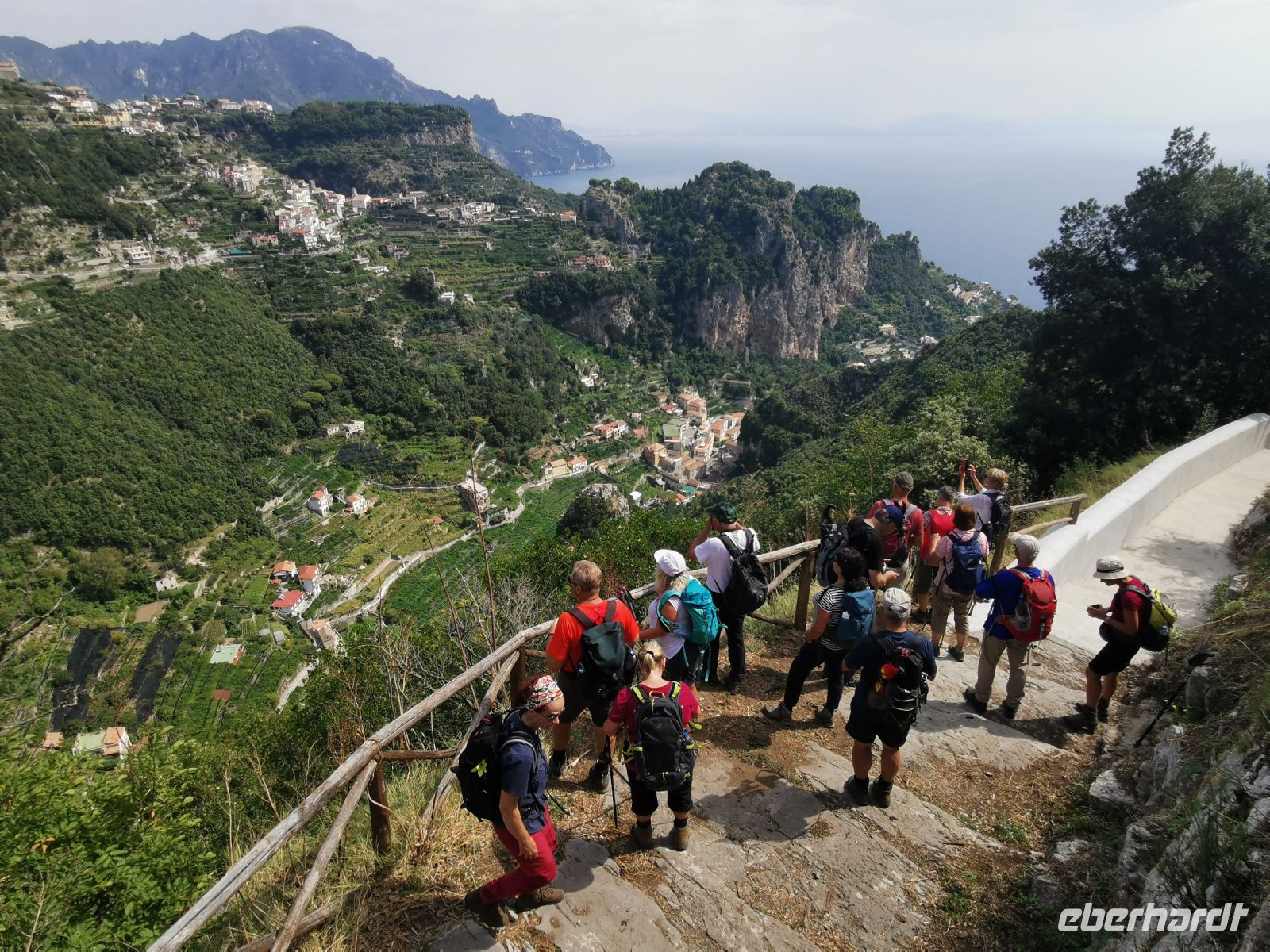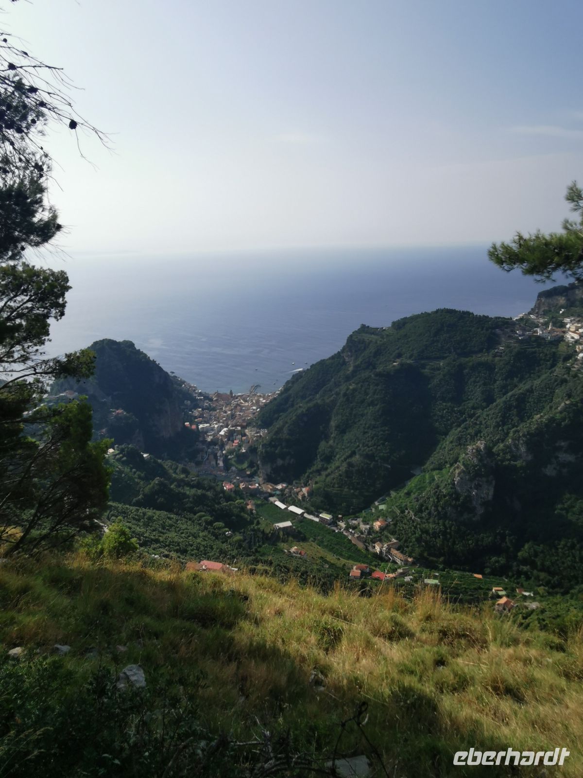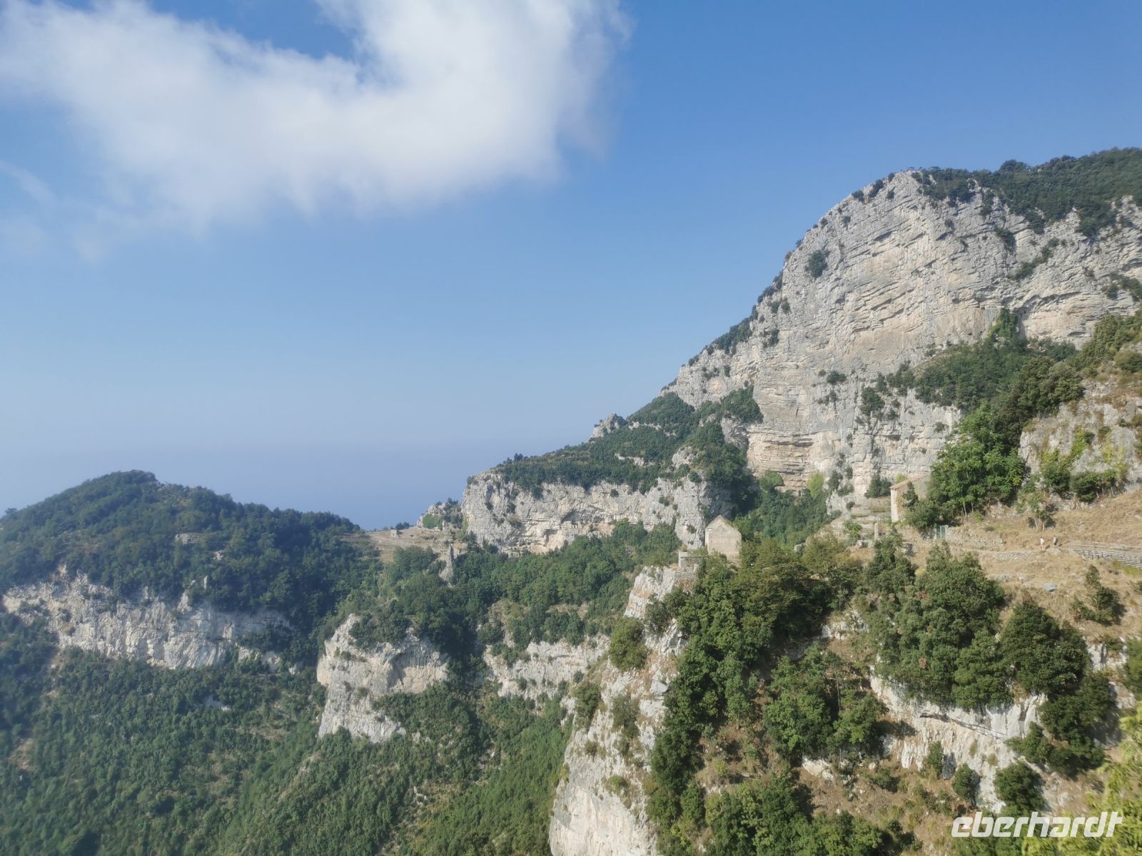 Veronika führte uns auf ein Plateau mit einer atemberaubenden Aussicht hinunter nach Majori und hinaus aufs Meer. Das Staunen in der Gruppe war nicht zu überhören. Auch hier konnte kein Foto der Welt dieses Empfinden widerspiegeln, dass man in dem Augenblick tief in der Seele spürte.