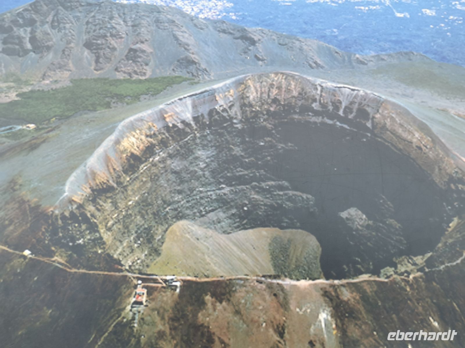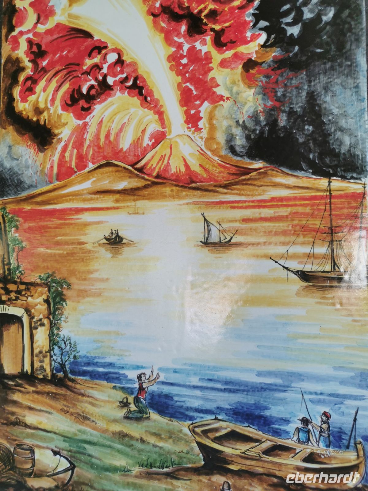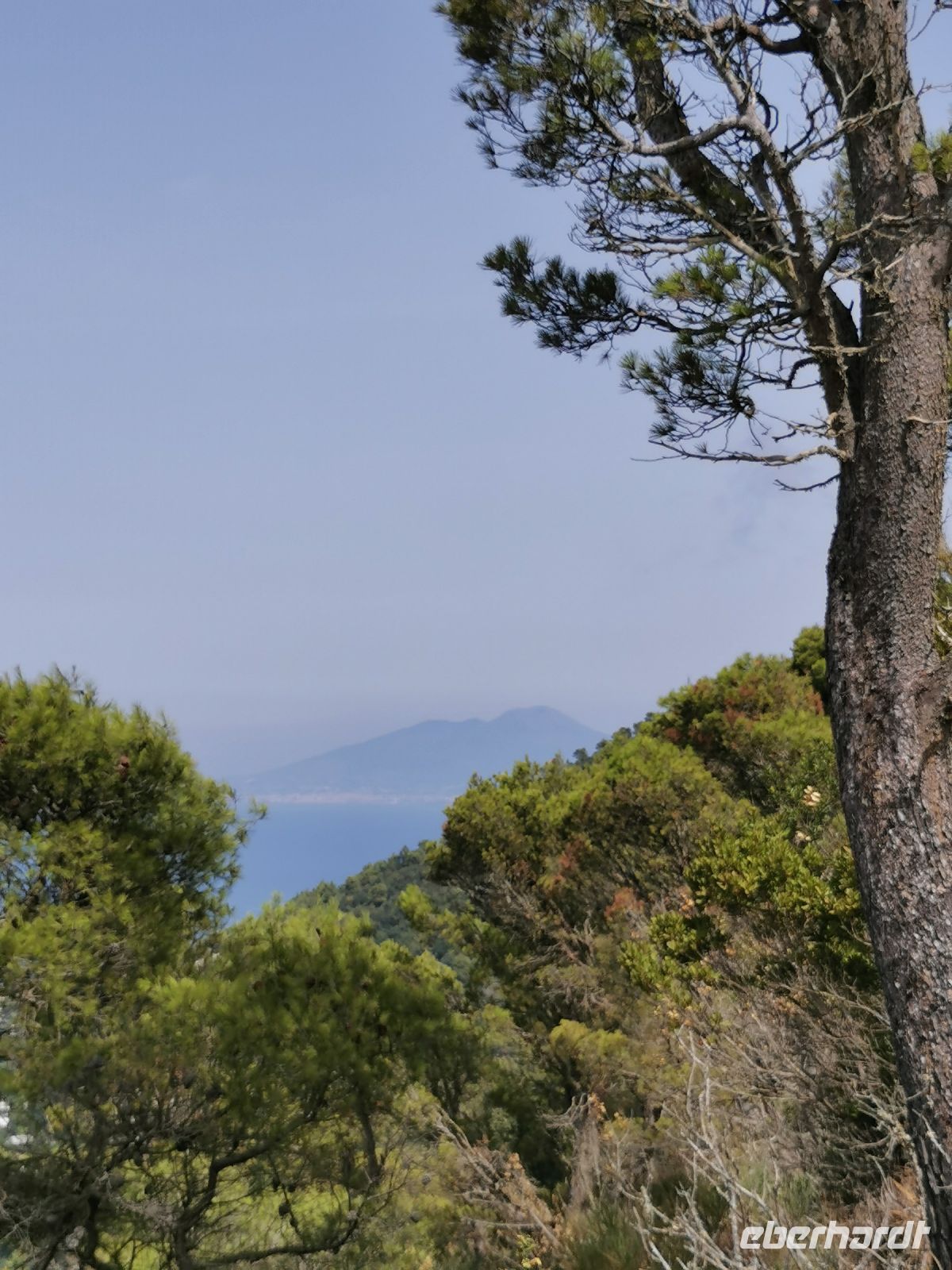 Nochmals vorbei an den Monte Lattari, den Milchbergen zur linken Seite, mit den markanten drei Gipfeln die an Schneide- Eck- und Backenzahn erinnern. Hinter den Bergen liegen, vielleicht ein Tagesmarsch entfernt, die Täler der Eisenhütten und der Mühlen und damit auch unser Ort Minori. Auf der rechten Seite grüßte uns der Vesuv ein letztesmal, als wollte er uns sagen, kommt bald wieder.