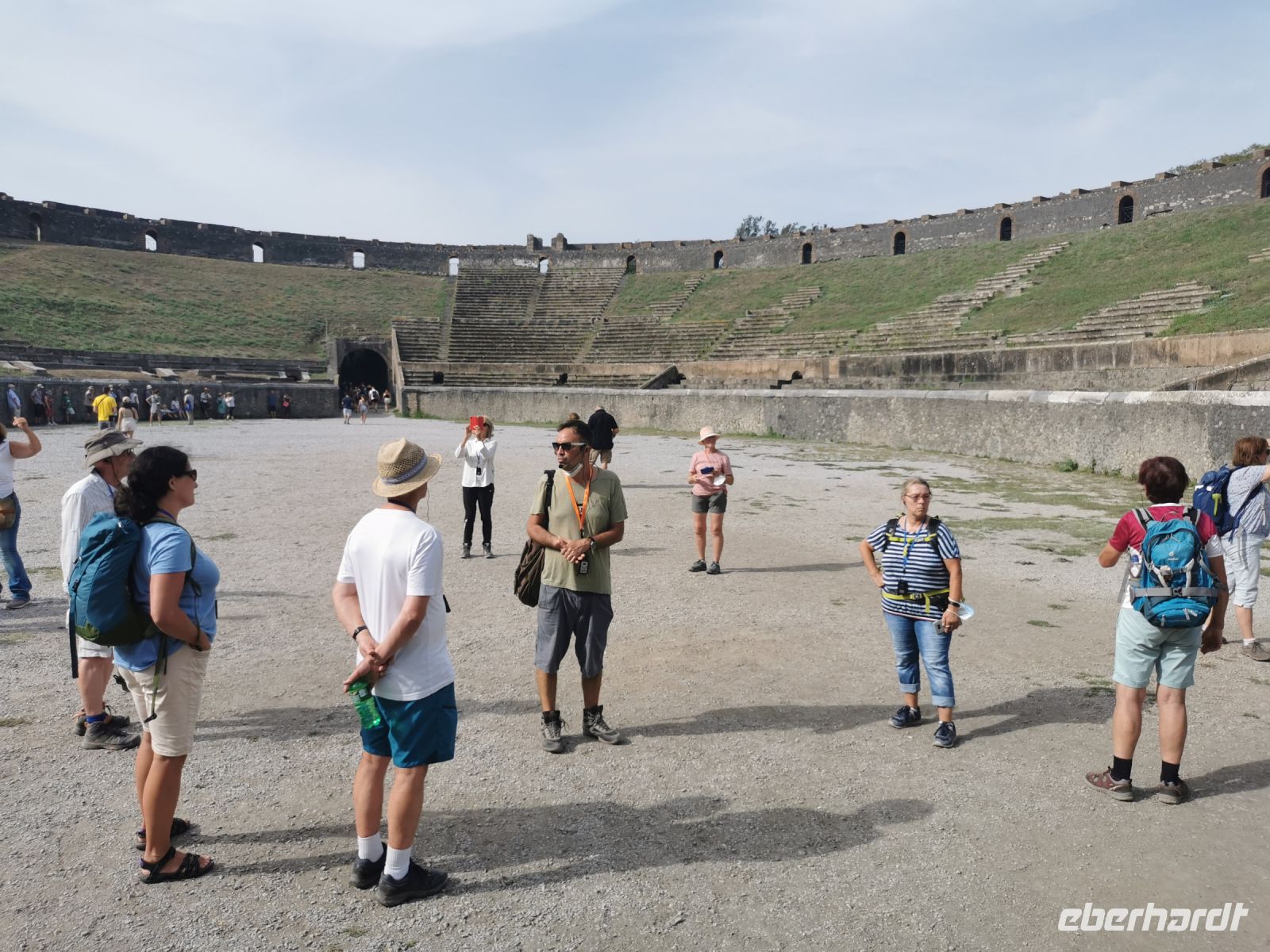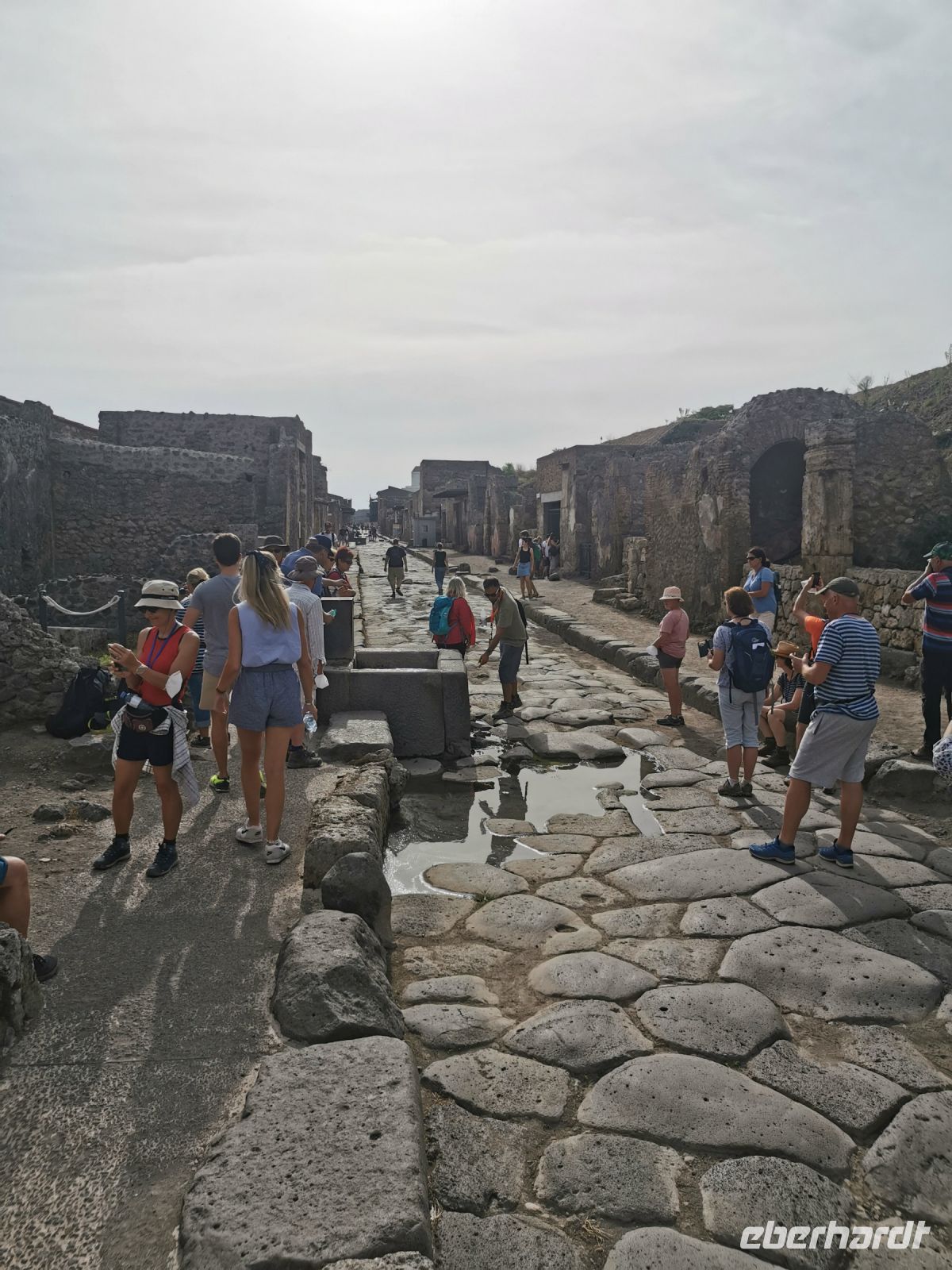 Wohl gestärkt und sehr zufrieden erreichten wir Pompeji. Veronika hat uns jetzt verlassen und fuhr heim zur Familie nach Sorrent und Florian übernahm die Führung durch die 2/3 ausgegrabene Stadt. Auch hier erneut Maske, Covid Pass und Perso, was aber Schwachsinn war, denn gleich nach dem Eingang nahmen wir die Masken wieder ab und keiner fragte mehr danach.