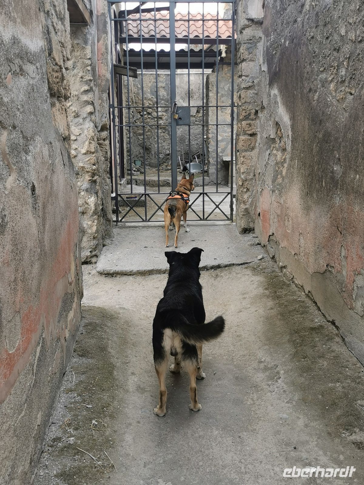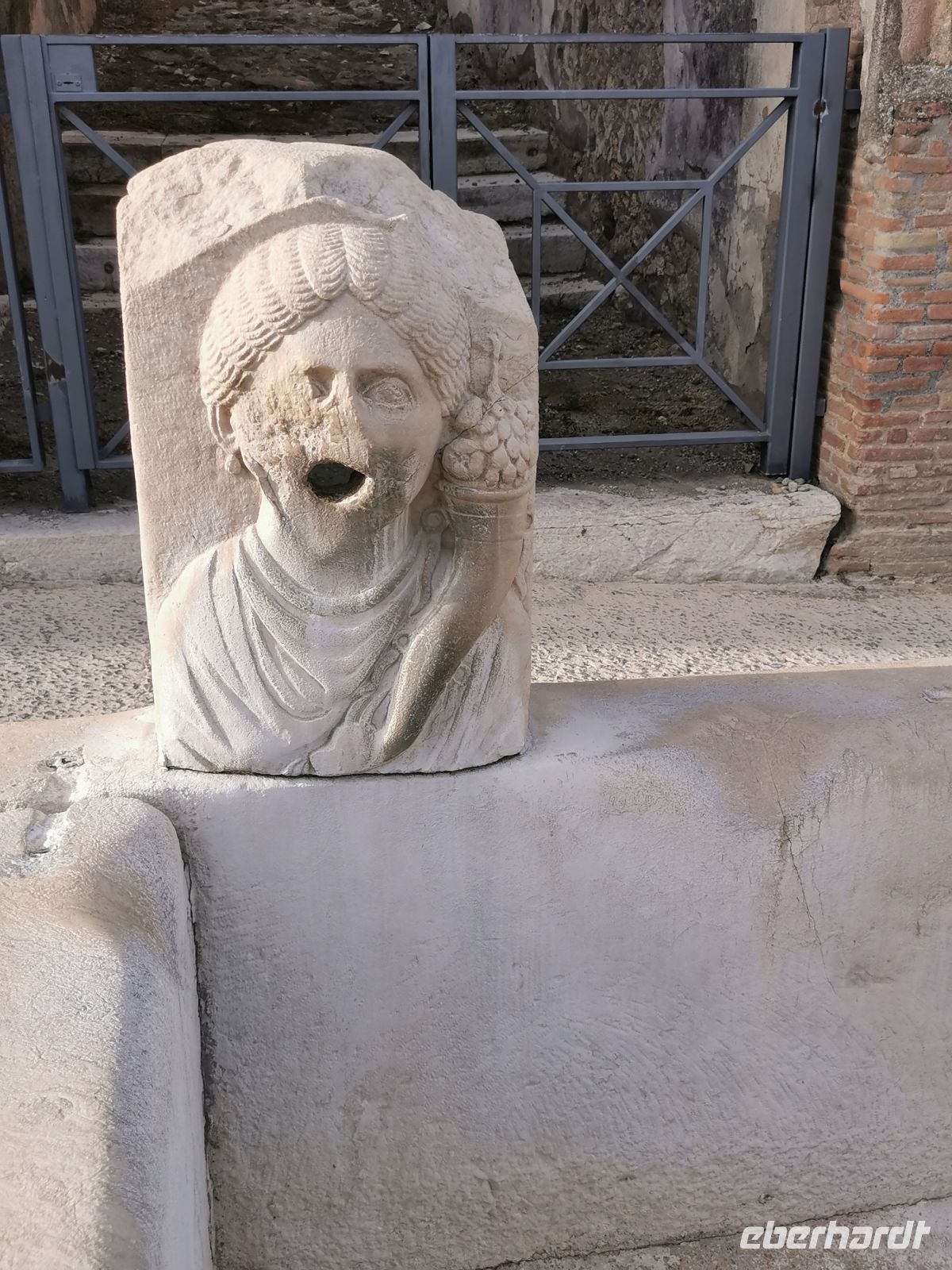 Straßennamen gab es keine in Pompeji, dafür aber Zeichen und Ornamente an den Häuserecken. Auch Freudenhäuser erkannte man an Phallussymbolen auf den Gehwegen. Man muss sich vorstellen, Pompeji war reich und gut besucht von Händlern aus der ganzen Welt und nicht jeder war der Landessprache mächtig. Aber Zeichen konnte jeder verstehen.