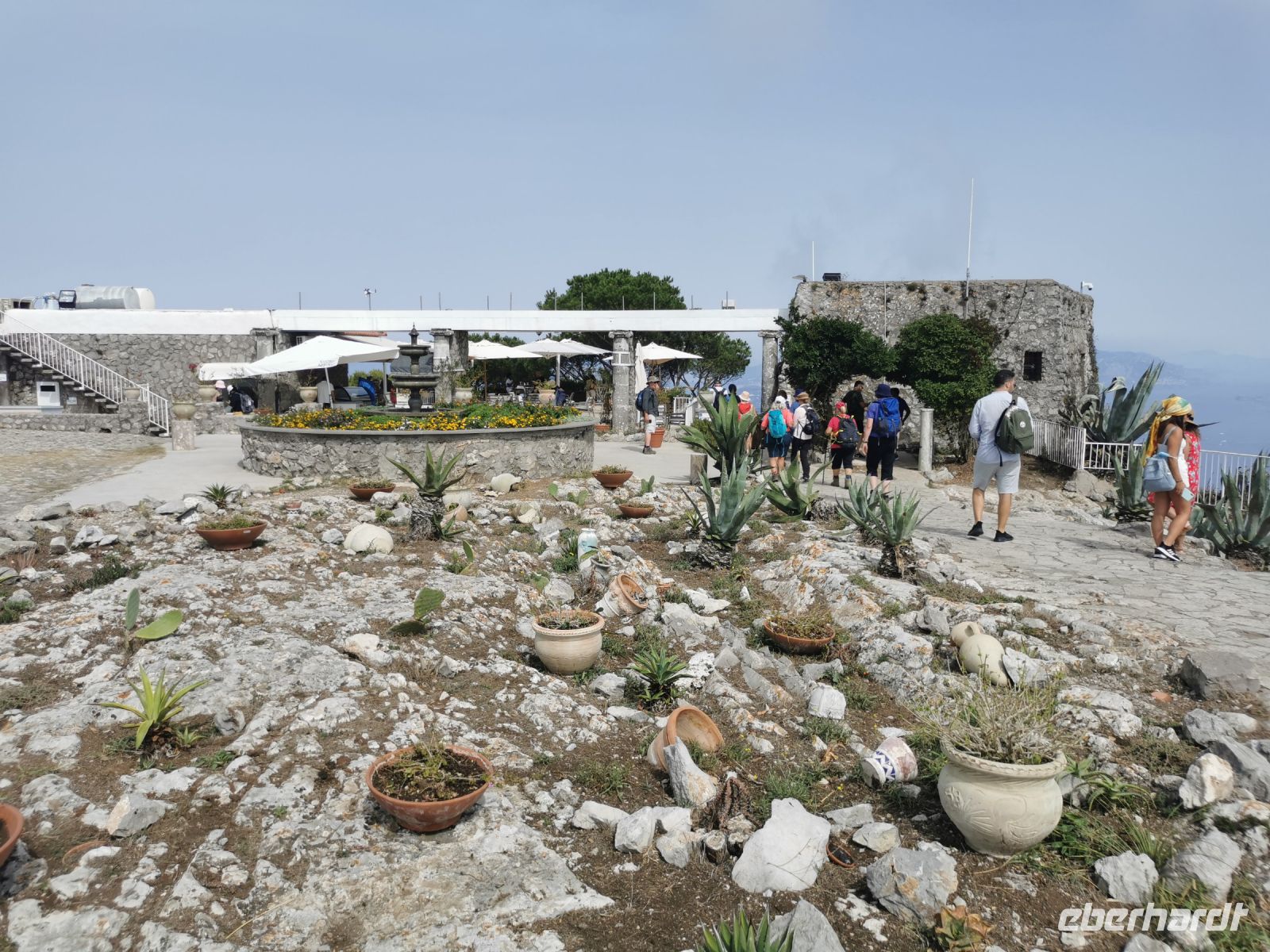 Durch den langsamen Aufstieg zum Gipfel, zum Einen weil dieser Weg mit so vielen spektakulären Aussichten gespickt war, wo man einfach verweilen und genießen musste, und zum Anderen, weil man durch den steilen Anstieg mehr Verschnaufpausen benötigte, verging die Zeit zu schnell. Man wollte doch noch den Ort Capri erkunden, die Reichen und Schönen sehen, den Kaffee oder das Bier an der Plazza trinken und einfach dem Treiben zusehen.
