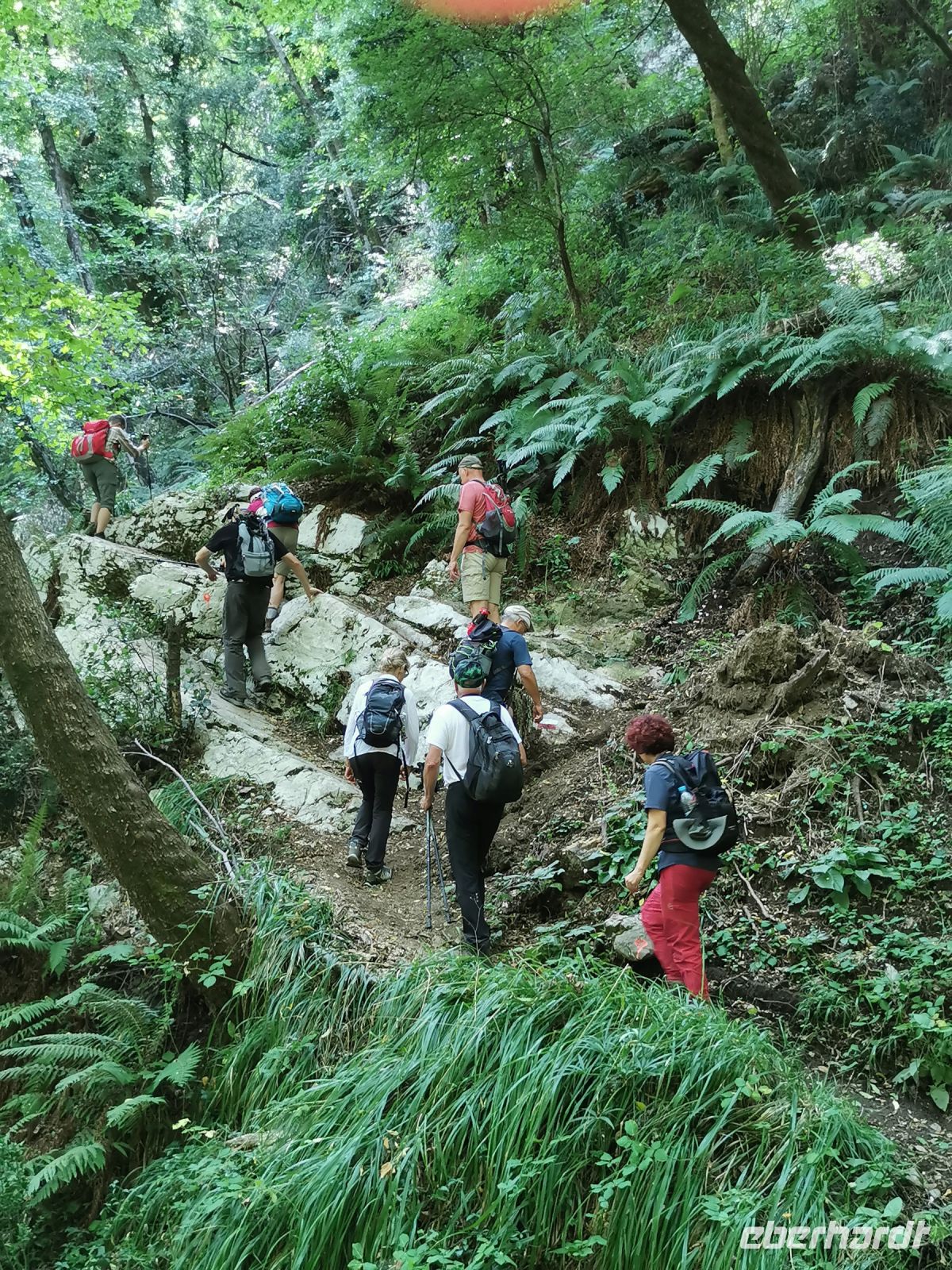 Man fühlte sich wie auf einer Expedition. Zielsicher geführt von Veronika, durch einen Wald, der uns an Urwald und Dschungel erinnerte. Eine wirklich atemberaubende Landschaft. Ein Rastplatz mitten im Wald, gelegen am Fluss Canneto, lud zu einer Pause ein bei der auch die Wasserflaschen wieder gefüllt werden konnten.