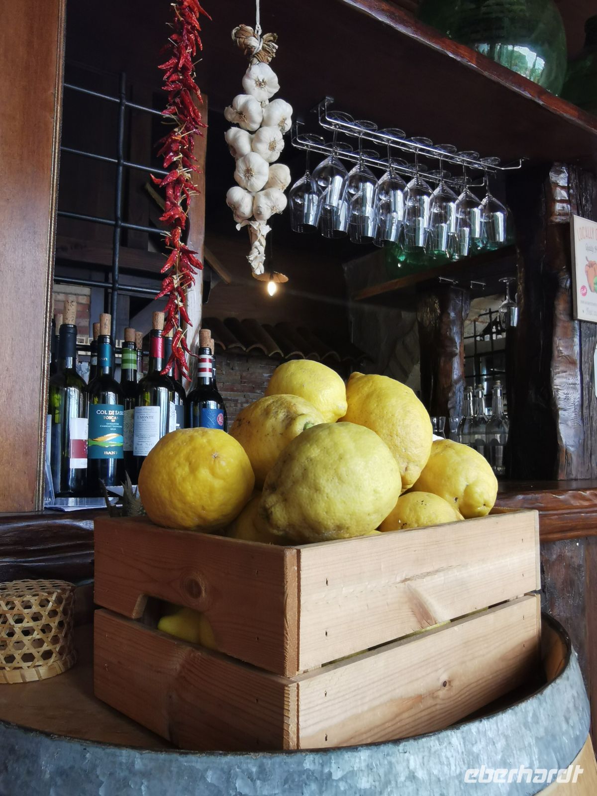 Als krönender Abschluss, nach dem Espresso, das Nationalgetränk das an der Amalfiküste erfunden wurde. Der Limoncello, natürlich hausgemacht. Und diesmal einer der nicht süß war, der eher in Richtung Schnaps ging, aber von ungeheurem Aroma erfüllt war. Übrigens, richtiger Limoncello sollte nicht weniger als 32% haben.