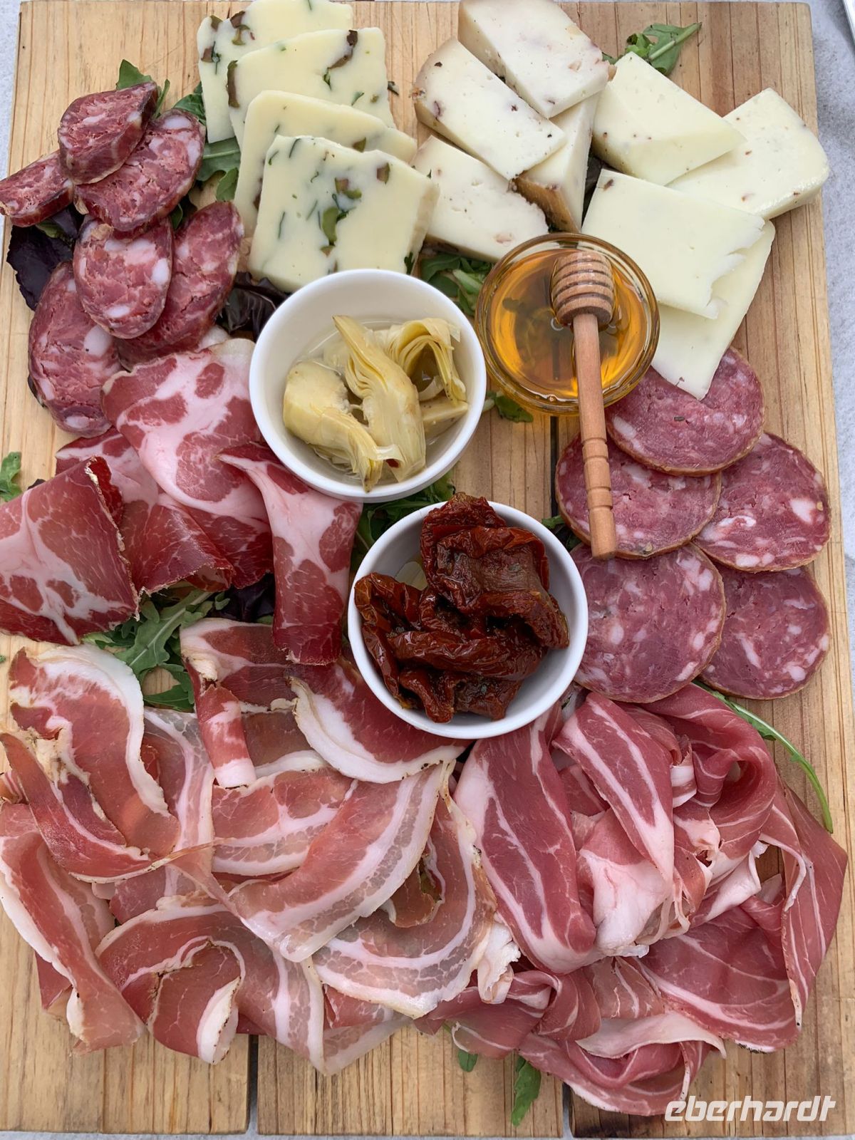 Auch ungeübte Gaumen erkannten sofort den Unterschied zur italienischen Supermarktware die man unter anderen hier in Deutschland kaufen kann, oder teilweise auch serviert bekommt und den Speisen dort vor Ort. Die Salamis und das Pancetta, einfach ein Traum. Wie der Geschmack die Zunge streichelte und der Mozzarella dem Gaumen umschmeichelte. Ein Genuss, die Kompositionen versüßt mit einem Hauch Honig. Dazu passend, natürlich ein Rotwein aus der Region.