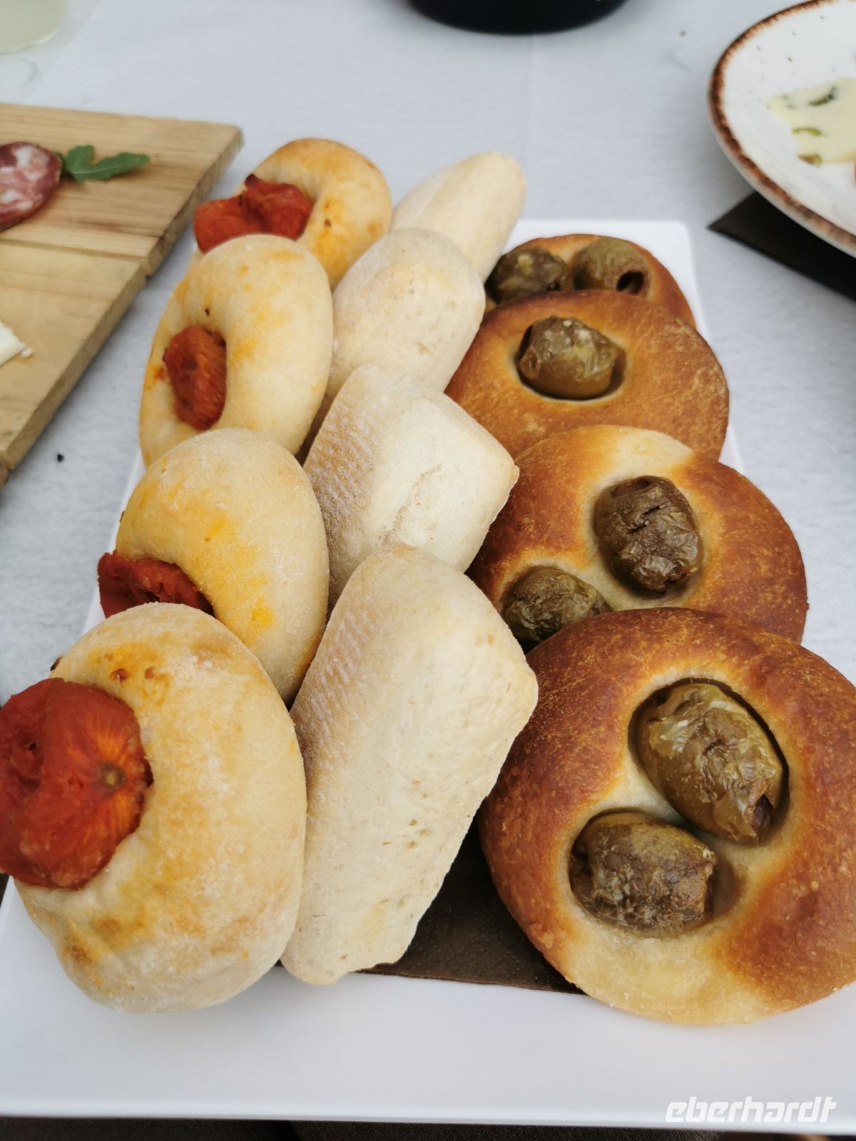 Näturlich darf das Kulinarische in Italien nicht zu kurz kommen. Zur ausgewählten Weinverkostung, mit Weiß- Rose- und Rotwein mit den klingenden Namen wie Lacryma Christi (Tränen Christi) oder Rosato, gesellten sich Pasta mit Pienollotomaten, selbstgebackenes Brot und Olivenöl.