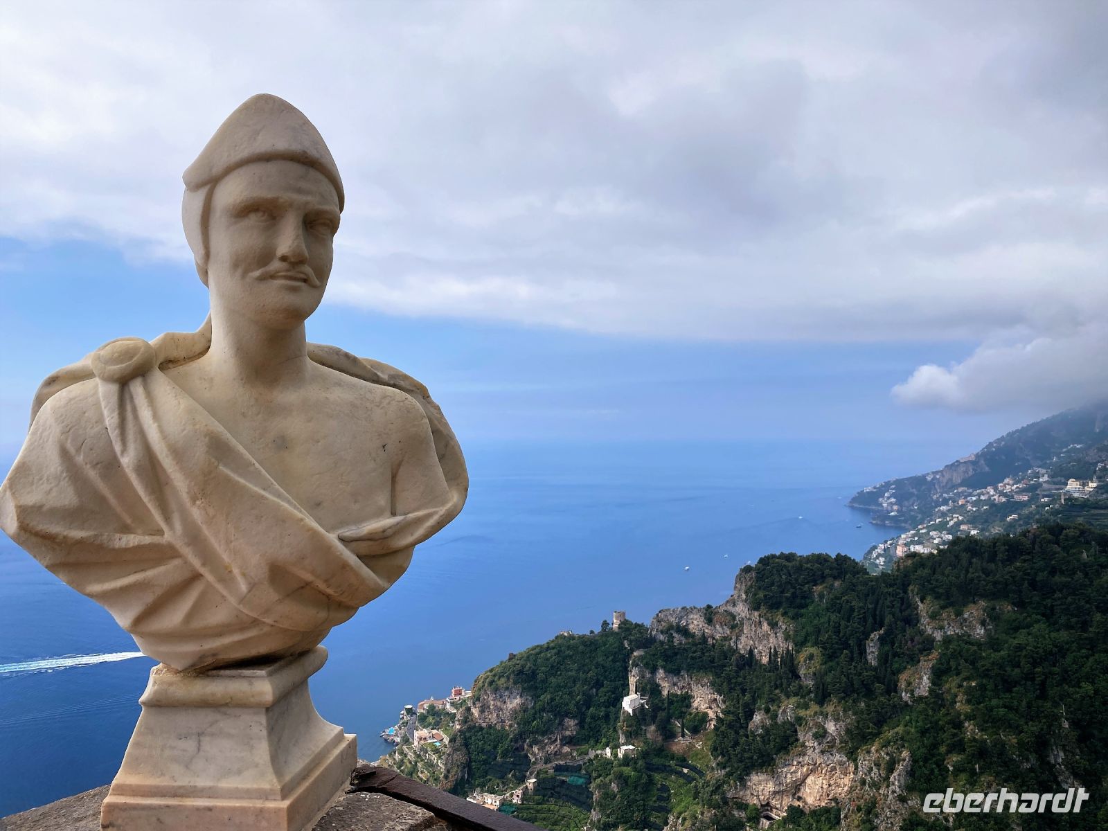 Ausgangspunkt für unsere erste Wanderung ist Ravello, eine kleine Ortschaft auf einem über der Küste beinahe schwebendem Hochplateau gelegen, in der wir uns dem Himmel näher fühlen als dem Meer. Zu Fuß erkunden wir das Zentrum, gehen über die Piazza Duoma, vorbei am Dom von Ravello - eine Basilika mit monumentalen Bronzepforten am Hauptportal. Unsere gut 15-minütige Erkundungstour endet am südlichen Ortsende bei der Villa Cimbrone. Dem Reiz der Amalfiküste verfallen, erwarb der schwermütige Ernest William Becket das ausgedehnte Grundstück mit den Resten einer alten Villa. Die mit viel Fantasie wieder aufgebaute Villa und der ausgedehnte Landschaftsgarten gerieten ihm zum schönsten Antidepressivum der Geschichte. Und natürlich lassen wir es uns nicht nehmen uns von der Schönheit der Gartenanlage zu überzeugen. Langsam schlendern wir durch den Park und gelangen zu dem wohl spektakulärsten und schwindelerregendsten Aussichtspunkt der Küste - einer Terrasse mit dem vielversprechenden Namen „Terrasse der Unendlichkeit“. Von hier oben genießen wir einen herrlichen Blick über das Meer. Nach diesen tollen Eindrücken geht es zurück zur Piazza, wo wir einen kurzen Stopp einlegen, um uns mit einem Kaffee zu stärken. Dann aber geht es endlich los, unsere erste Wanderung der Reise startet von hier aus und bringt uns zum nächsten sehenswerten Ort Amalfi. Unser Weg führt uns hierbei entlang zahlreicher Zitronenhaine, bergauf, bergab, oberhalb von Scala zur Piazza de S. Giovanni. Hier kehren wir um die Mittagszeit in einem typisch italienischen Restaurant ein und lassen uns die Antipasti und den Wein schmecken. Gestärkt geht es über viele Stufen hinab nach Amalfi, das touristische Zentrum der gleichnamigen Küste. Amalfi war vermutlich die erste Stadt Italiens, in der im Mittelalter Papier geschöpft wurde. Und so darf natürlich ein Besuch im Papiermuseum hier nicht fehlen. Bei einer kleinen Führung werden wir anhand der einzelnen Arbeitsschritte in die Papierherstellung eingeführt. Nach diesen tollen Eindrücken treten wir am Nachmittag unseren Heimweg mit dem Boot zurück nach Minori an, wo wir später im Hotel diesen gelungenen Wandertag bei einem gemeinsamen Abendessen ausklingen lassen.
