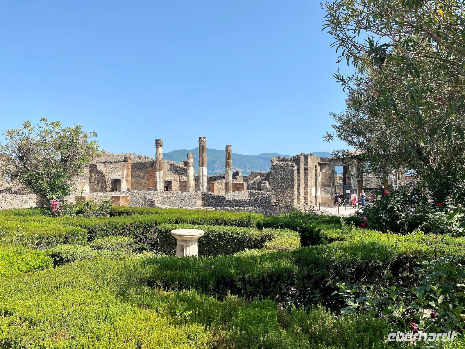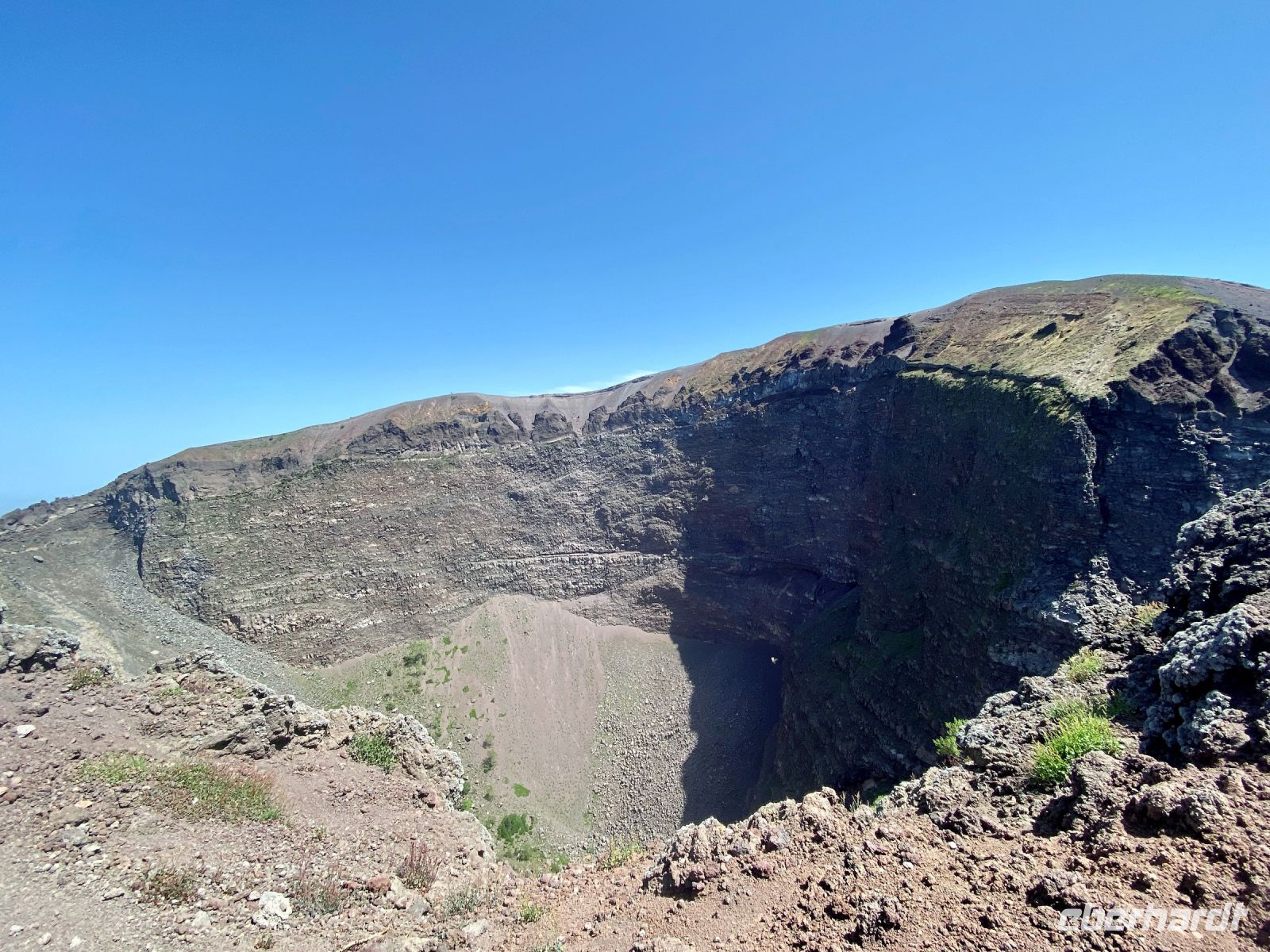 …oder wie in unserem Fall heute der Vulkan. Denn heute machen wir uns auf zur faszinierenden Vulkan-Landschaft des Vesuvs. Der Vesuv ist der König des Golfs von Neapel und der einzige aktive Vulkan Kontinentaleuropas. Er liegt im fast 8500 ha großen gleichnamigen Nationalpark. Als Schutzmaßnahme vor unkontrolliertem Besucherstrom wurde das Parkareal komplett eingezäunt und mit Zugangsbeschränkungen versehen. Und so machen wir uns heute etwas früher auf den Weg, da wir nur in dem für uns festgebuchten Zeitfenster zum Krater laufen dürfen. In Serpentinen steigen wir das steile Natursträßchen aufwärts und folgen dem Touristenstrom in Richtung Kegel. Das tolle Wetter ermöglicht uns dabei einen atemberaubenden Panorama-Blick auf Neapel. Am Schlund angekommen genießen wir die Aussicht und bekommen eine kleine Führung eines erfahrenen Vulkanologen, der uns kurzweilig in die Besonderheiten dieses Vulkans einführt. Wer genau hinsieht, entdeckt im Krater sogar ein wenig weißen Rauch aufsteigen. Ein Zeichen und für uns eine Erinnerung daran, dass dieser Vulkan bis heute aktiv ist. Von hier oben entdecken wir auch die verschüttete am Fuße des Berges liegende Stadt Pompeji, unser nächsten Ziel. Der Ausbruch des Vesuvs 79 nach Christi war verheerend. Zwei Eruptionen beendeten das Leben in der römischen Stadt schlagartig. Aus heutiger Sicht ist diese Katastrophe ein Glücksfall für die Archäologie. Denn der Vulkanausbruch konservierte die Stadt wie eine zeitlich unverfälschte Momentaufnahme für die Nachwelt. Bis heute wurde ein Teil des Stadtgebiets freigelegt und teilweise der Öffentlichkeit zugänglich gemacht. Und so bekommen auch wir die Chance Pompeji zu entdecken. Bei einem gut zweistündigen geführten Rundgang mit Anna Maria erhalten wir einen ausgezeichneten Überblick über das Leben und Sterben im antiken Pompeji. Die Mauern der Gebäude und die Straßen mit ihren großen Pflasterblöcken und den Rinnsteinen sind bis heute sehr gut erhalten, so dass wir wirklich das Gefühl haben durch eine richtige Stadt zu laufen. Zum Teil entdecken wir auch noch gut erhaltene Fresken und Mosaike. Der Gesamteindruck ist sehr spannend und vor allem die Einblicke in das Alltagsleben hier faszinieren uns. Mit diesen spannenden Eindrücken vom Tag treffen wir uns alle beim Abendessen wieder, tauschen uns über unsere heutigen Erlebnisse aus und freuen uns bereits auf unsere morgige Wanderung. Wir sind ganz gespannt, was der nächste Tag uns Schönes bringt.