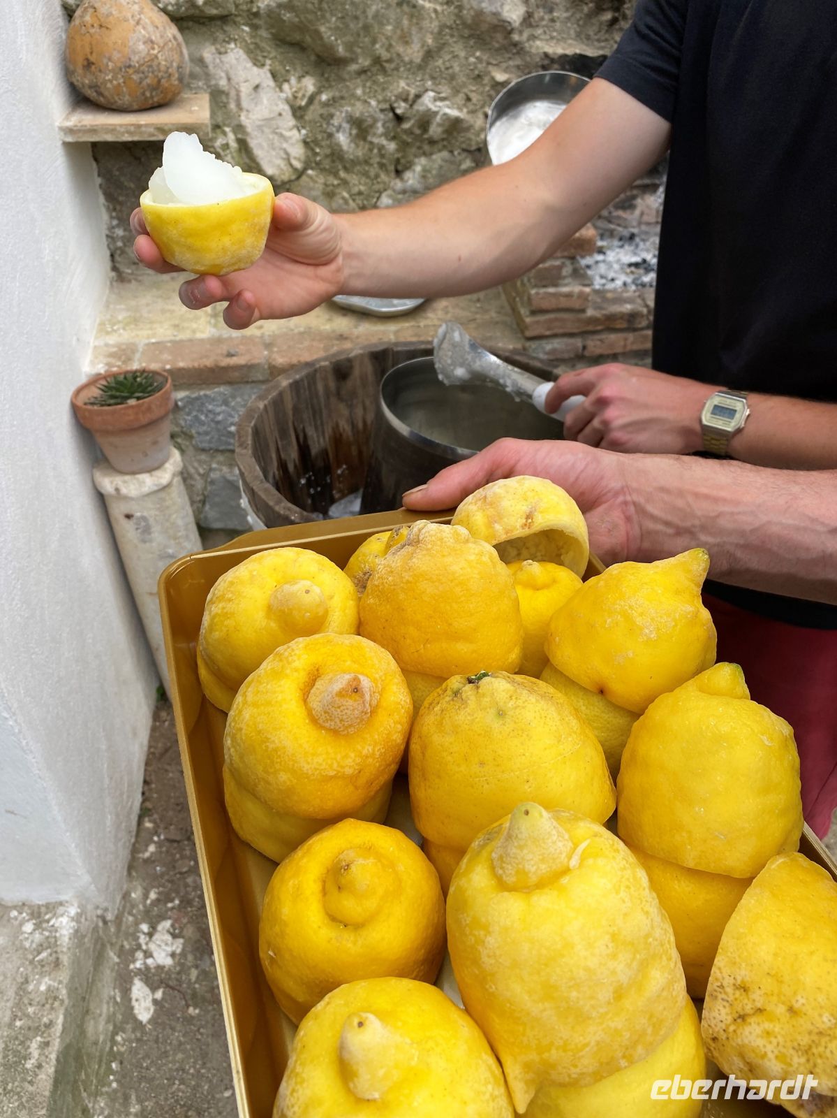 Das Beste kommt zum Schluss oder wie in unserem Fall heute die anspruchsvollste Wanderung unserer Reise. Sie führt uns in eine Gegend, die geprägt ist von Natur, Zitronen und vielen Auf- und Abstiegen. Heute verbindet die weltberühmte Küstenstraße die einzelnen Städtchen entlang der Amalfiküste. Früher jedoch dienten Treppen, Maultierwege und das Meer der Kommunikation. Wir starten heute direkt von unserem Hotel aus. Der Weg führt entlang eines Flusslaufes und schon zu Beginn steil bergan. Anfänglich begleiteten uns Zitronenplantagen, abgedeckt mit einem Meer aus schwarzen Netzen, sodass man die Früchte darunter nur erahnen kann. Weiter geht es hinauf zum Sella die Mandrino bis hinüber ins Tal von Tramonti. Unser Weg, ein Naturpfad, verlangt von uns Wanderern volle Konzentration, wandern wir heute doch bei schwülen 32°C. Ein wirklich abenteuerlicher und sehr interessanter Weg, der durch scheinbar unberührte Landschaften mit hohen Farnen und Urwäldern führt. Der Weg bietet uns Einblicke in das Gestern und lässt uns nur erahnen wie beschwerlich das Leben früher gewesen sein muss, als man diese Wege mit Lastentieren und schlechter Ausrüstung in der sommerlichen Hitze bewältigen musste. Zur Mittagszeit kehren wir in der Casa Vacanze in Tramonti ein und werden verwöhnt mit leckerem Focaccia aus dem Holzhofen, hausgemachter Salami, verschiedenen Käsesorten, Tomaten, Auberginen, leckerem Rotwein und zum Abschluss einer süßen Leckerei und selbstgemachtem Zitronensorbet. Da haben sich die Strapazen des Vormittags wirklich gelohnt. Nach dem leckeren Essen nun trennen sich aber unsere Wege. Der Großteil tritt mit dem Bus die Heimfahrt ins nahegelegene Minori an, um den Nachmittag noch etwas zur Entspannung zu nutzen, während einer kleiner Trupp sich auch den letzten Kilometern bis zum Hotel zu Fuß stellt. Am Abend aber treffen wir uns alle beim gemeinsamen Abendessen wieder und lassen diesen letzten Tag mit gutem Essen und netten Gesprächen gemütlich ausklingen.
