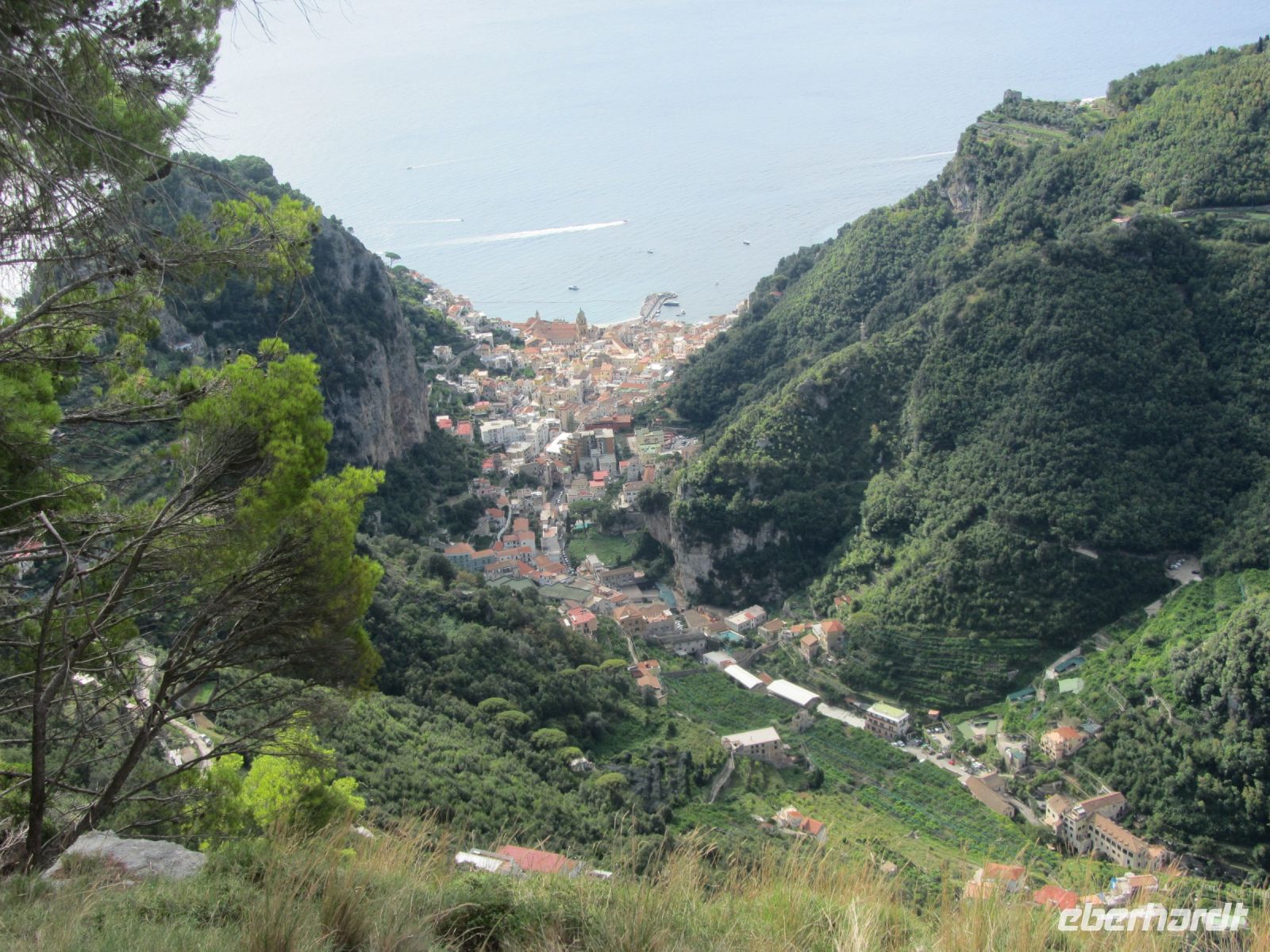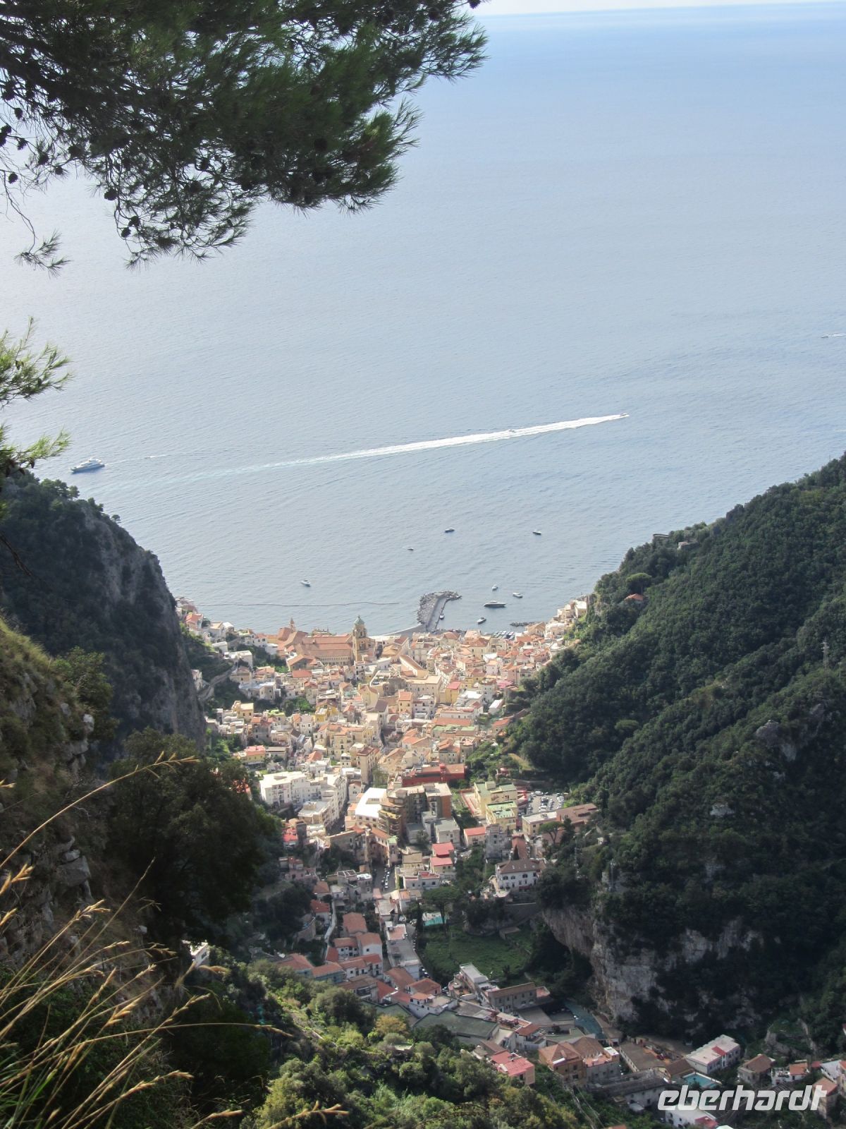 Wir schlagen den Weg Richtung Scala ein, das mit Ravello durch eine gemeinsame Geschichte verbunden ist. Amalfi und Ravello sollen nach Ansicht der Historiker von Scala aus gegründet worden sein. Wir konzentrieren uns auf das Heute, denn der Weg bringt uns bald ins Schwitzen. Hohe Steinstufen führen abwechselnd hinauf und hinunter, forden unsere Knie und bescheren uns nach einigen Kurven immer wieder atemberaubende Ausblicke und Fotomotive. Am Wegesrand naschen wir wilden Fenchel, kosten den bitteren Rucola und runden das mit einer köstlich süßen Feige vom Baum ab.