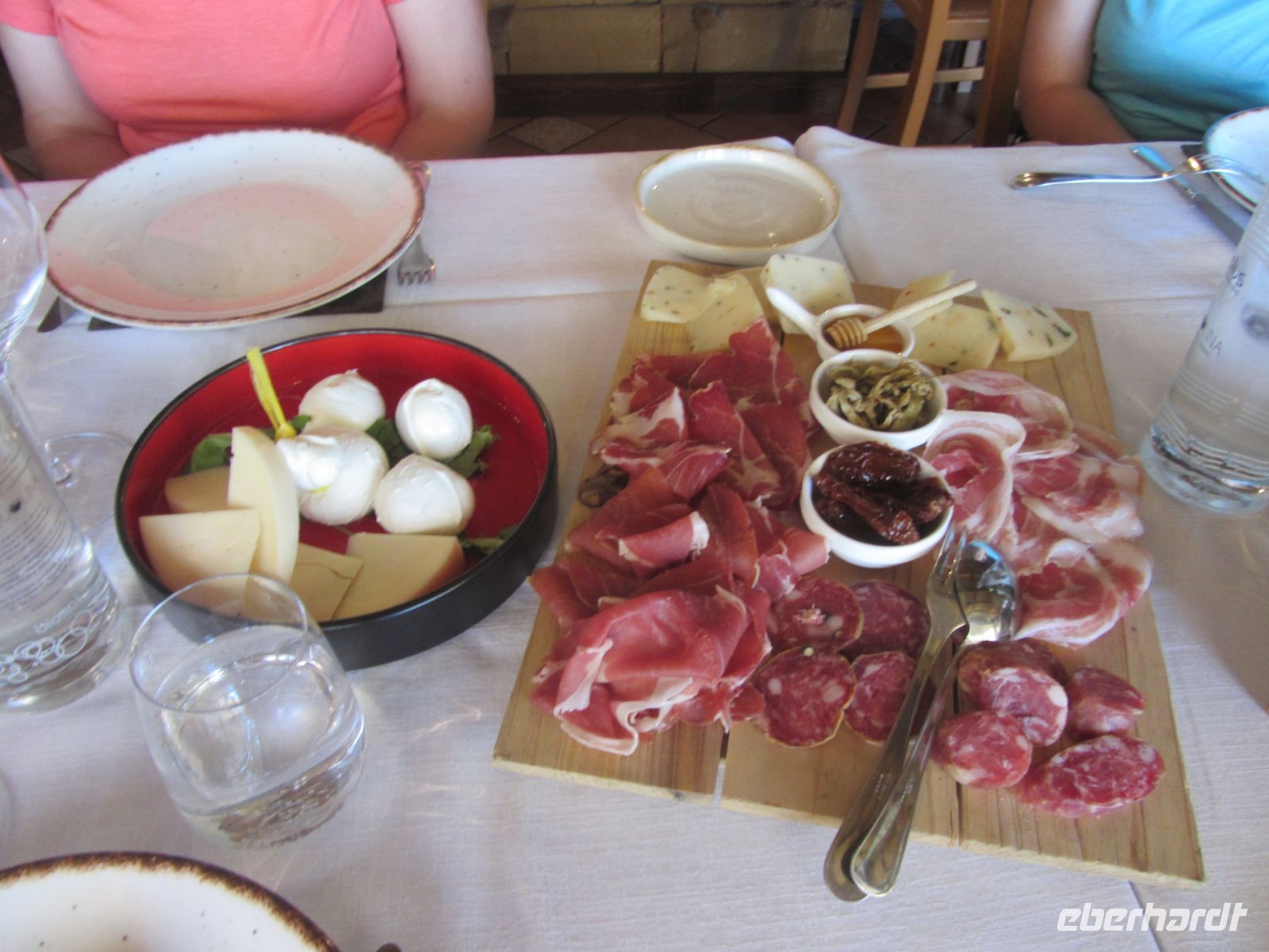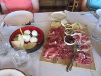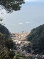 In Pogerola geht es wieder einige Treppen runter, ehe wir unsere Anlaufstelle für das Mittagessen finden, die Osteria Acquolina. Inzwischen haben wir gelernt, dass der Honig ganz hervorragend zum frischen Käse passt, dass die Salami auch gern mit Fenchel gewürzt wird, die Panchetta köstlich ist und die Brokkoli eher bitter schmecken, die Paprika dagegen wunderbar mild, fast süß. Zur Verdauung gibt es einen Limoncello aus eigener Produktion. Dann geht es wieder die Treppen herunter bis nach Amalfi. Andrea, unsere Wanderleiterin lebt hier seit vierzig Jahren, jeder kennt sie, sie kennt auch alle und so wird in alle Richtungen gegrüßt. Wir lassen uns die besten Geschäfte für die Mitbringsel für zu Hause zeigen, besichtigen gemeinsam den Dom und bewundern die große Terrasse von Andrea, von wo aus sie die Stadt gut im Blick haben kann. Ein Schiff bringt uns dann wieder nach Minori, wo ein Abendessen auf uns wartet.