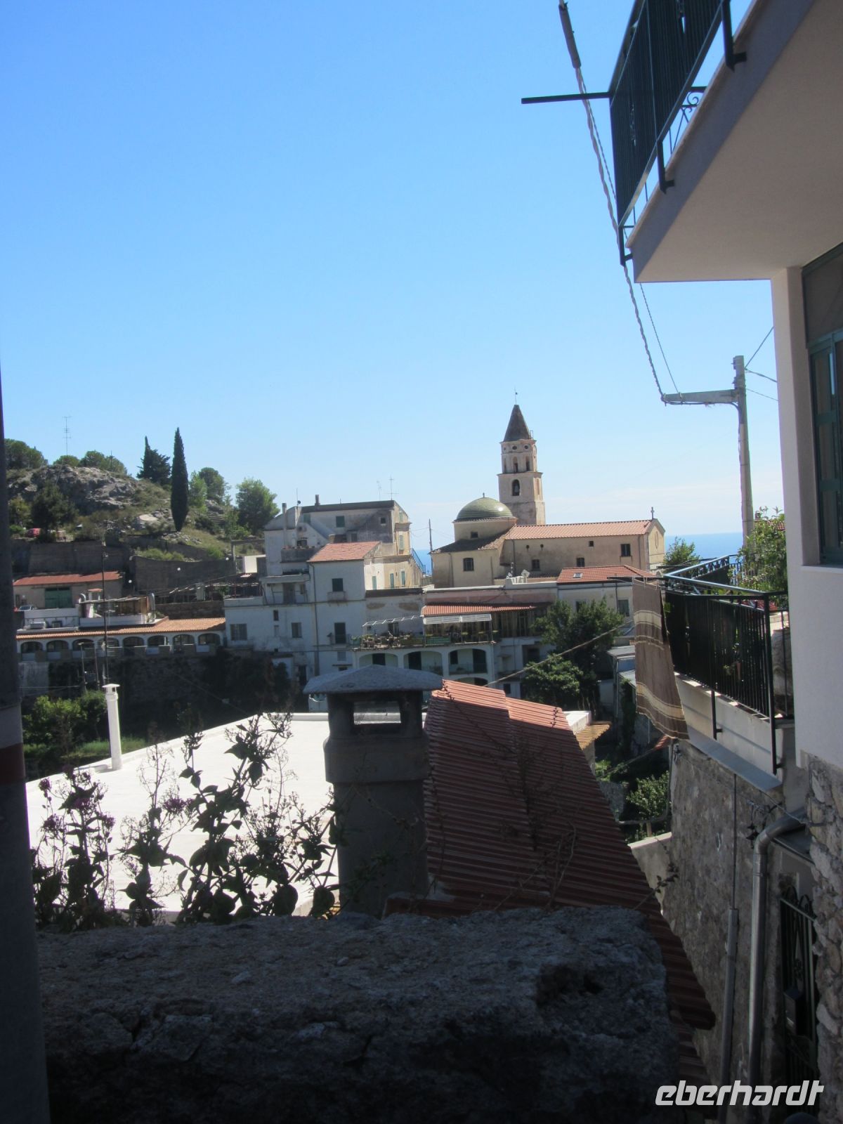 Als sich unser Bus zum Valle delle Ferriere wieder die Kurven Richtung Scala hochschraubt, fühlen wir uns schon fast wie zu Hause. Die Ampel in der engen Kurve kennen wir schon, den Blick hinauf zur Kirche ebenfalls. Die Treppen da, die sind wir schon gegangen. Campidoglio liegt noch etwas höher als Scala und wir können uns also ausrechnen, das alles müssen wir auch wieder hinuntergehen. Doch zunächst geht der Weg fast ebenerdig an schönen Steinmauern entlang, an denen es blüht und duftet. Kapern machen sich in den Steinfugen brreit, Rosmarin steht in dicken Büscheln, Salbei und Thymian ebenso. Die Idee, die Kräuter aus der italienischen Küche im Geschäft in Amalfi zu kaufen, wandelt sich hier zu einem do it yourself. Pflücken und zu Hause trocknen, heißt jetzt die Devise.