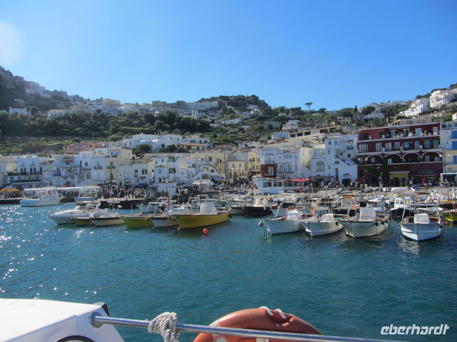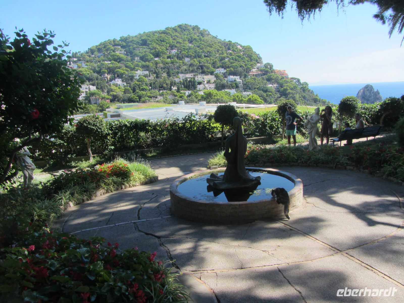 Jetzt drängen sich im Ort Gäste aus aller Welt vor den Läden mit südhaft teuren Auslagen. Viele der Häuser verbergen sich hinter hohen Mauern, oft leuchten nur die Bougainvillen über die Mauer. Doch die Gärten zeigen sich in üppiger Pracht. Hier wird gepflegt und geschmackvoll gestaltet und hier hat die Toilette im doppelten Wortsinn ihren Preis.Trotz oder wegen der vielen Menschen, die auf Capri gelebt haben, ist Capri Marke, Mythos und - wie es der Essayist Dieter Richter schreibt- die schönste Insel der Welt.