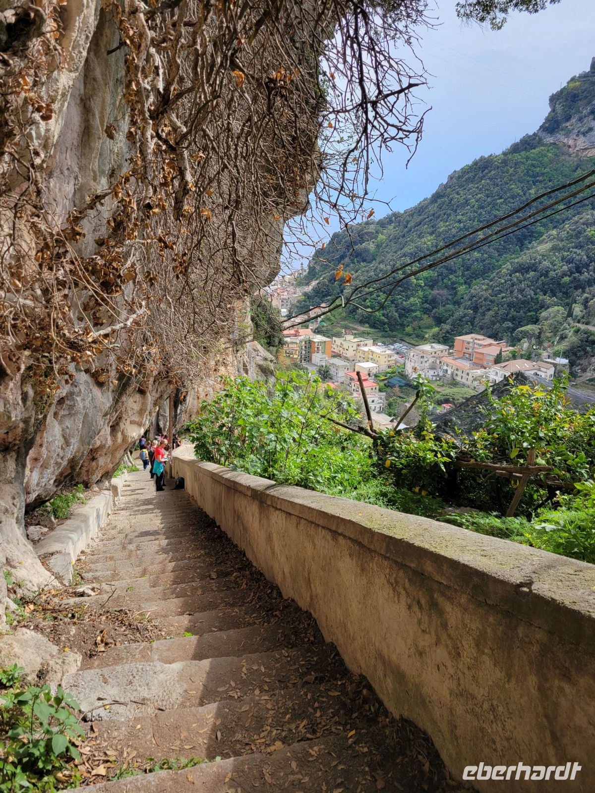 Gestärkt treten wir anschließend den Weg nach Amalfi an. Er führt uns durch das Mühlental hauptsächlich über Treppen hinunter bis in den Ort.
