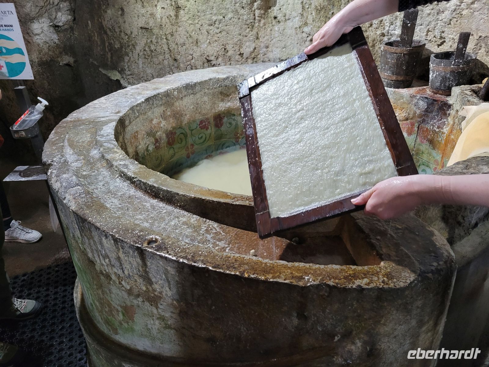 Im Papiermuseum erhalten wir einen interessanten Überblick über Geschichte und Verfahren der handgeschöpften Papierherstellung.