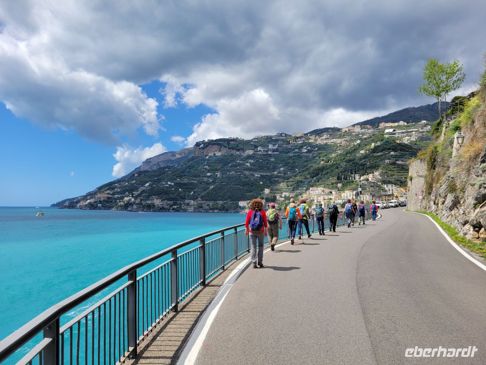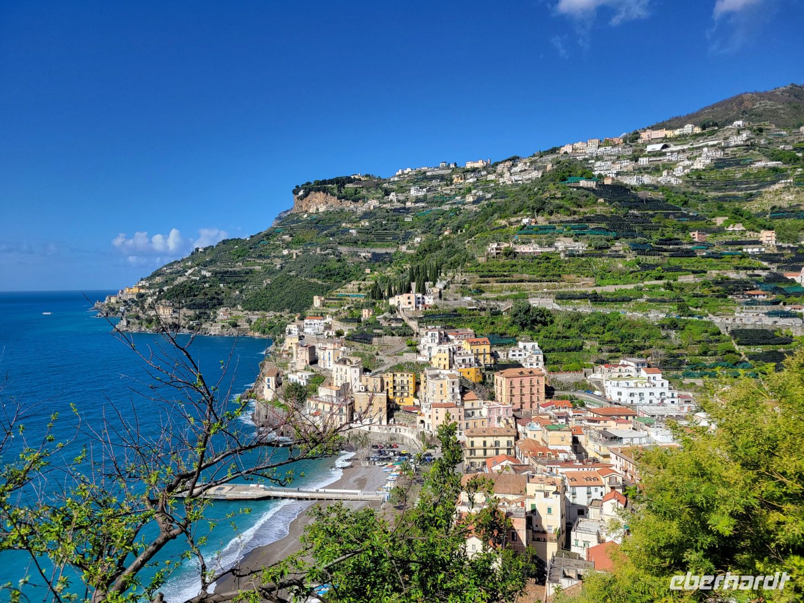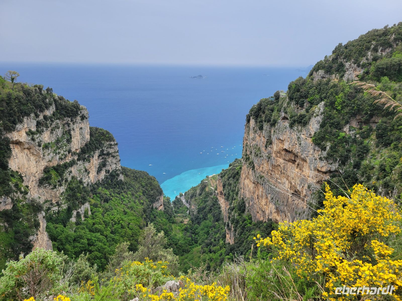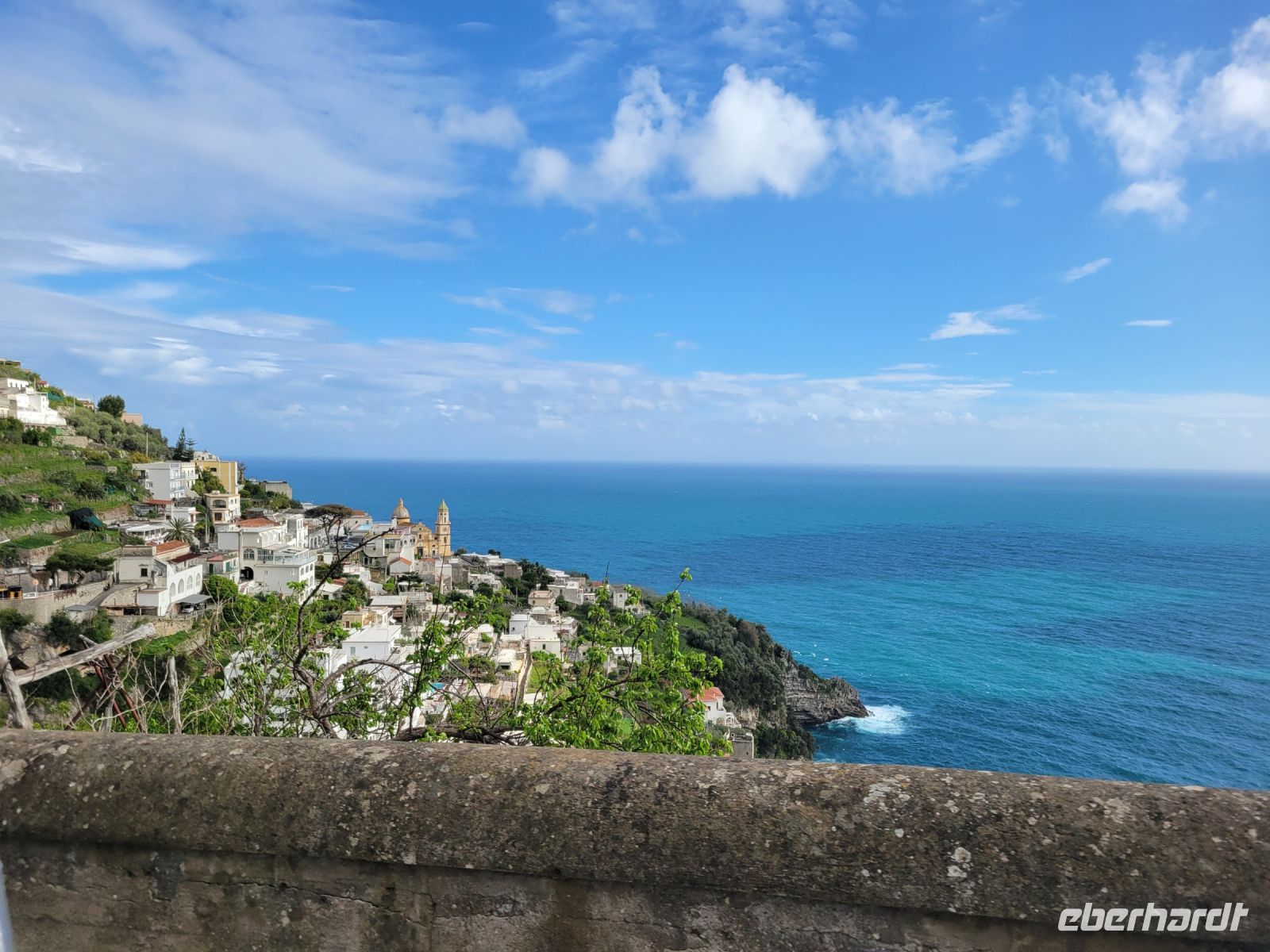 Die Ausblicke über das Meer, auf die Küste, teils bis zur sorrentinischen Halbinsel und auf Positano, sind grandios und unvergesslich schön, oder eben: einfach „göttlich“. Hinter jeder Kurve möchte man anhalten und die Aussicht aufs Foto bannen.