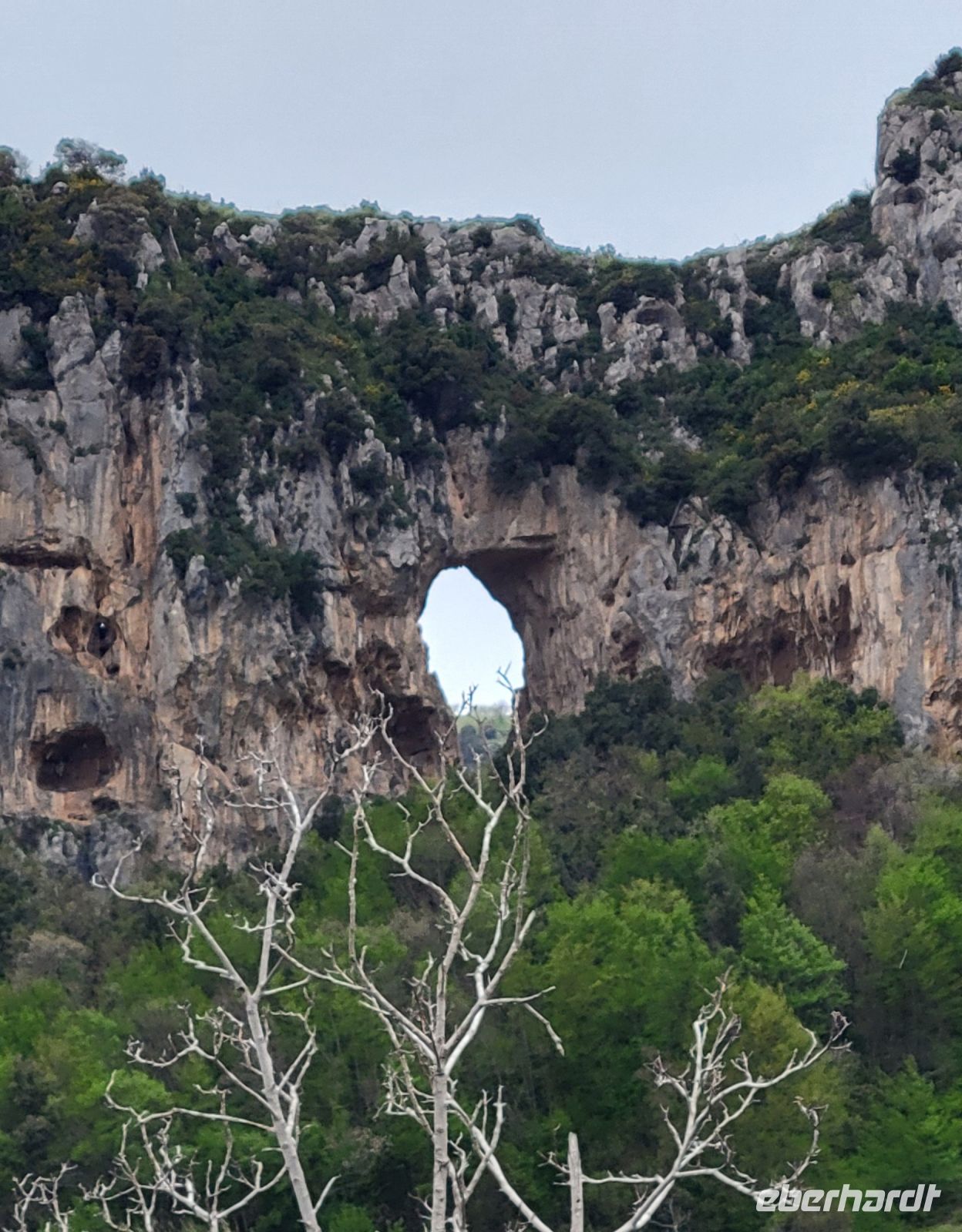In Montepertuso angekommen können wir auch den Grund für die Namensgebung des Ortes – Montepertuso heißt „durchbohrter Berg“ – erkennen. Oberhalb des Ortes thront der Berg, aus dem sich ein großes Loch ähnlich einem Fenster im Felsen herauserudiert hat.