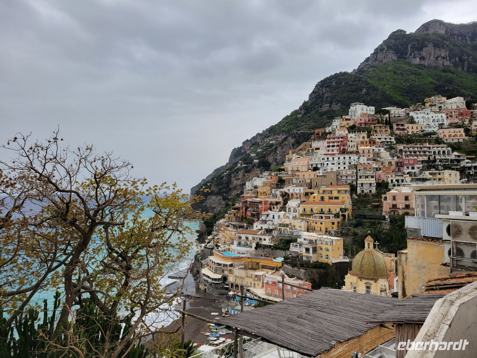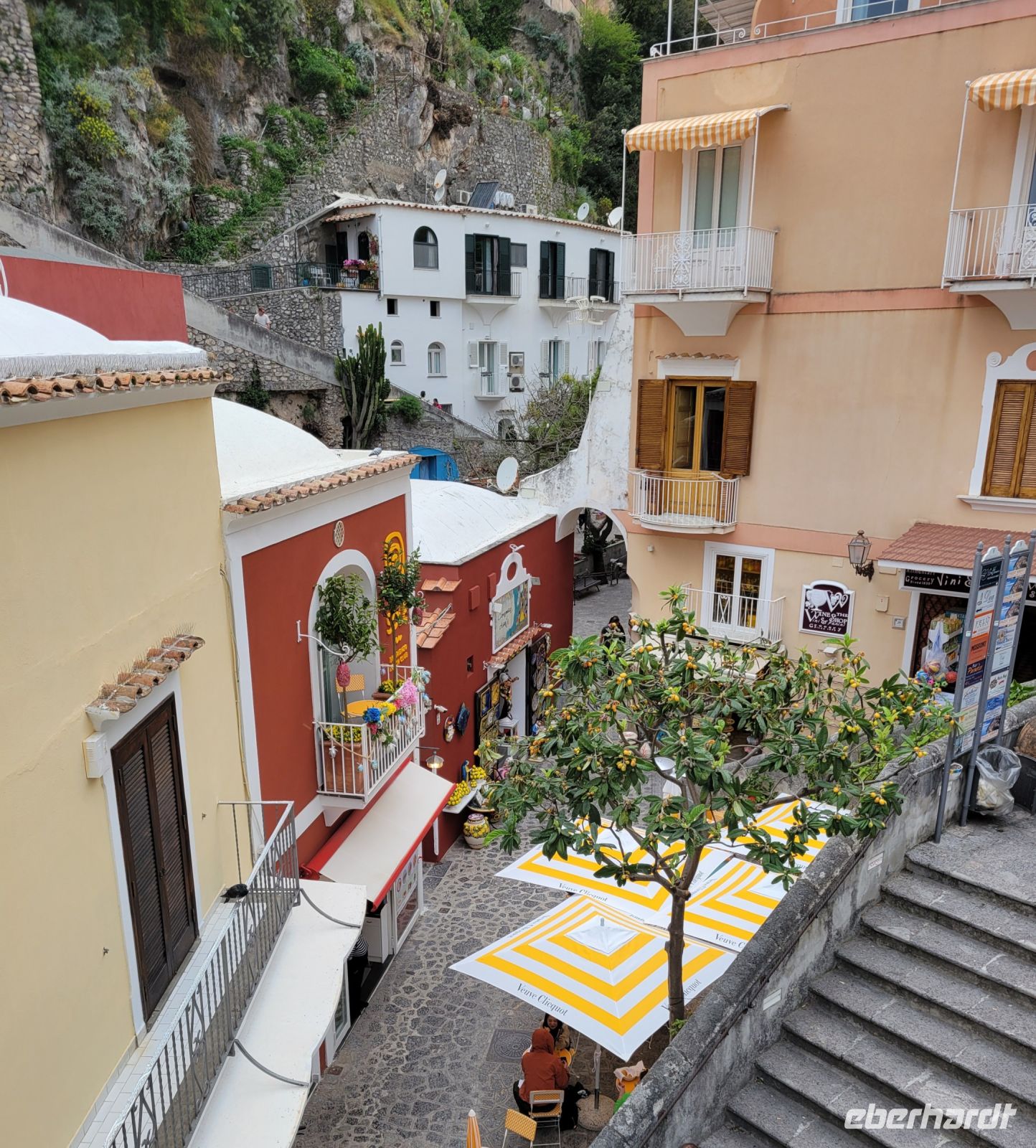 Anstelle des Abstiegs über Treppen nach Positano entscheiden wir uns alle für die Fahrt mit dem Linienbus. Wir bestaunen die Fahrkünste des Fahrers, der uns sicher über zahlreiche Kehren und Engpässe zügig nach Positano bringt.