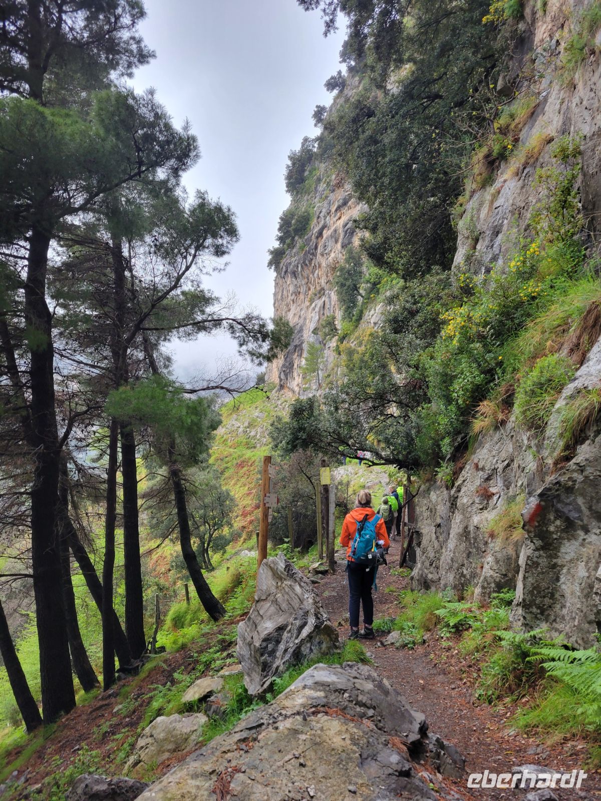 Kurz danach beginnt der leichte Aufstieg auf dem gepflasterten Pfad, es geht häufig über Stufen. Wir legen etliche Stopps ein, um die herrlichen Ausblicke zu genießen und zu fotografieren.