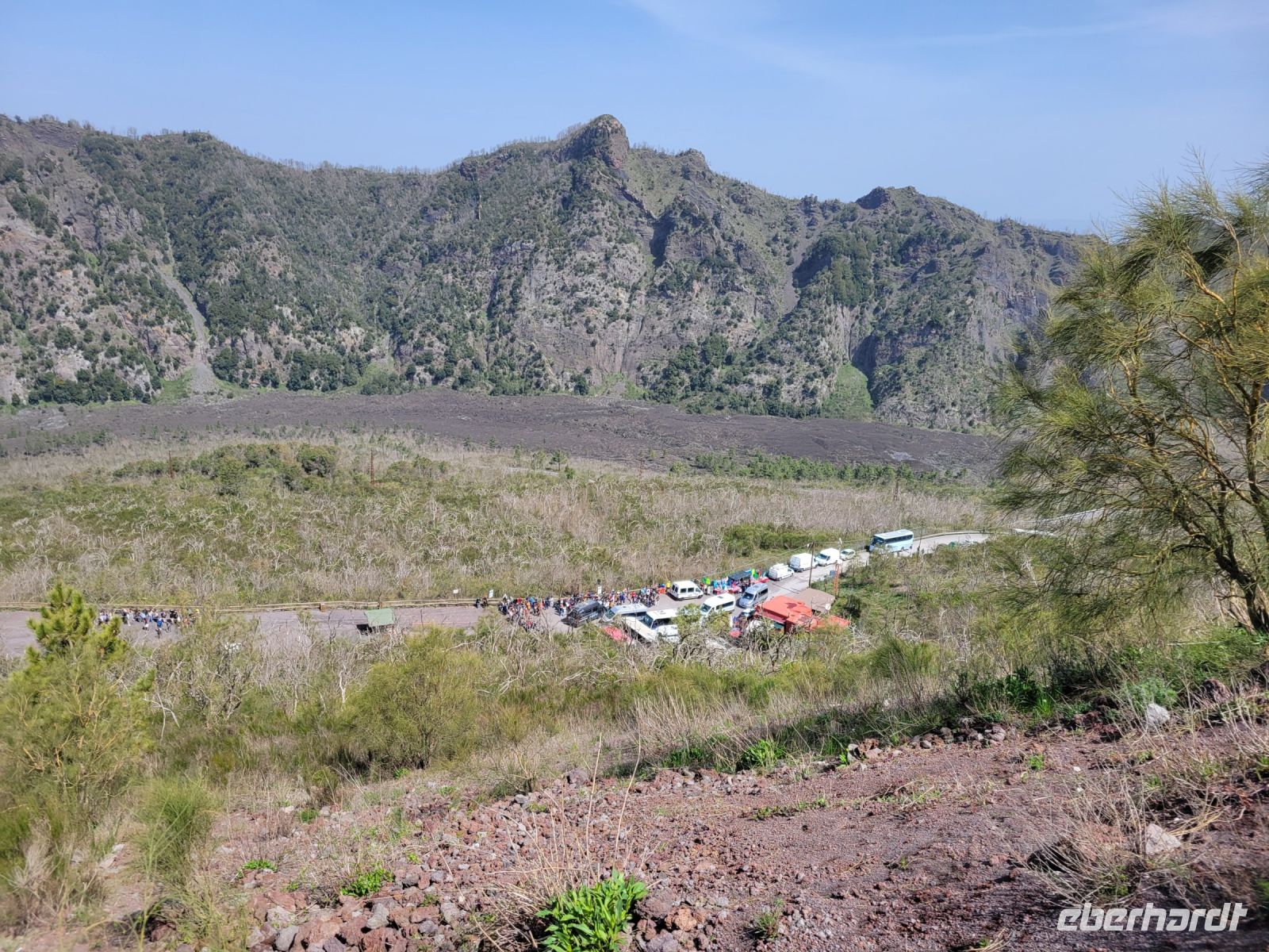 Dieser führt uns zum Vesuv und nach Pompeji und zunächst wieder durch die Monte Lattari, die Milchberge, in Richtung Neapel. Allerdings haben wir heute recht klares Wetter und bereits aus der Ferne eine gute Sicht auf den Vesuv (etwa 1300 Meter hoch), unser erstes Ziel für heute. Durch den Monte Somma, den Muttervulkan, windet sich die Straße durch die Vulkanlandschaft des Naturparks hoch zum Parkplatz.