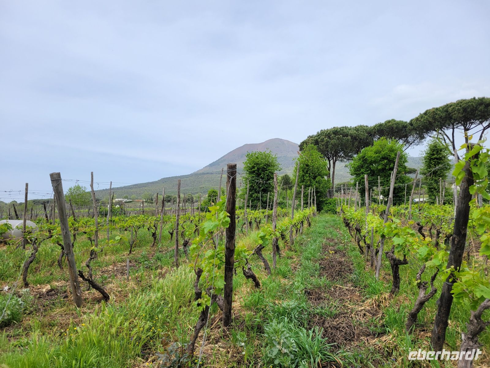 Beim Weingut angekommen werden wir erst einmal über das Gelände geführt, immer mit Blick auf den Vesuv, und bestens mit Wissenswertem rund um den Weinanbau versorgt.