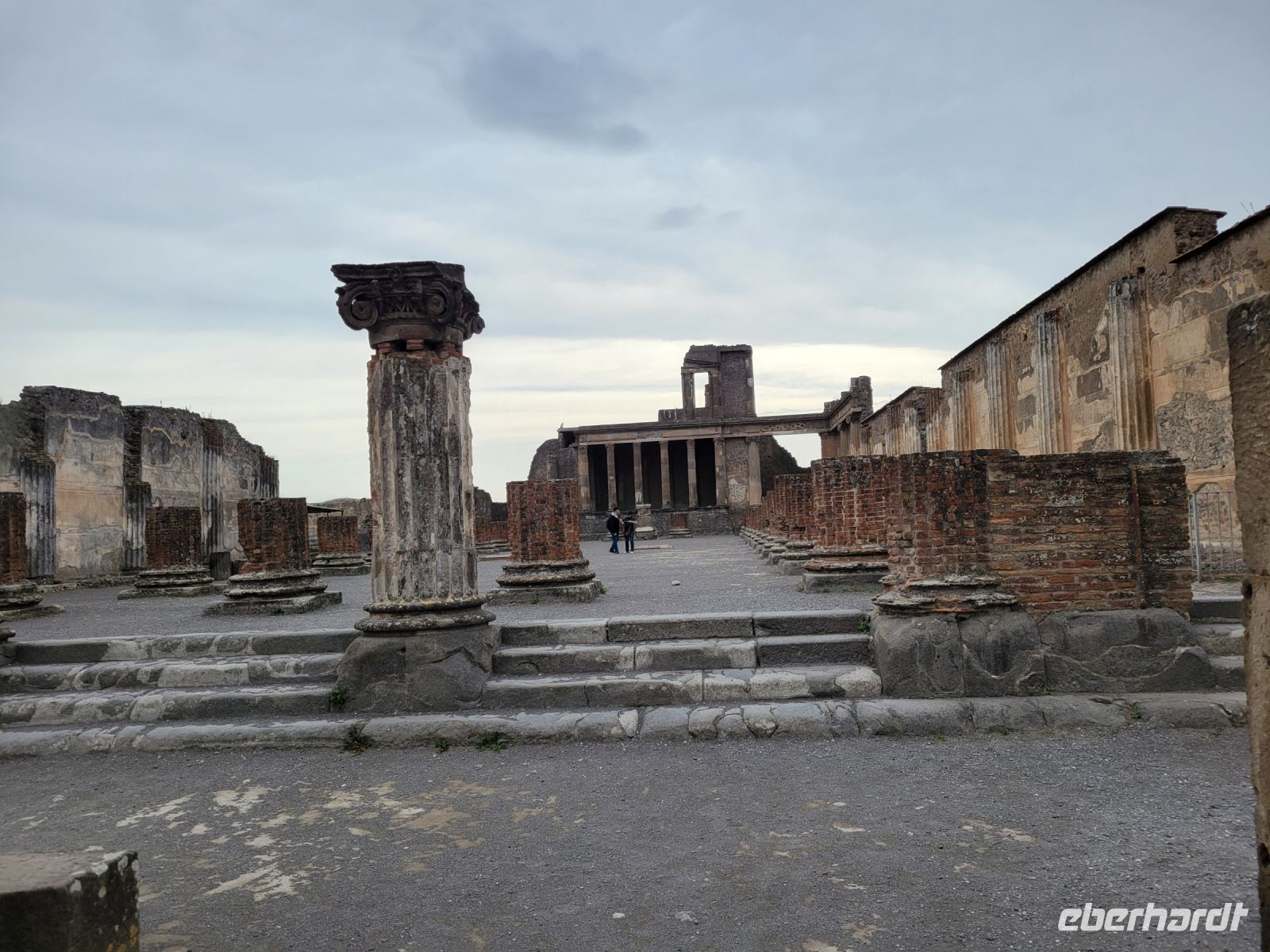 Zufrieden und gut gestärkt machen wir uns auf zum nächsten Höhepunkt dieser Reise: nach Pompeji. Beim verheerenden Ausbruch des Vesuvs im Jahr 79 nach Christus wurde die Stadt unter einer bis zu 10 Meter dicken Schicht von Vulkanasche und Bimsstein komplett begraben.