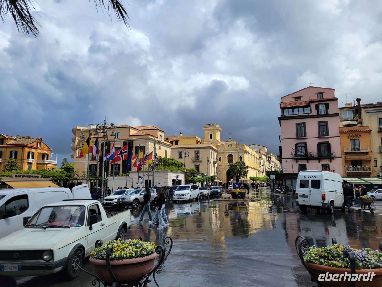 Der Kreis schließt sich wieder an der Piazza Tasso. Jetzt haben wir Zeit für ein Mittagessen und einen Bummel – diesmal in Eigenregie und infolgedessen verbunden mit erhöhtem Shoppinganteil. Schließlich muss auch an die Daheimgebliebenen gedacht werden.