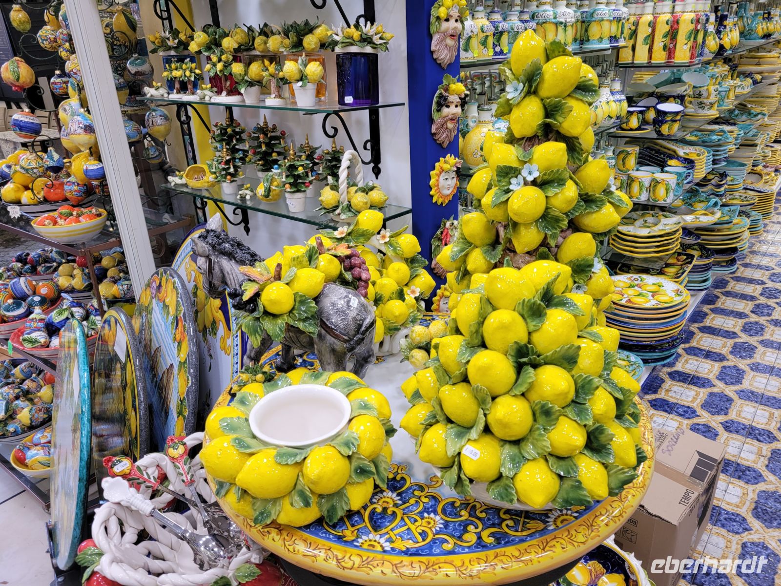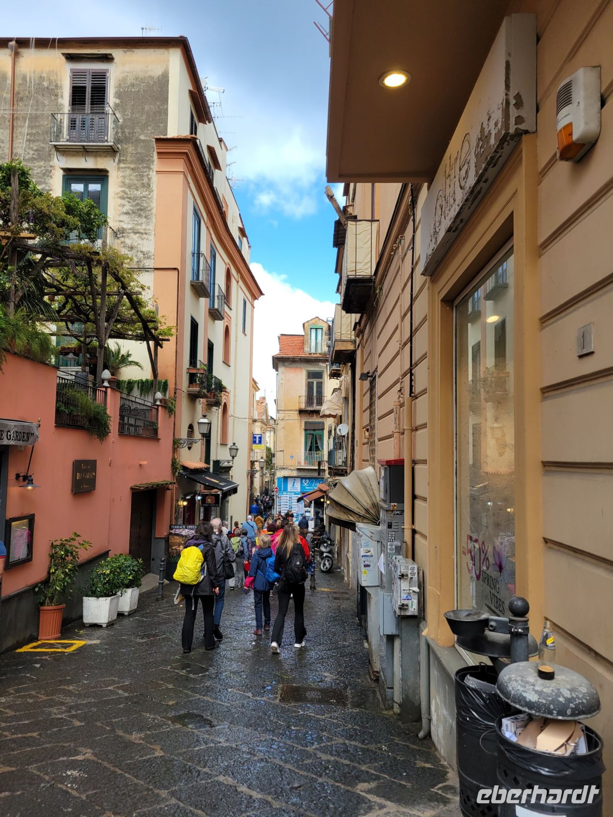 Kleine Gassen mit verführerischen Auslagen, häufig mit dem typischen Zitronenmotiv oder Arbeiten der Sorrentiner Intarsienholzkunst runden die kleine Stadterforschung ab.