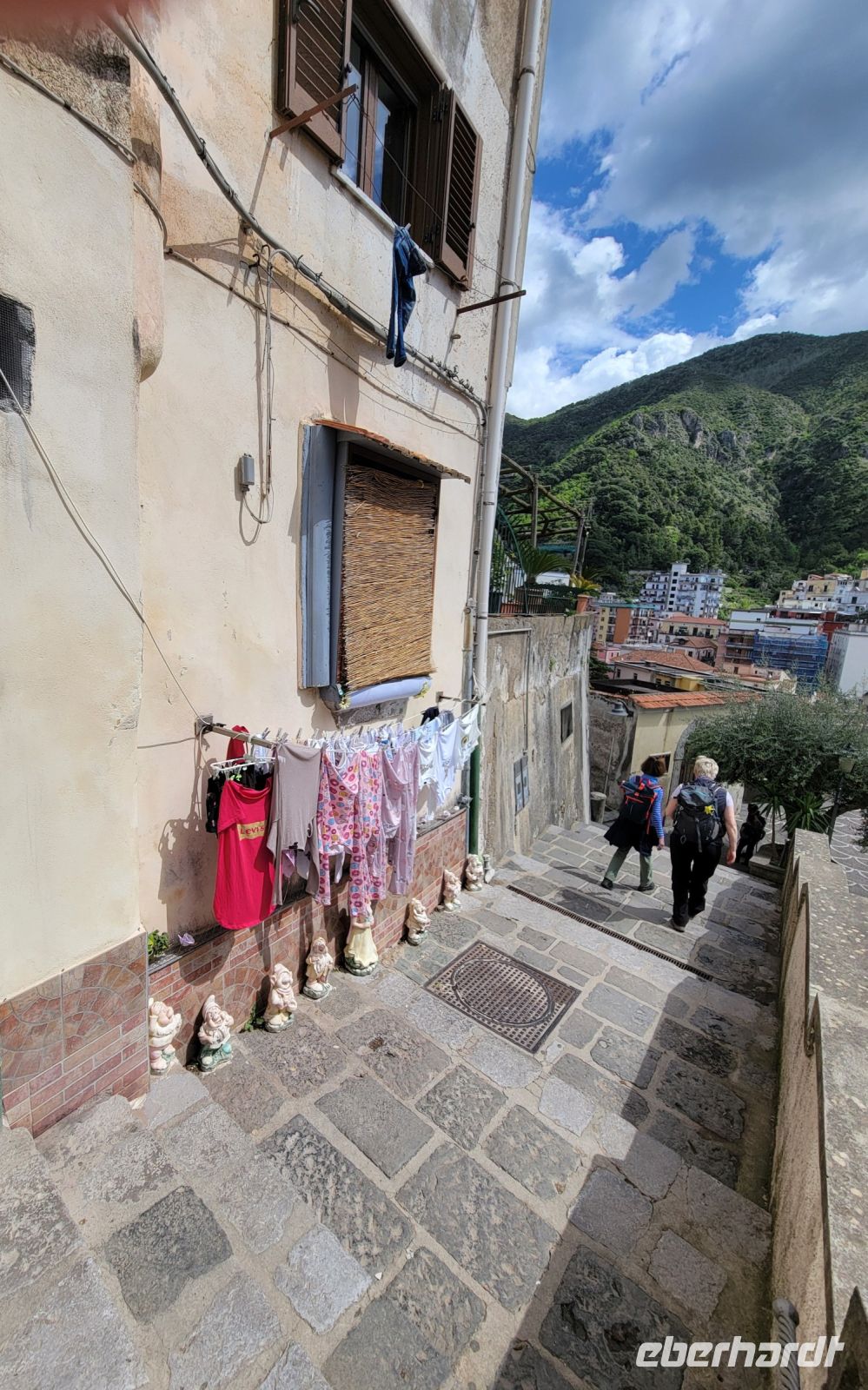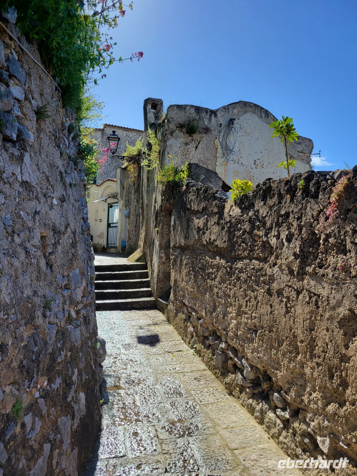 Zunächst geht es ein Stück durch den Ort. Wir erfahren, dass Scala das älteste der Dörfer in dieser Region sein soll. Es ist bekannt für die Herstellung von Majolika Keramik aber auch für die Maronen, Esskastanien, die im Herbst geerntet werden.