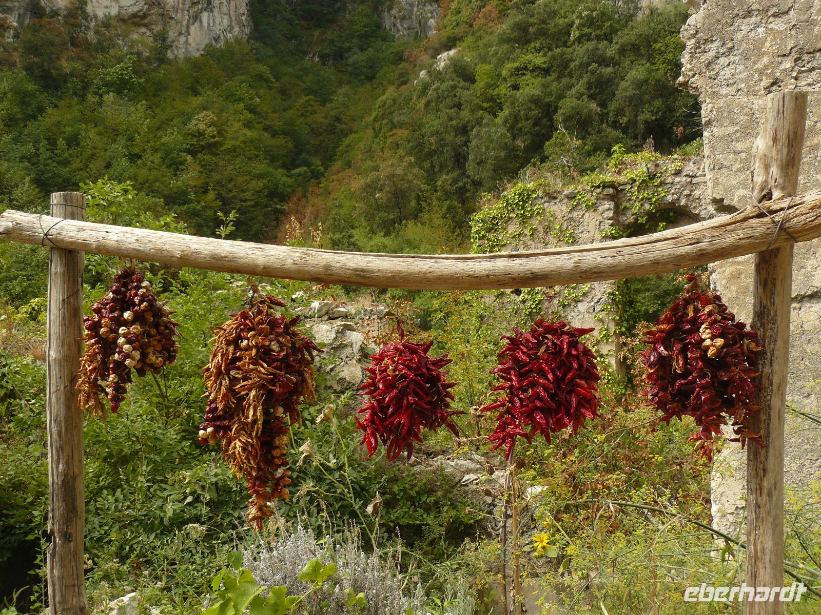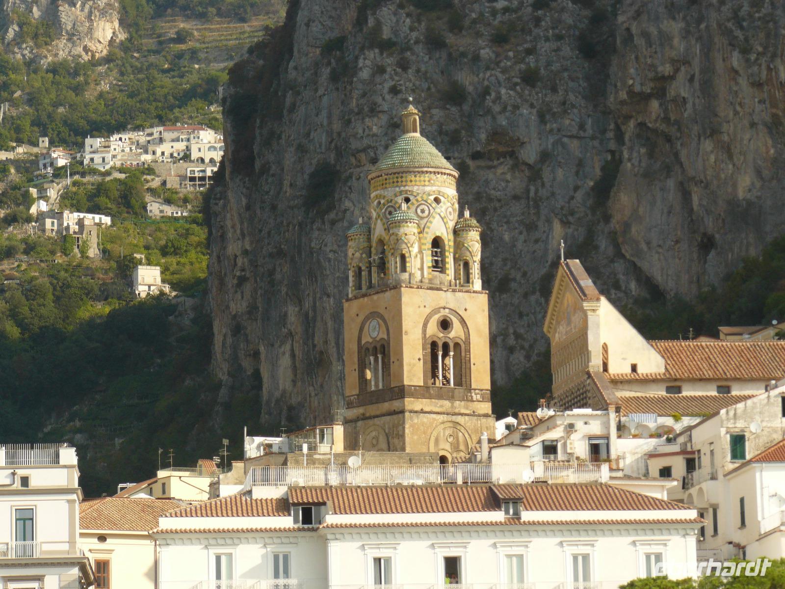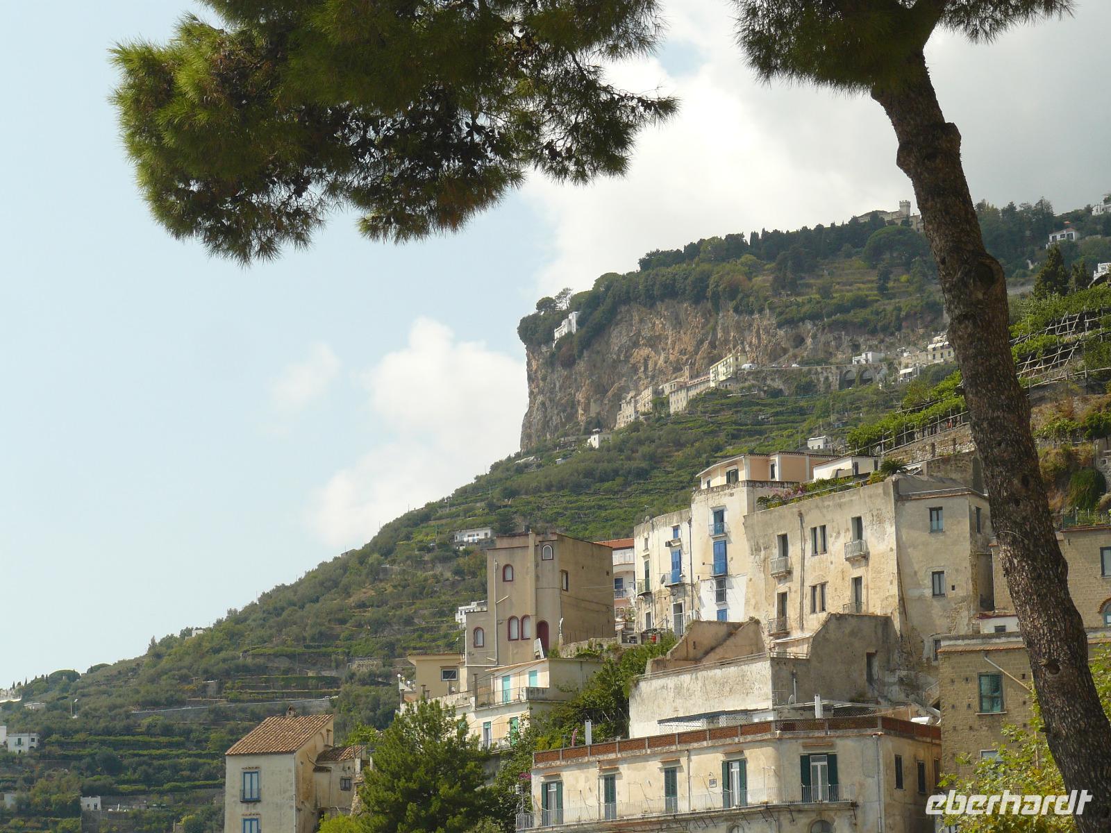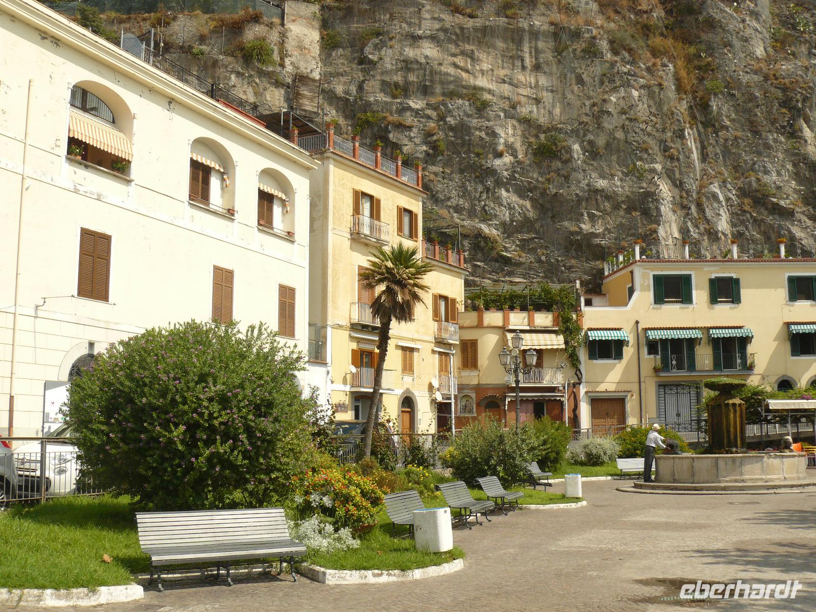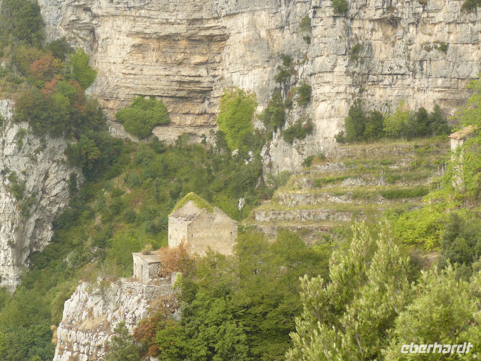 Ein Sonntag Morgen, an dem die Neapolitaner zu Hause blieben! Da hatten wir mal so richtig viel Platz, denn allen Unkenrufen zum Trotz zogen wir los. Es war warm, sehr warm, schwülwarm. Aber das war's dann auch. Eigentlich war der Tag recht freundlich. In Amalfi warfen wir einen Blick auf die ganzjährig aufgestellten Weihnachtskrippen und besichtigten das Papiermuseum. Aber selbst in den kühlen Gewölben der Papiermühle war es nun warm. Eine herrliche Führung mit einem kompetenten, kreativen und auch sehr motivierten guide, der, wenn ihm die Worte ausgingen ganz einfach mit den Armen nachhalf und kräftig in der Luft herumruderte. Wir hatten unsere Freude daran. Danach ging's mit Heinz Erhard und Johann Wolfgang von Goethe durch die Zitronenhaine aufwärts. Aber bald schon ließen wir die Zitronenbäumchen hinter uns und durchwanderten das herrliche Valle dei Mulini, das Mühlental, passierten überwucherte alte Gemäuer und malerische Wasserfälle. Unser Weg schlängelte sich nun durch Wald aufwärts und wir schwitzten kräftig. Aber bald schon bot sich uns eine herrliche Aussicht auf Amalfi hinunter, bevor man uns in Pontone bei unserer Mittagspause leckere Antipasti und andere italienische Speisen servierte. Nach der Mittagspause wurde es windig, bedeckt und deutlich kühler und wir wanderten an weiteren Zitronenplantagen vorüber in das Valle del Dragone hinunter. Der Drache war nicht zu Hause - das Tal präsentierte sich noch friedlich. Ruhe vor dem Sturm. Am unteren Ende des Tales erreichten wir das hübsche Atrani. Dort gönnten sich einige Gäste ein Eis und wir staunten nicht schlecht, was sich da am Ufer abspielte. „Meinst Du wirklich, dass wir heute noch ein Boot besteigen sollen...?" So war unsere Rückreise eigentlich geplant. Riesige Wellen spritzten an den Wellenbrechern empor. Ein tolles Schauspiel, aber die Vorfreude aufs Bootfahren wurde dadurch doch ziemlich vermindert. Wir wanderten weiter durch enge Gassen über viele Treppen nach Amalfi. Hier besichtigten wir dann noch den beeindruckenden Dom Sant' Andrea. Im Kreuzgang stehen alte Sarkophage, die von mythologischen Geschichten berichten. In der Zwischenzeit war klar: Bootsfahrten waren heute nicht mehr möglich. Der Hafen war abgesperrt. Und unser örtliches Busunternehmen ließ uns nicht hängen: „...was, Du brauchst nen Bus? Gleich? Gib mir mal 20 Minuten Zeit, dann machen wir das schon...". Und da ich etwas früher vor der geplanten Bootsabreise angerufen hatte, kamen wir nahezu ohne Verspätung per Bus nach Hause. Italiener können einfach ganz genial improvisieren. Alles passte!