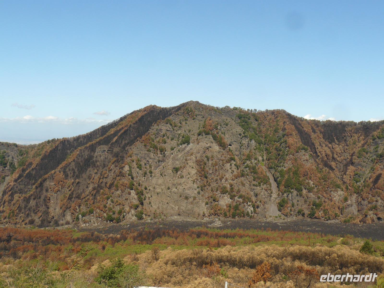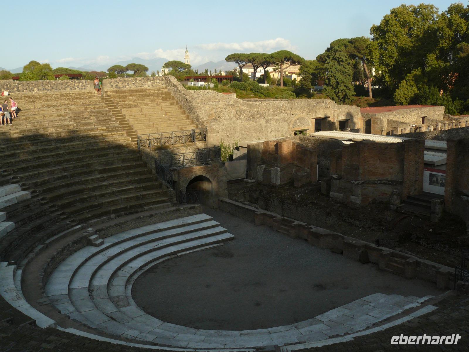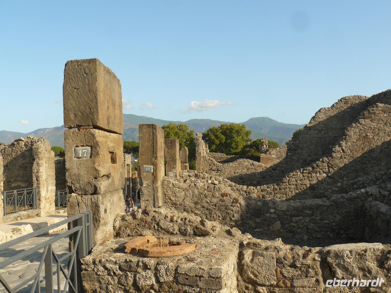 Fröhlich starteten wir am Morgen bei schönem Wetter in Richtung Neapel. Bei Torre del Greco verließen wir die Autobahn und wenig später quälte sich der Bus zwischen erstarrter Lava und verbrannten Pinien aufwärts. 10 Tage lang hatten die Hänge des Vesuvs lichterloh gebrannt im Sommer 2017. Und das war erst wenige Wochen her. Um so erstaunlicher war es, dass hier schon wieder grüne Zweige zwischen den verbrannten Bäumen herauswuchsen. Die Landschaft wirkte eher herbstlich als trostlos. Und es gibt eine freudige Neuigkeit zu berichten: das Toilettenproblem auf dem Berg war wieder gelöst! Im Frühjahr hatte es mich mit einer anderen Gruppe kalt erwischt. Ja ich weiß, Reiseleiter sind sonderbare Menschen - sie freuen sich über neue Dixi-Toiletten... Oben hatten wir bei blauem Himmel eine sehr schöne Aussicht. Uns zu Füßen erstreckte sich die Küstenebene von Neapel bis Pompeji, dahinter das Meer. Und unser lokaler Vulkanführer berichtete uns Interessantes. Ein letzter Blick, und es ging wieder abwärts. Nun fuhren wir um den Vulkan herum. Wir landeten mitten in den Weinbergen und vergnügten uns bei einer Weinprobe. Und dazu gab es wieder etwas Leckeres zu Essen. Am Nachmittag fuhren wir dann beschwingt weiter in Richtung Pompeji. Dort erwartete uns Alfonso. „Denk daran, wir kommen gerade von der Weinprobe", warnte ich ihn vor. Und das ließ Alfonso sich nicht zweimal sagen. Er hatte seinen Spaß mit uns und wir mit ihm. Aber ganz nebenbei erklärte und zeigte er uns sehr viel. Thermen, Tempel, Märkte, Gerichtsgebäude und ein Lupanarium. „Gretchen, folge mir..." Ich gehorchte, was blieb mir schon anderes übrig?? Alfonso brachte uns ins Theater und nun mussten wir singen. Zwei kleine Italiener, die träumen von Napoli, von Tina und Marina, die warten schon lang auf sie.... Das schafften wir noch ganz locker. Dann aber folgte: volare oho, cantare ohoho, nel blu dipinto di blu - ja der Himmel war nun blitzblau. So hatten wir uns das vorgestellt. Und Alfonso half uns über die schwierigen Textstellen hinweg. Mit vielen Bildern und Geschichten im Kopf, von Gladiatoren, die die Geliebten reicher Frauen waren, von Karren mit großen Rädern, die sich um ungewöhnlich hohe Zebrastreifen herumkämpften, von tragischen Gipsfiguren, von Fisch- und Fleischmärkten und nicht zuletzt von Männern, die sich auf steinharten Lagern niederließen um Dienstleistungen der besonderen Art käuflich zu erwerben, verließen wir Pompeji und fuhren unter einem blauen Himmel zum blauen Meer. Und über all dem steht bis heute der Vesuv, äußerlich ruhig, innerlich kochend. Wir ließen die blaue Bucht hinter uns und überquerten auf langen Serpentinen die Milchberge Monte Lateri und tauchten erneut in Blau ein - bei Maiori erreichten wir wieder das Meer. Am Abend erwartete uns im Hotel dann natürlich wieder ein herrliches italinisches Essen.