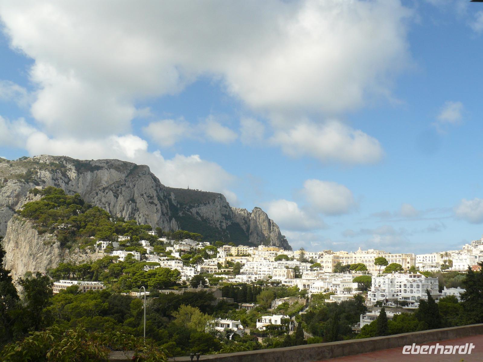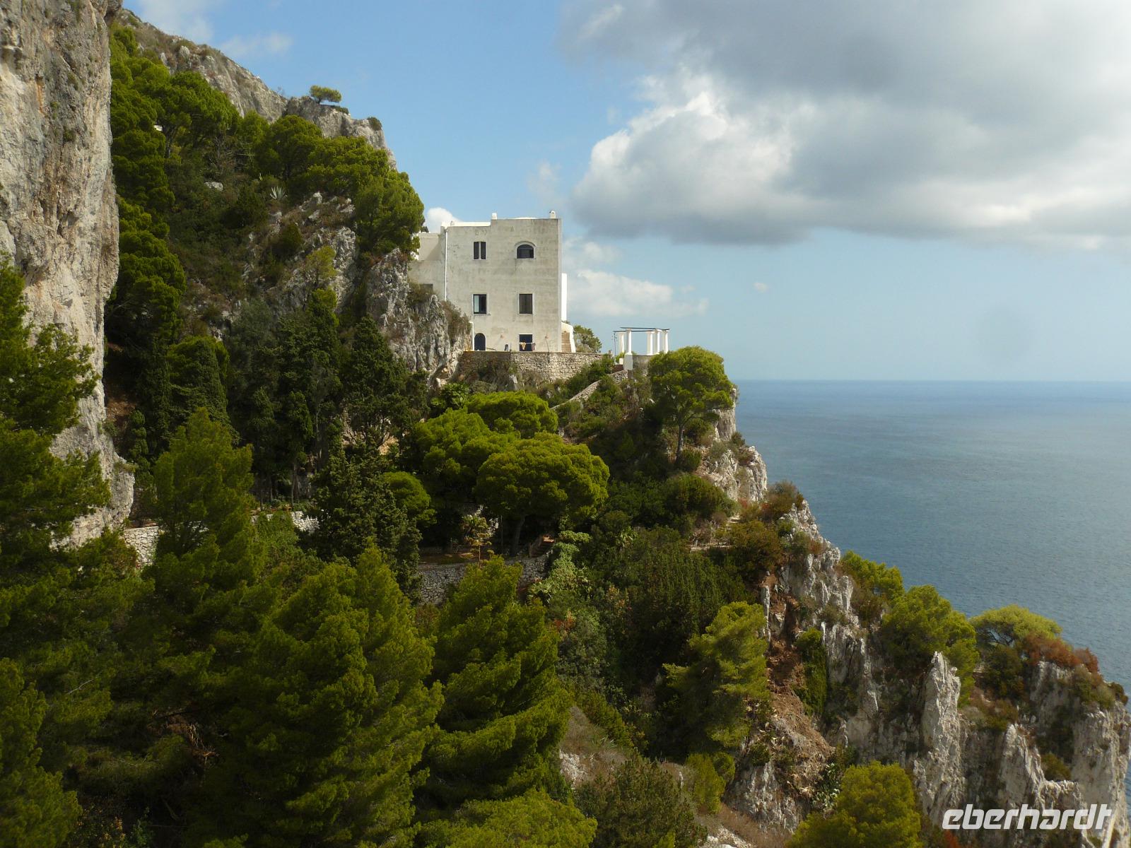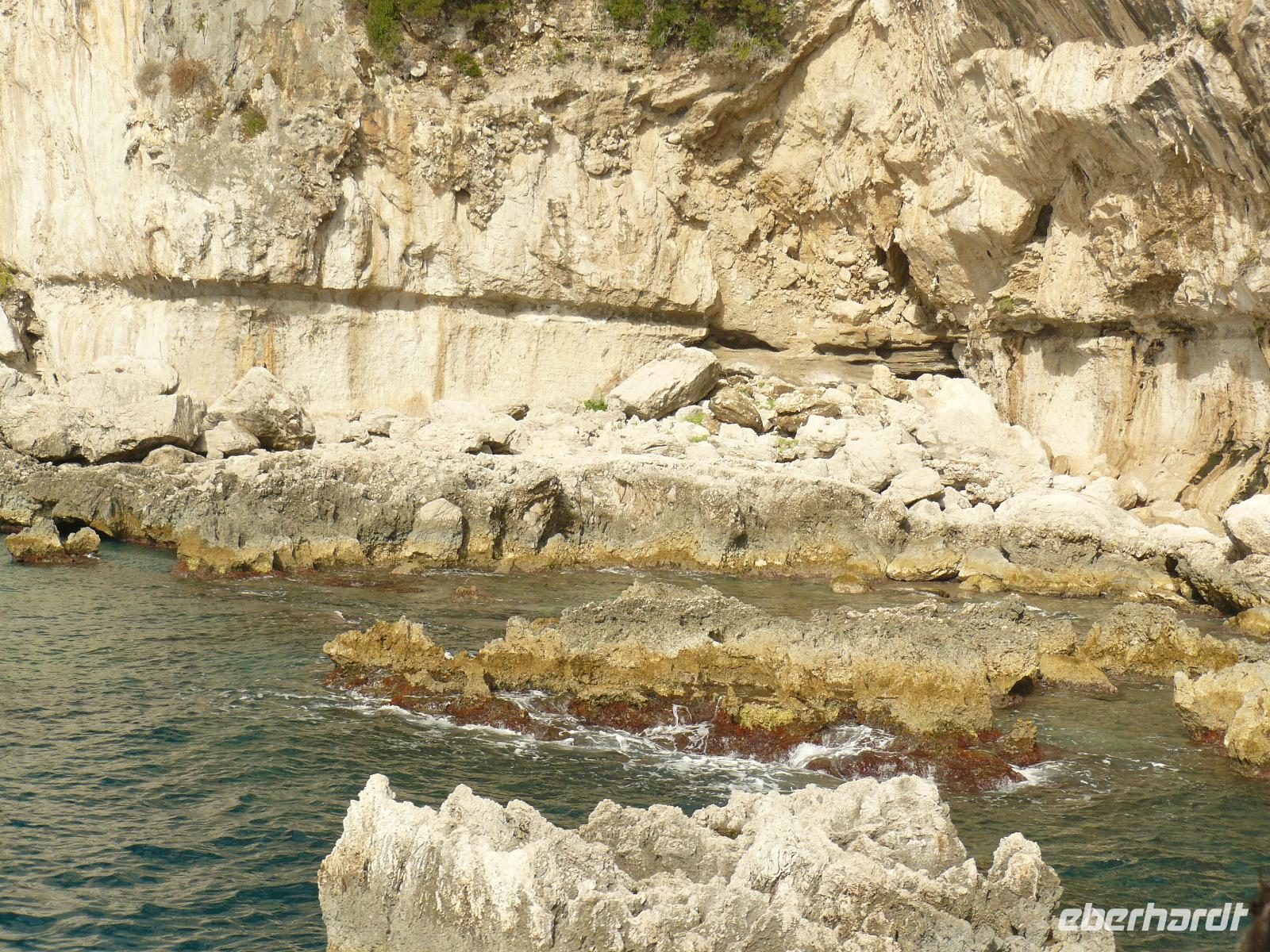 Capri sehen und ... nein, sterben wollten wir nicht! Und wir überlebten alle diesen schönen, langen Tag blendend. Unser Schiff fuhr um 8:20 Uhr. Wir waren zwar nicht die ersten Gäste an Bord in Minori aber wir fanden trotzdem alle noch ein Plätzchen an Deck. Dann fuhren wir über Amalfi und Positano nach Capri. Dort fuhren wir an der Südküste entlang, bekammen die Korallengrotte und die Weiße Grotte gezeigt und sahen hinauf zur Villa Malapartes und zum Arco Naturale. Hier oben würden wir wenig später wandern. Dann näherten wir uns den berühmten Faraglioni-Inseln. Und das Schiff fuhr durch den Tunnel der mittleren Insel hindurch! Danach bekamen wir dann auch noch eine Inselrundfahrt per Schiff geboten. In Marina Grande besorgte ich ein Picknick und ab ging's dank der vielen Helfer recht zügig mit der Funicolare-Bahn hoch auf den Hauptplatz von Capri. Wir spazierten über den Bergrücken zu den Augustusgärten und genossen den Ausblick auf die Via Krupp, die sich im wahrsten Sinne des Wortes nach Marina Piccola den Hang hinunter schlängelt. Dann starteten wir mit unserer Wanderung und machten unweit der Faraglioni-Inseln an einer schattigen Stelle unsere Picknickpause. Mal wieder lachte für uns die Sonne und das Meer schimmerte in türkisblauen Tönen. Auch dieses Mal war unser Mahl sättigend und sehr gut. Dann wanderten wir an der Villa Malaparte vorüber, stiegen hoch zum Felsentor Arco Naturale und wanderten zurück nach Capri. Hier trennten wir uns, denn einige Gäste wollten den Nachmittag etwas ruhiger angehen.