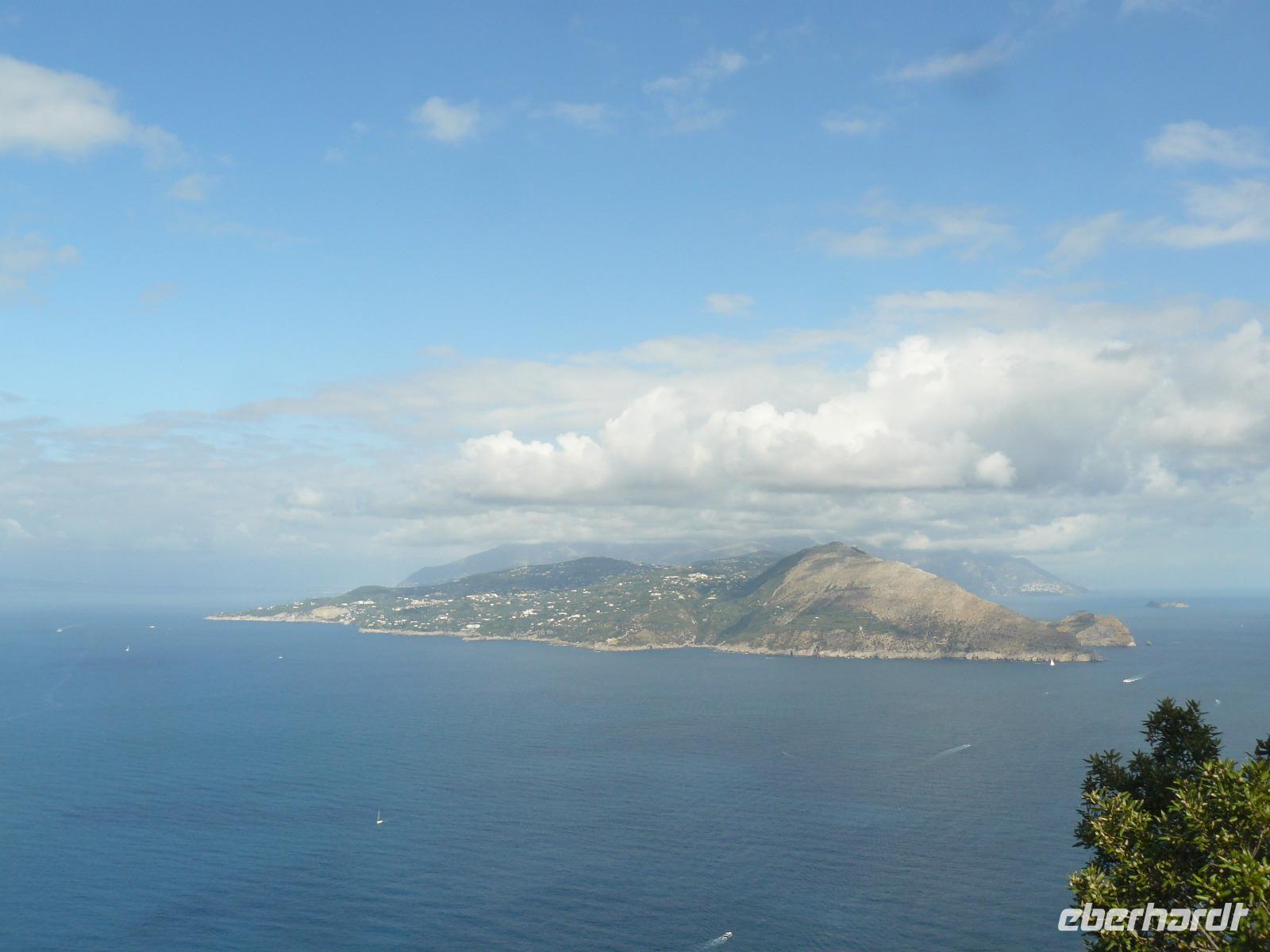 Der harte Kern folgte mir noch weiter hoch zur Villa Jovis. Wir genossen die Aussicht auf die Küste und durchschritten das Zuhause von Kaiser Tiberius oder das, was noch davon übrig ist. Ischia, der Vesuv, die Amalfitana - alles konnte man sehen. Ein herrlicher Rundumblick. Danach wanderten wir zu Fuß zum Hafen hinunter. Am Hafen von Marina Grande trafen wir uns alle wieder und zum Abschluss besorgte ich noch Eis für alle. Das Meer war ruhig und wir genossen die Abendstimmung auf dem Wasser bei unserer Rückreise per Boot. Voller Bilder in Blau kehrten wir abends ins Hotel zurück und ein weiteres leckeres Essen folgte.