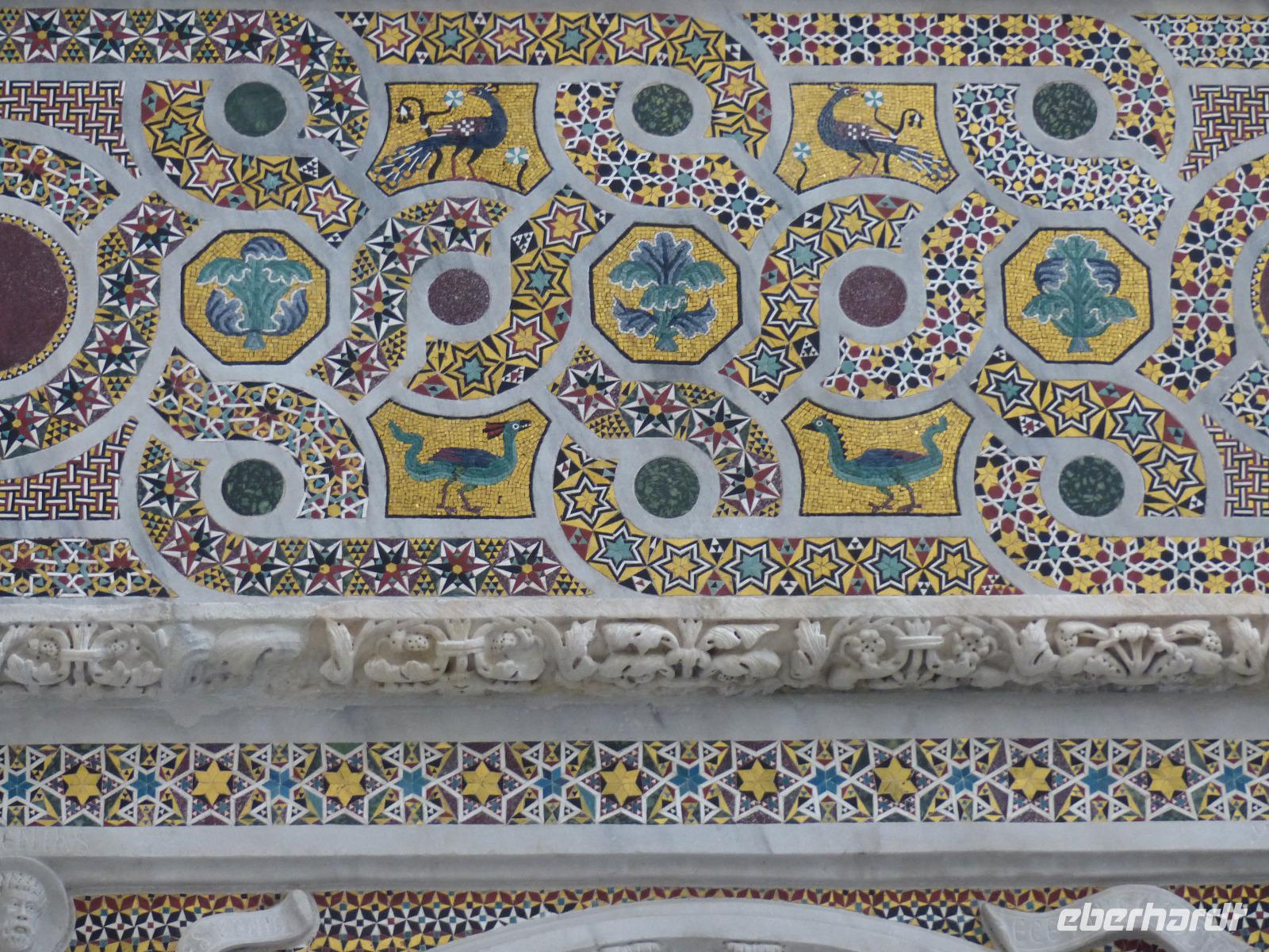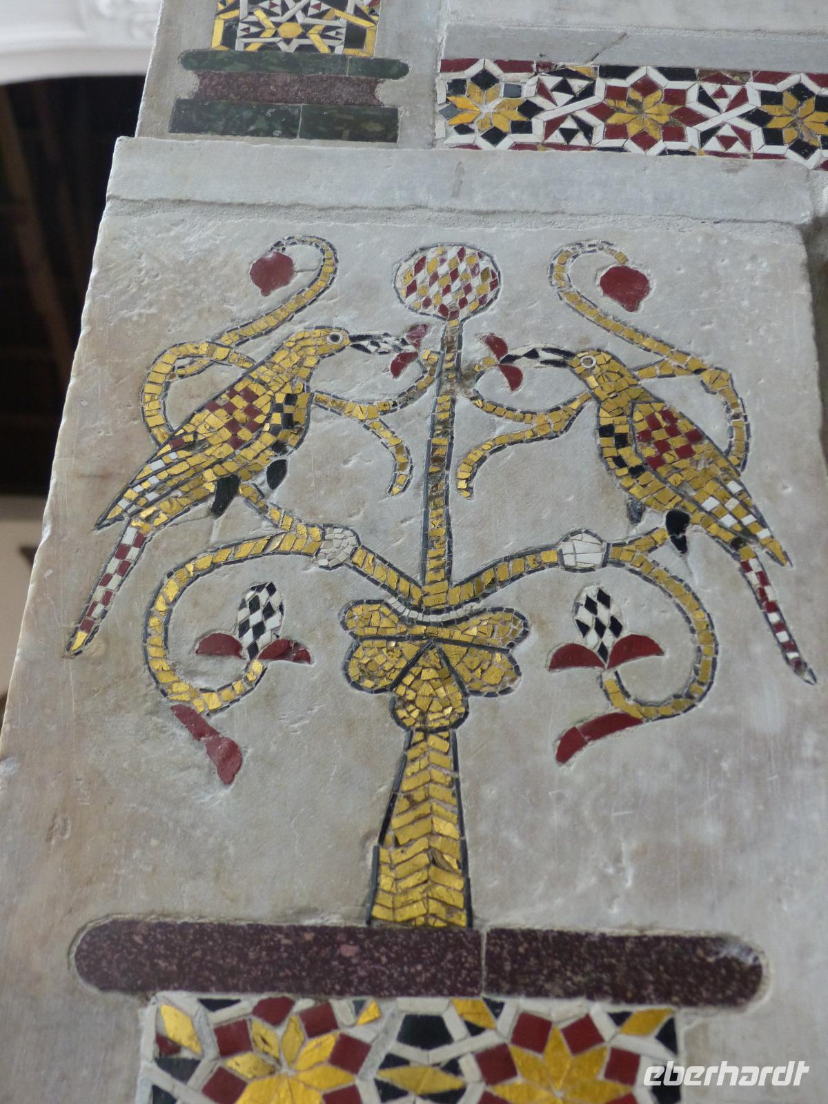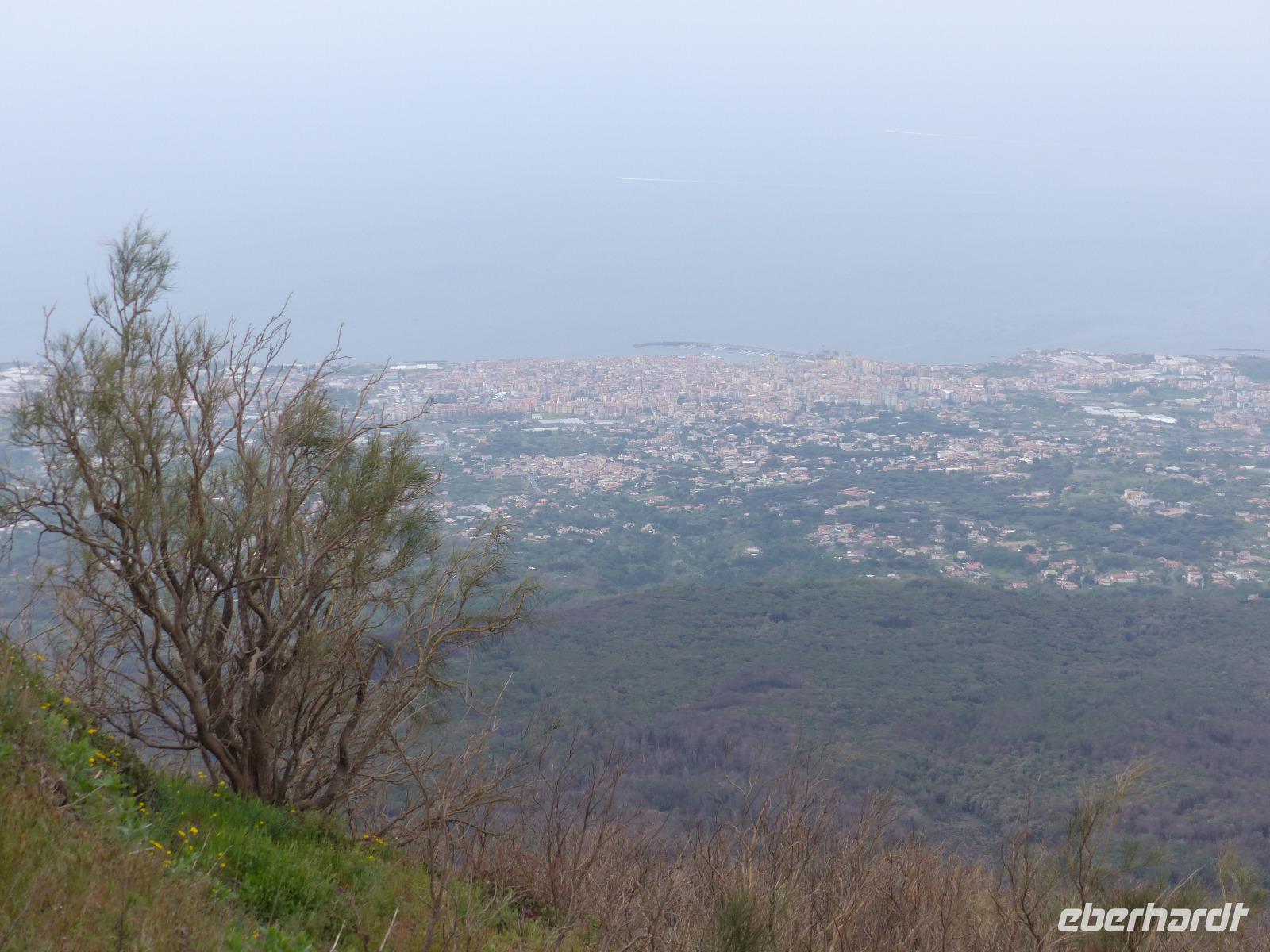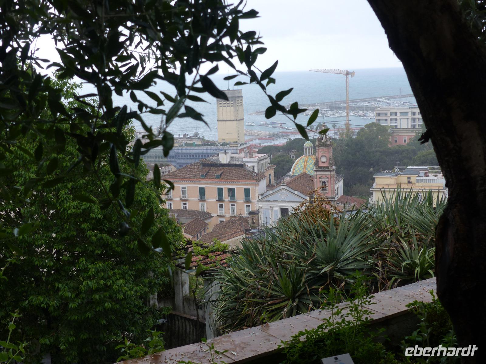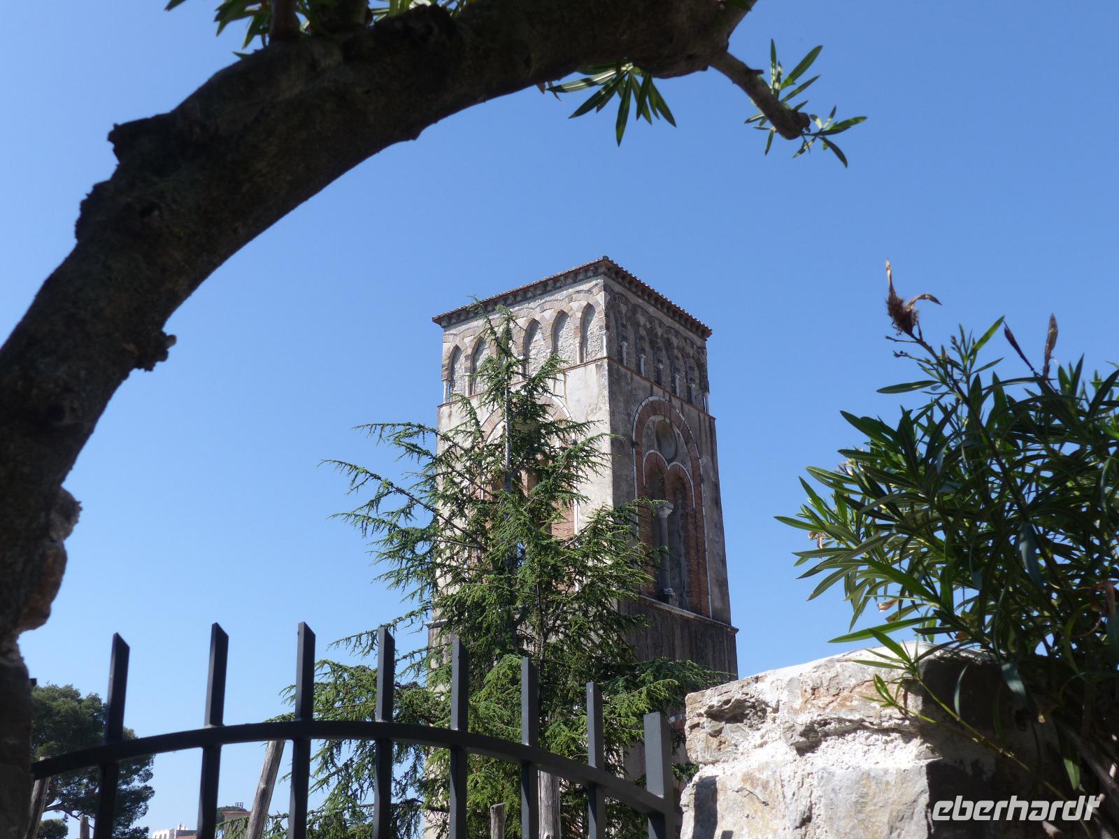 Die letzte offizielle Wanderung hätte uns ins Valle delle Ferriere führen sollen. Auch das sollte nicht sein! Die Vorhersage versprach uns nicht nur stärkeren Regen, sondern Gewitter mit Blitzen in den Bergen. Was ist dieses Frühjahr nur am Mittelmeer los - das deutsche Fernsehen hatte am Vorabend von Unwettern auf Mallorca berichtet, während in Deutschland die Sonne schien. Nun denn. Wir planten mal wieder um. Unser heutiges Ziel war Salerno. Aus dunkelgrauen Wolken wurden hellgraue Wolken, die uns ab und zu mal mit einem kleinen Schauer versorgten, aber der starke Dauerregen und die Blitze waren irgendwo anders heruntergegangen. Wir bummelten durch die Fußgängerzone und besuchten den Dom. Was für ein schönes Bauwerk! Der braucht sich hinter dem Dom von Amalfi gar nicht zu verstecken. Im Kreuzgang kann man noch die Reste des römischen Tempels erkennen, der hier früher einmal stand, denn Salerno ist eine alte Stadt, deren Ursprünge weit in vorchristlicher Zeit liegen. Der Dom selbst wurde zu Beginn der Herrschaft der Normannen gebaut. Und die Normannen hatten ein Händchen wenn es darum ging, verschiedene Kulturen zusammenzuführen. Die massiven Rundbögen der romanischen Architektur bekamen Gesellschaft von den golden glitzernden Fresken der Byzantiner und den farbenfrohen geometrischen Mustern am Ambon und auf dem Boden, die von den Arabern gerne verwendet wurden. Danach zogen wir weiter bergauf zum Garten der Minerva. Athene, die Göttin der rationellen Kriegsführung, die in ihrem Schild das Haupt der Medusa trägt, wird von den Römern Minerva genannt. Nach ihr ist dieser Kräuter- und Medizingarten benannt, der sich aussichtsreich über 4 Terrassen am Steilhang zieht und Informationen zu alten Heilmethoden gibt. Auch das Haupt der Medusa kann man hier finden - als Brunnenfigur. Wir haben ihr ins Gesicht gesehen - die alte Dame ist wohl in die Jahre gekommen, denn ihr Blick ließ uns nicht zu Stein erstarren. Dieser Garten ist ein wirklich lohnendes Ziel in Salerno! Nach unserem Gartenbesuch durchstreunten wir die Gassen und fanden schließlich was wir suchten: den öffentlichen Aufzug in die Unterstadt. Dort machten wir es uns in einer Pizzeria gemütlich und schlemmten mal wieder. Nicht nur Pizza, v.a. begeisterten uns die fischhaltigen Vorspeisen. Antipasti mal ganz anders! Dann kam sogar die Sonne raus und am Nachmittag reisten wir wieder zurück nach Maiori. Dort stellten wir fest, dass wir genau das Richtige getan hatten, denn über Maiori brach das große Dunkelgrau an, das sich über die Berge geschoben hatte und bedenklich grummelte. Es hatte dort wohl den ganzen Tag die Urlauber donnernd genervt. Wir hatten dagegen in Salerno einen schönen Tag, der zwar so nicht geplant gewesen war, aber es hatte uns Spaß gemacht diese Stadt zu entdecken, und der eine oder andere fragte mich, ob wir diesen schönen Ausflug nicht ins reguläre Programm aufnehmen würden. Nun ja - es gibt so viele schöne Dinge zu sehen, rund um Amalfi...