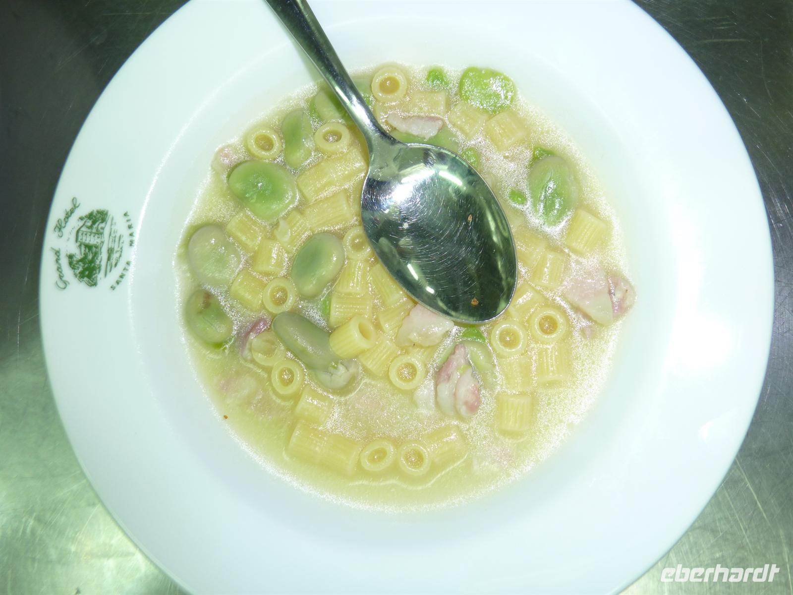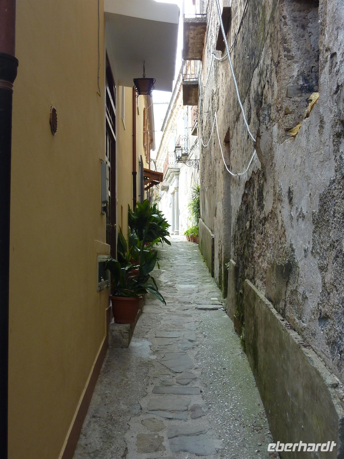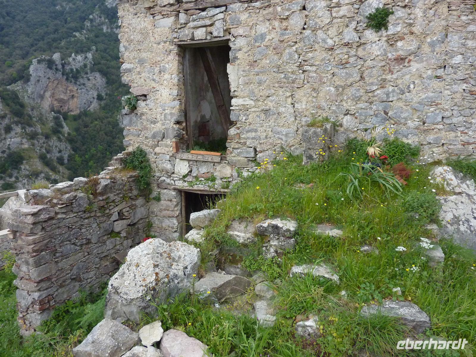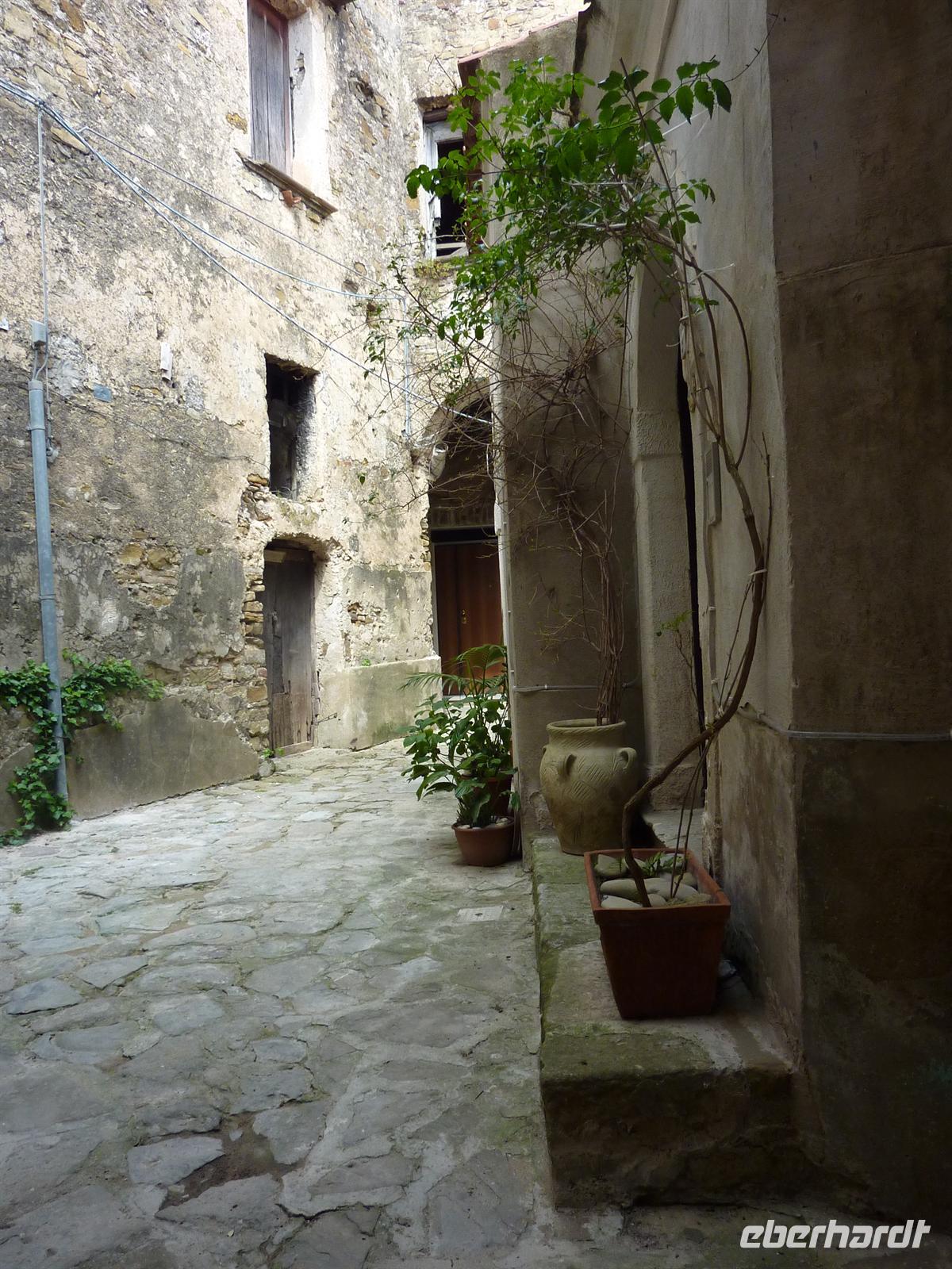 In den frühen Morgenstunden werden wir alle von unseren Wohnorten abgeholt und zum Flughafen Berlin-Schönefeld chauffiert. Hier lernen wir uns alle kennen: die angenehm kleine Wandergruppe mit 10 erwachsenen Personen und zwei kleinen, knapp 4 Jahre alten, Mädchen Svenja und Sophia. Per Direktflug gelangen wir nach 2 ½ Stunden Flugzeit nach Neapel. Hier holt uns Wanderführer Maurizio ab und bringt uns zu unserem Domizil für die nächsten Nächte - das Grand Hotel Santa Maria in Santa Maria di Castellabate. Wir beziehen unsere Zimmer, von denen wir alle freien Blick auf die Bucht von Salerno genießen können. Das Mittagessen geht italienisch turbulent zu - es gibt reichlich Nudeln in einem mit Italienern gut gefüllten Hotelrestaurant mit entsprechender Geräuschkulisse.Nach der kleinen Stärkung sind wir wieder voller Elan und besuchen am Nachmittag das Kastell von Castellabate, das 280m hoch über dem Meer auf einer Anhöhe liegt. Wir können die Vorbereitungen für eine Hochzeit im Kastell beobachten und erfreuen uns an dem herrlichen Ausblick auf die unter uns liegende Meeresbucht. Anschließend bummeln wir durch den historischen Ortskern mit den engen Gassen, romantischen Gassen und dicht aneinander stehenden Häusern. In der romanischen Basilika von Castellabate erfahren wir bei einer Führung viel Wissenswertes über die Entstehung des Ortes; wichtigster Kunstschatz in der Kirche ist ein Gemälde aus dem 15. Jh. Auf der kleinen, romantischen Piazza genehmigen wir uns den ersten, wirklich guten italienischen Cappuccino oder einen Espresso! Hmm, schmeckt wirklich wie beim Italiener! - Und das bei strahlendem Sonnenschein.Beim Abendessen sind wir stolz, dass wir so einen überaus langen Tag erfolgreich gemeistert haben. Wir werden alle mit einer Kleinigkeit vom Eberhardt-Osterhasen belohnt. Auch die Kleinsten haben an diesem Tag bis zum Abendessen durchgehalten. Wir sind am Abend so müde, dass uns ein kurzzeitiger Stromausfall im Hotel nicht mehr aus der Ruhe bringt.