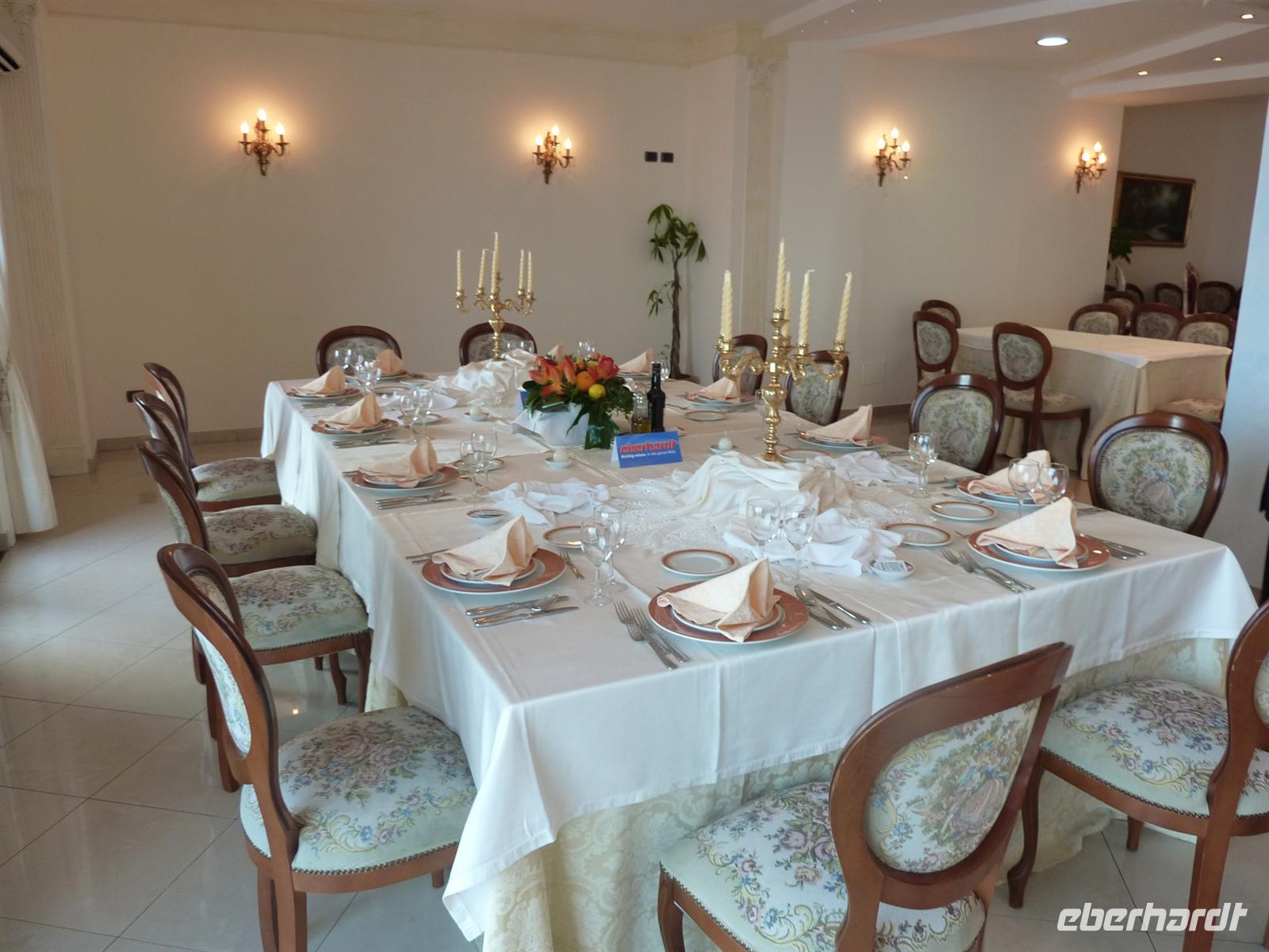 Am Morgen verlassen wir den Cilento-Nationalpark und fahren Richtung Norden. Unterwegs halten wir an der Büffelmozzarella-Farm Vanullo. Wir schauen bei der Mozzarella-Herstellung zu und verkosten leckeren Büffel-Milch-Joghurt - hm, sehr gut.Wir erreichen Salerno nach anderthalb Fahrtstunden und lernen unsere nette Reiseleiterin Esther kennen. Gemeinsam mit ihr fahren wir entlang der Amalfitana. Esther erklärt uns die Höhepunkte entlang dieser „schönsten Straße der Welt" sehr anschaulich! Die enge Straße windet sich entlang der Steilküste. Die Häuser hangeln sich an den steilen Hängen hinauf, unglaublich, wie die Menschen hier bauen konnten und bis heute leben. Die Aus- und Weitsichten auf das unter uns blau schimmernde Meer sind fantastisch! Wir erreichen Amalfi um die Mittagszeit und bummeln mit Esther durch die Stadt und verkosten sogar den typischen Limoncello. Der Dom von Amalfi fasziniert mit dem Kreuzgang des Paradieses. Unser Mittagessen nehmen wir in einem tollen Restaurant im Hafen von Amalfi. Wir genießen ein vorzügliches Mittagessen mit Blick auf Fischerboote vor dem Hintergrund der Kulisse der Stadt Amalfi! Wirklich toll!Nach kurvenreicher und spektakulärer Fahrt erreichen wir unser Domizil für die nächsten beiden Nächte - das Grand Hotel St. Orsola in Agerola. Das Hotel klebt förmlich am steil abfallenden Hang und bietet in 630Metern Höhe einen spektakulären Ausblick auf die Amalfiküste. Wir werden herzlich vom Hotelchef Stefano und seiner Mannschaft empfangen. Zur Begrüßung gibt es vom Hotel einen Prosecco und „Eberhardt" spendiert jedem eine frische Sfogliatella, ein typisch napoletanisches Blätterteiggebäck mit Ricottafüllung. Nahezu gleitend ist der Übergang zum festlichen Abendessen im Hotelrestaurant. Wir dinieren an einer festlich gedeckten Tafel bei Kerzenschein und freuen uns auf weitere Eindrücke an dieser beeindruckenden Küste am nächsten Tag.
