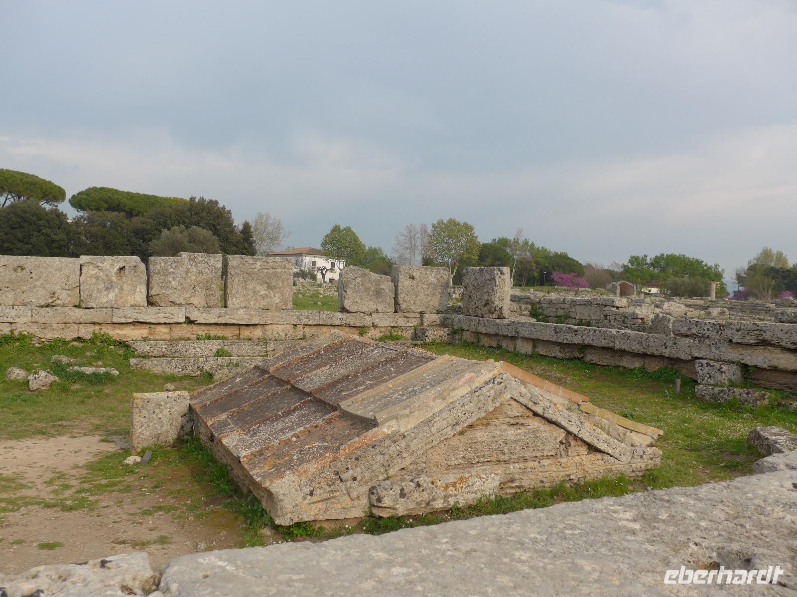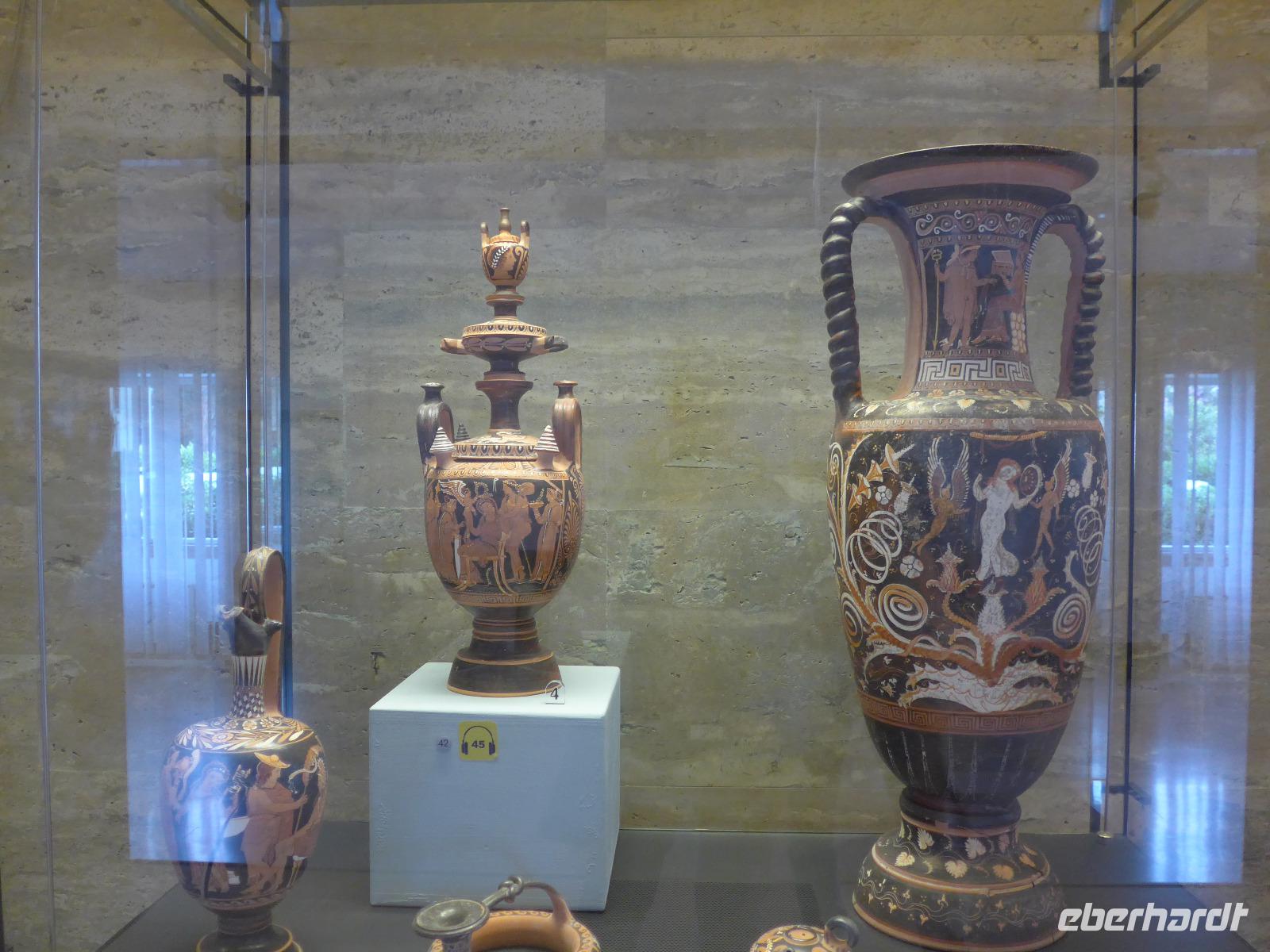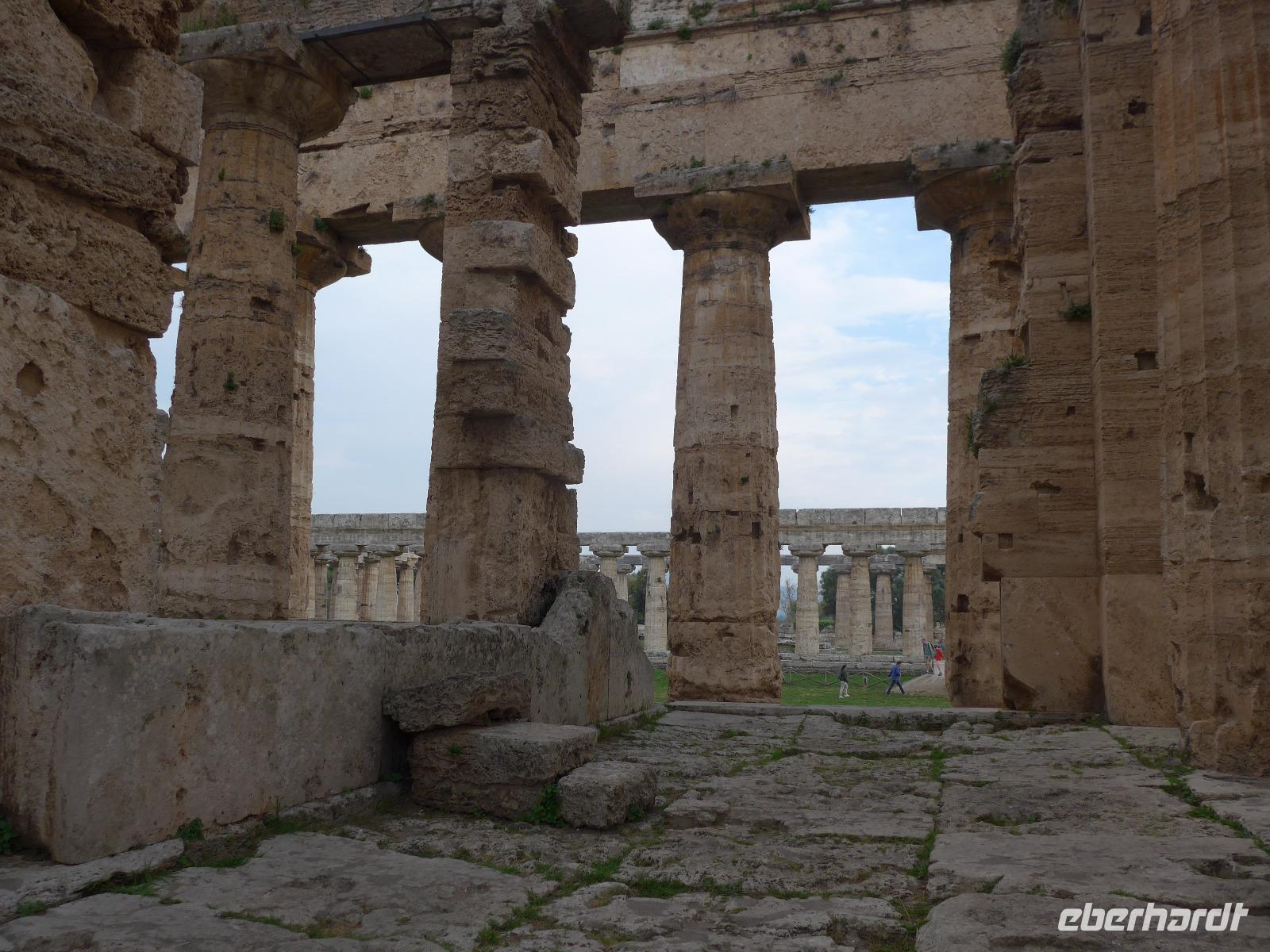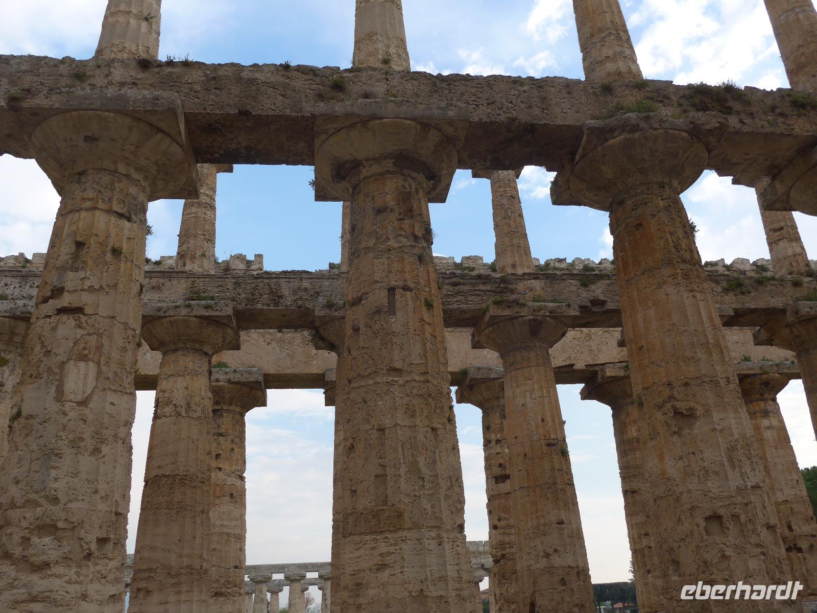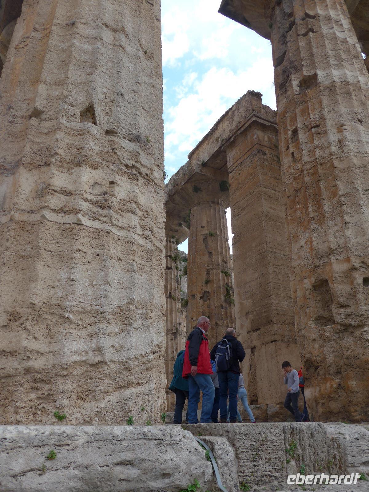 Wir flogen mit Air Berlin nach Neapel. Nach langem Warten am Kofferband erfuhren wir, daß für einige Teilnehmer unserer Gruppe die Koffer nicht ankamen. Wir ließen den Verlust registrieren und konnten dann endlich unsere 2 Teilnehmer aus München kommend begrüßen und uns zum Bus begeben. Unser Busfahrer Emilio brachte uns nach Paestum, wo Angelo die Gruppe schon erwartete. Gemeinsam besichtigten wir die zahlreichen Ausstellungsstücke im archäologischen Museum von Paestum. Vor allem die Gräber der Lukanier und das berühmte griechische Grab des Tauchers machen das Museum so einmalig. Aktuell wurden noch viele Ausstellungsstücke aus dem Museum Grand Tour integriert. Im riesigen Ausgrabungsgelände sahen wir dann noch die 3 großen und gut erhaltenen Tempel und wir konnten den Poseidon-Tempel auch innen betreten. Das war neu in diesem Jahr. Nach reichlich 2 Stunden Besichtigung fuhren wir noch ein kurzes Stück bis zu unserem Hotel Esplanade in Paestum - unsere Bleibe für die ersten 6 Nächte der Reise. Zuvor hielten wir noch kurz an einem Einkaufs-Center, damit die Gäste ohne Koffer das Nötigste besorgen konnten.Nach der Zimmerverteilung gab es endlich was zu essen und dann freuten sich alle auf ihr Bett.
