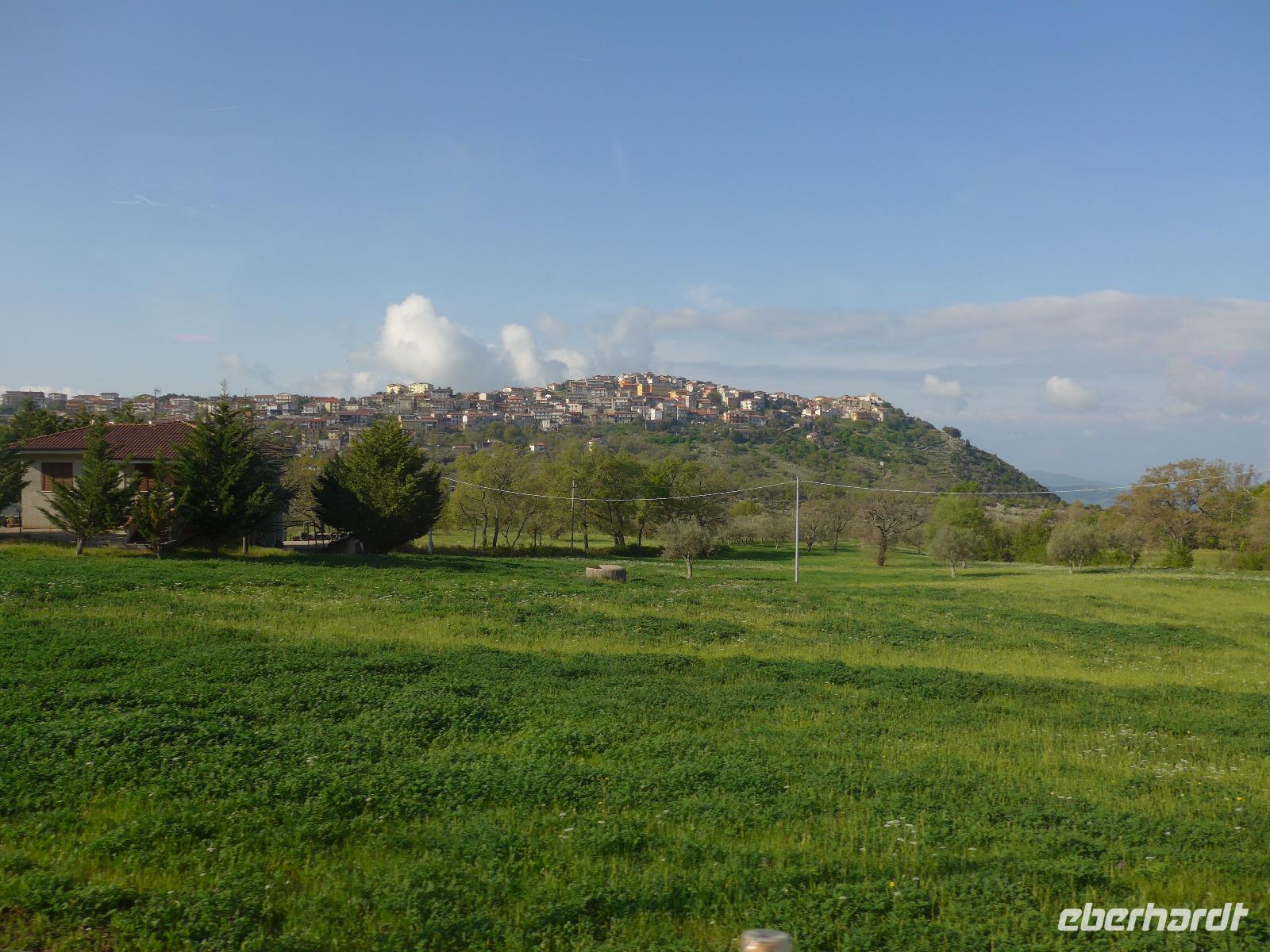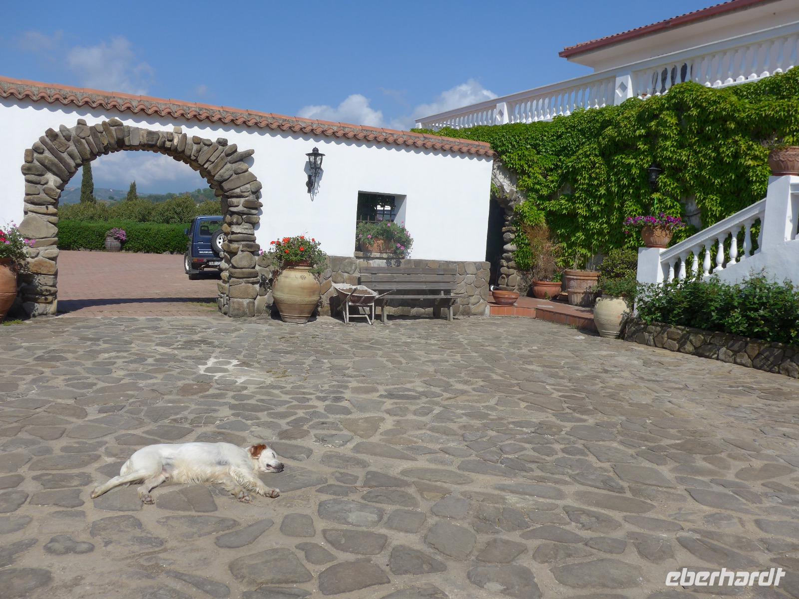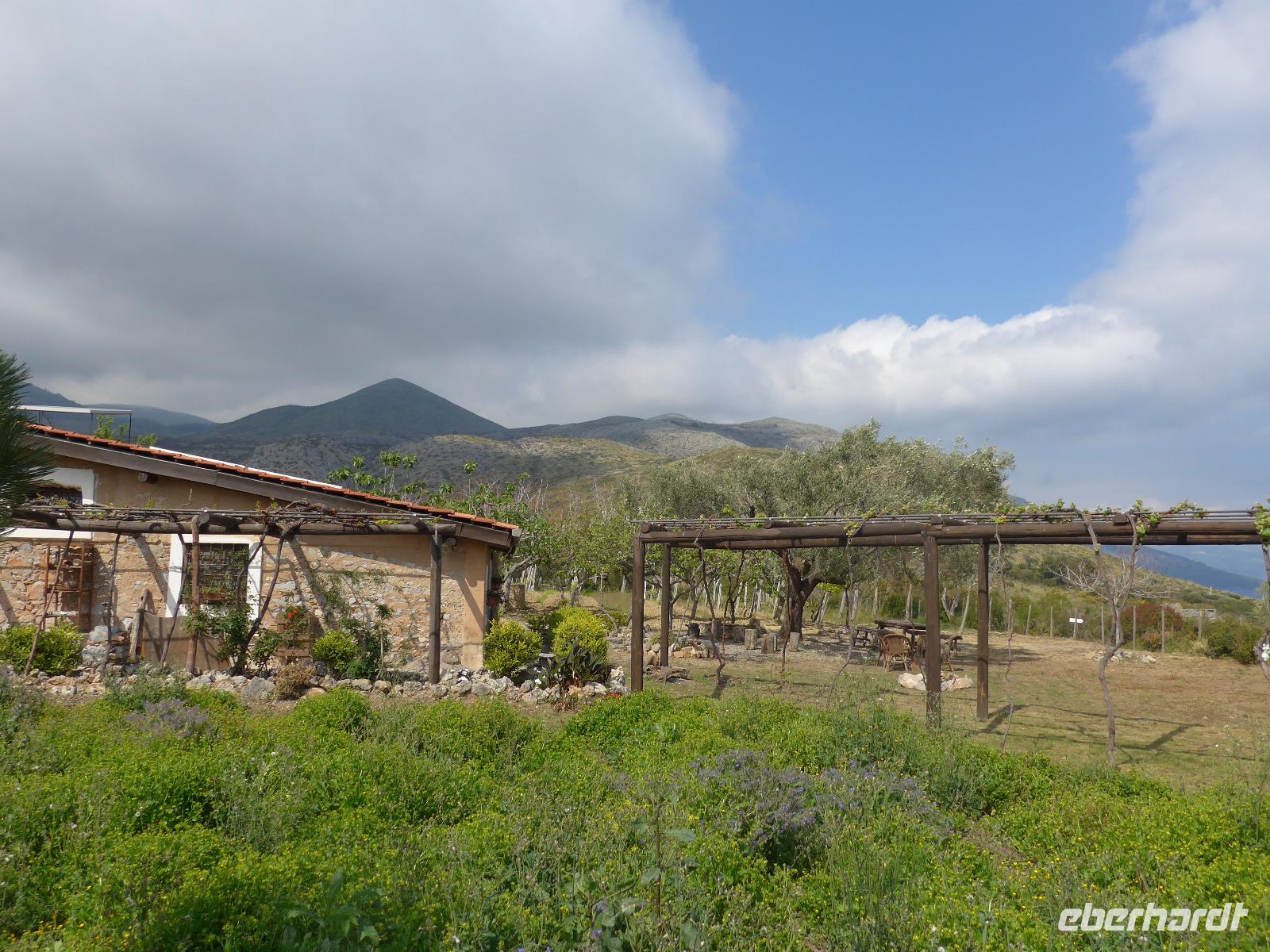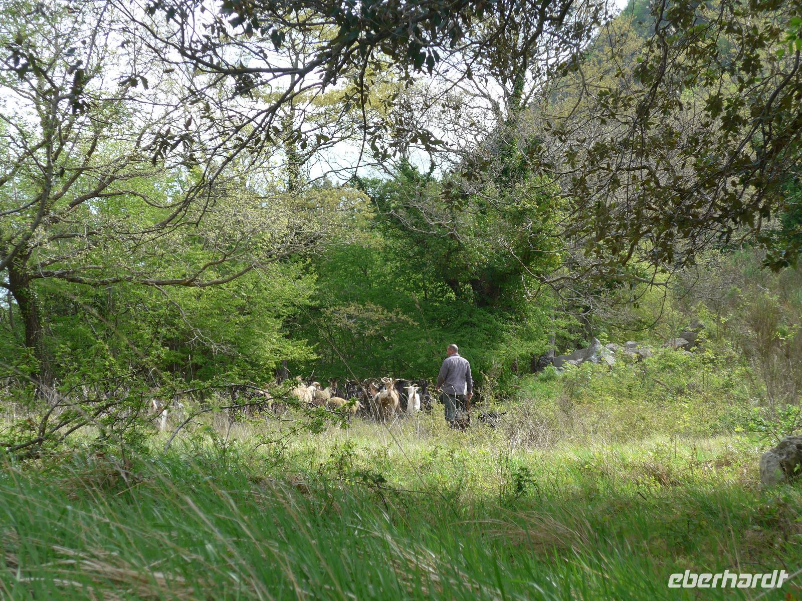 Zum Frühstück kam der Osterhase und brachte jedem ein kleines Osternest. Dann brachen wir auf mit Angelo zu einer Fahrt ins Landesinnere des Cilento. Über Capaccio-Monteforte Cilento fuhren wir nach Magliano Nuovo. Der Ort liegt aussichtsreich auf einem Hügel und wir stiegen hinauf zur höchst gelegenen Bar für eine Kaffee- und WC Pause. Dort probierten wir den Osterkuchen und beim Hinuntergehen zum Schluchteingang überraschte uns eine Cilentanerin mit frisch Gebackenem auf der Straße. Das war eine tolle Überraschung! Auf dem Weg hinunter trafen wir einen Hirten mir seiner Ziegenherde und den Hütehunden. Dann ging es in Serpentinen steil bergab bis zum Grund der Calore-Schlucht. Überall war frisches Grün und außer uns war niemand dort unterwegs - ein wunderbarer Osterspaziergang ! Vor unserer Mittagspause trafen wir eine Teilnehmerin wieder, die mit dem Bus zum Schluchtende gefahren war. In Remolino gab es dann ein üppiges Ostermahl mit einem Vorspeisenteller, den berühmten handgemachten Fusilli, Osterkuchen mit einem Espresso und wir durften zum Schluß den selbst gebrannten Weißdorn- und Myrtenschnaps des Chefs probieren. Mit vollem Bauch stiegen wir hinauf zur Hauptstrasse und von dort brachte uns der Bus auf wieder aussichtsreicher Straße zurück zum Hotel. Unterwegs gab es ein Gewitter mit Starkregen, aber das störte uns nicht mehr.