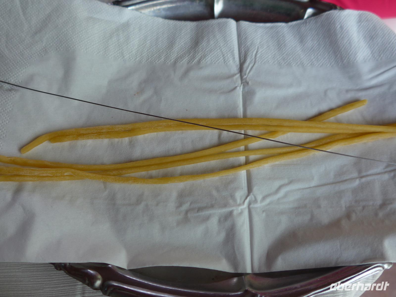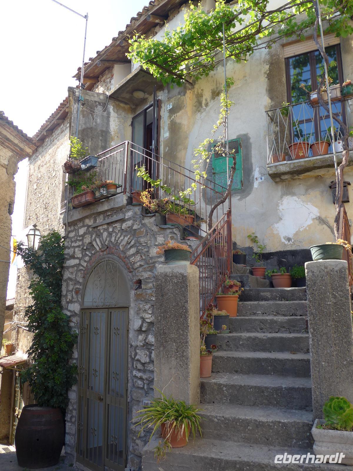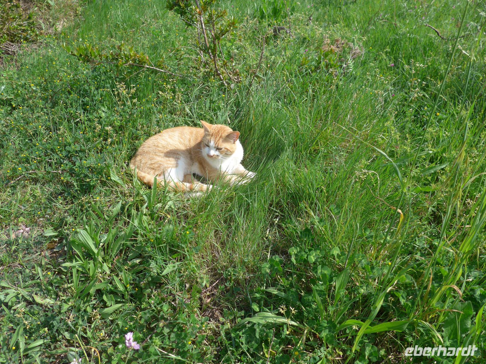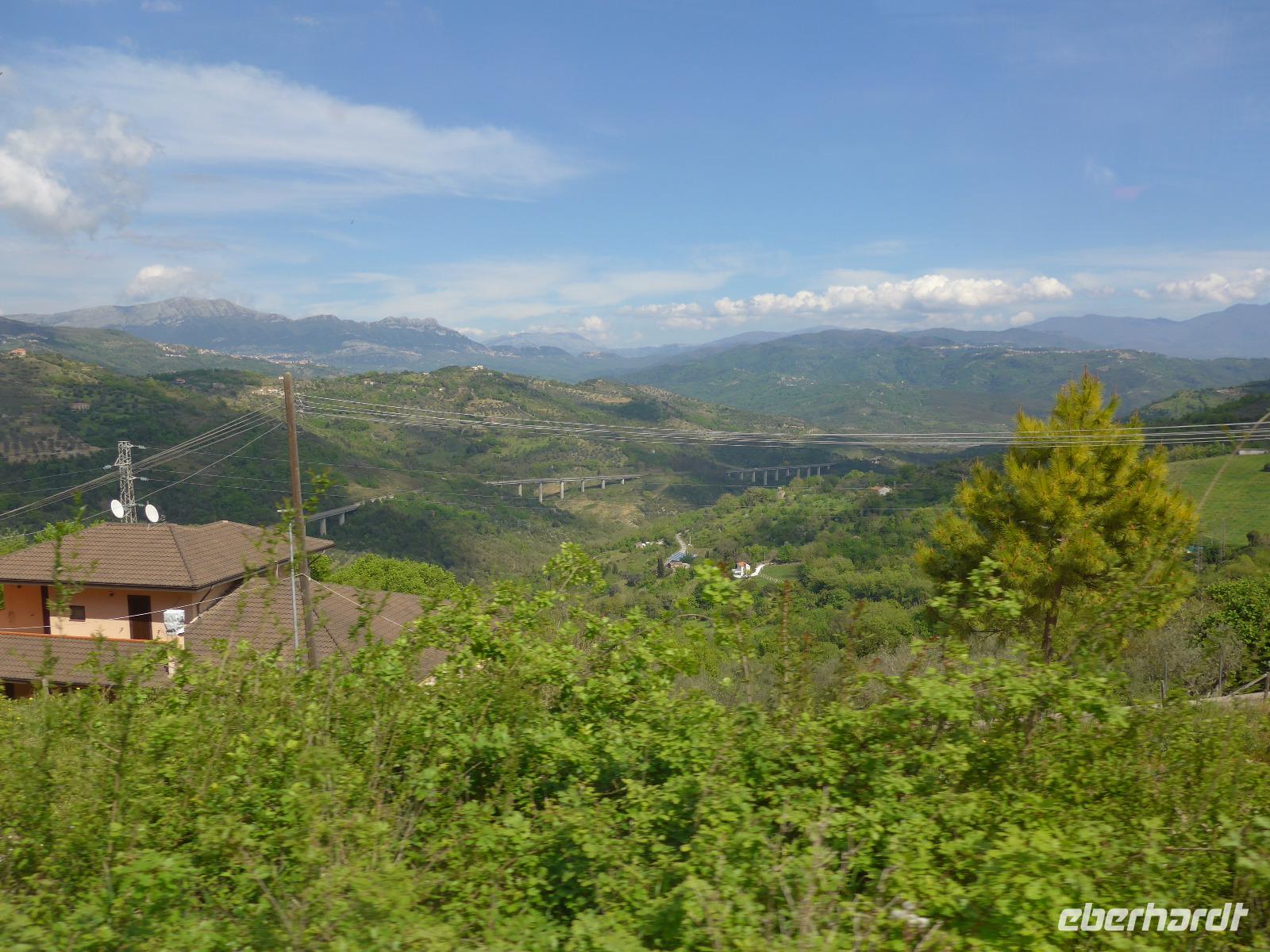 Zum Frühstück kam der Osterhase und brachte jedem ein kleines Osternest. Dann brachen wir auf mit Angelo zu einer Fahrt ins Landesinnere des Cilento. Über Capaccio-Monteforte Cilento fuhren wir nach Magliano Nuovo. Der Ort liegt aussichtsreich auf einem Hügel und wir stiegen hinauf zur höchst gelegenen Bar für eine Kaffee- und WC Pause. Dort probierten wir den Osterkuchen und beim Hinuntergehen zum Schluchteingang überraschte uns eine Cilentanerin mit frisch Gebackenem auf der Straße. Das war eine tolle Überraschung! Auf dem Weg hinunter trafen wir einen Hirten mir seiner Ziegenherde und den Hütehunden. Dann ging es in Serpentinen steil bergab bis zum Grund der Calore-Schlucht. Überall war frisches Grün und außer uns war niemand dort unterwegs - ein wunderbarer Osterspaziergang ! Vor unserer Mittagspause trafen wir eine Teilnehmerin wieder, die mit dem Bus zum Schluchtende gefahren war. In Remolino gab es dann ein üppiges Ostermahl mit einem Vorspeisenteller, den berühmten handgemachten Fusilli, Osterkuchen mit einem Espresso und wir durften zum Schluß den selbst gebrannten Weißdorn- und Myrtenschnaps des Chefs probieren. Mit vollem Bauch stiegen wir hinauf zur Hauptstrasse und von dort brachte uns der Bus auf wieder aussichtsreicher Straße zurück zum Hotel. Unterwegs gab es ein Gewitter mit Starkregen, aber das störte uns nicht mehr.
