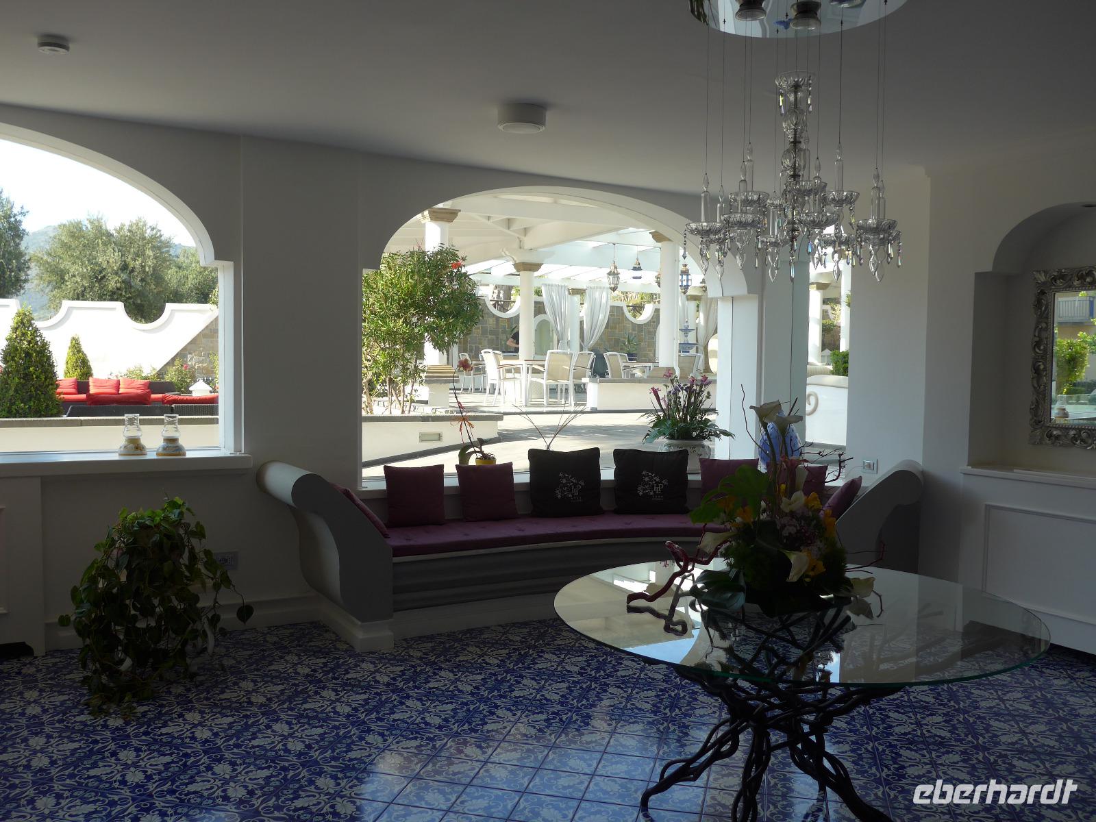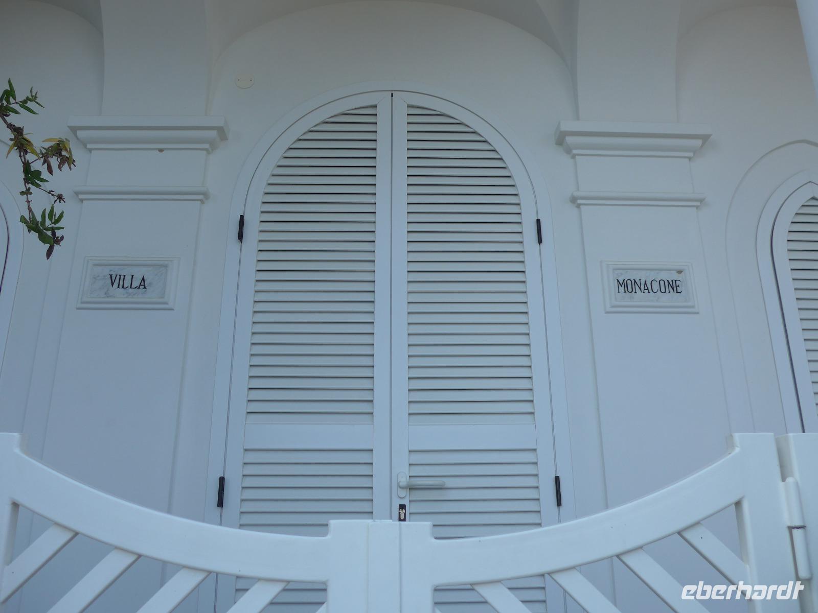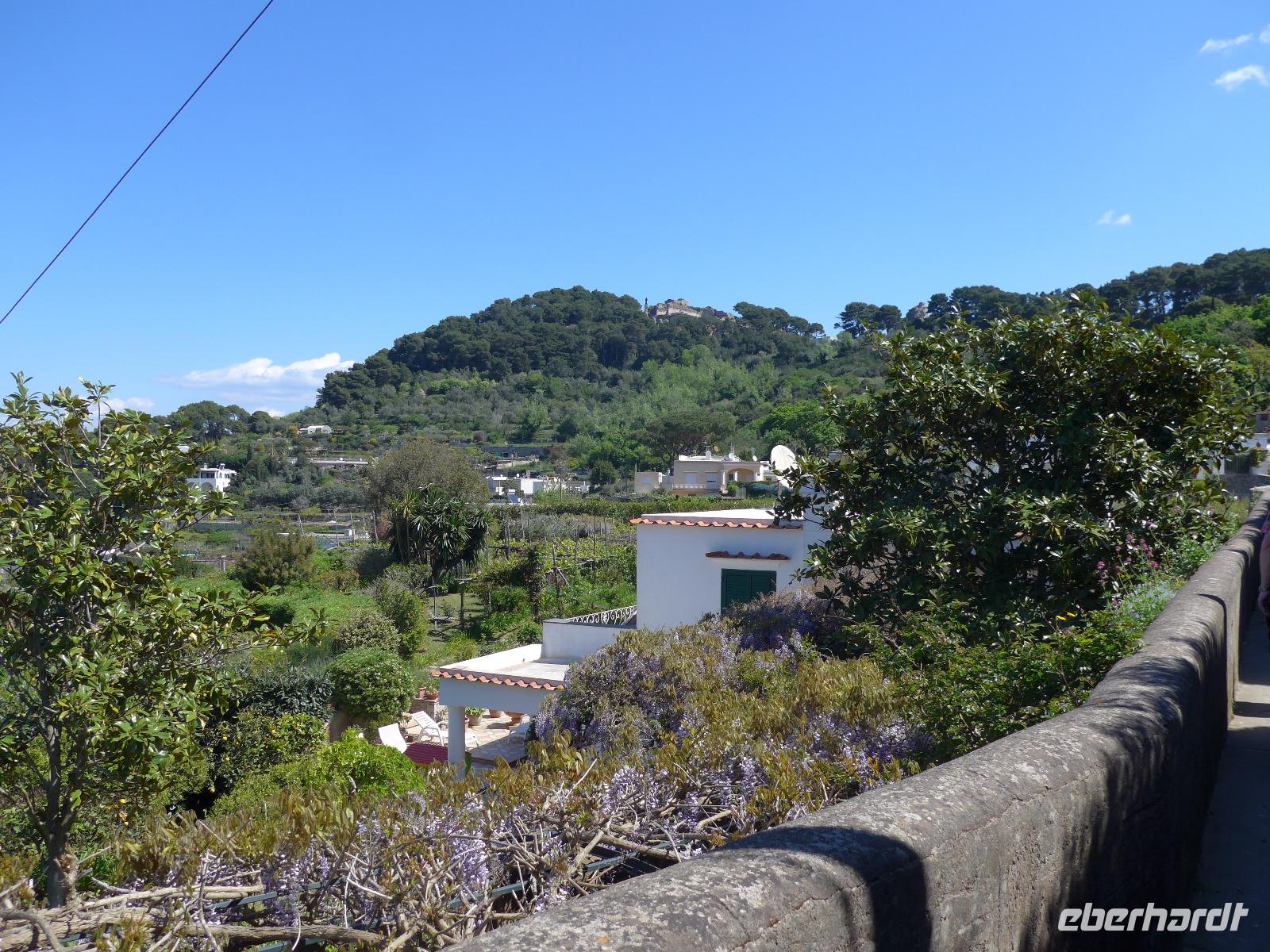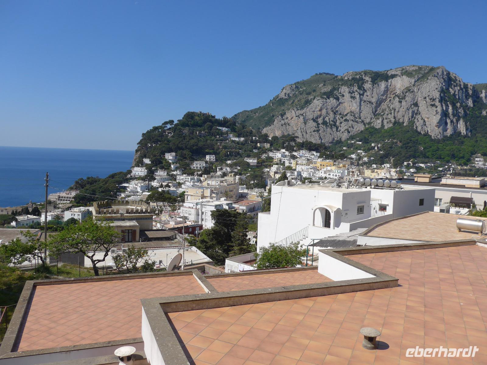 14 Gäste hatten sich für diesen Ausflug eingeschrieben und so starteten wir nach dem Frühstück zu Fuß zum Hafen in Sorrent. Wir fuhren mit der großen Fähre von Caremar eine halbe Stunde hinüber nach Capri. Annamaria stand schon am Hafen und begrüßte uns. Gemeinsam wanderten wir hinauf zur Piazzetta, dem touristischen Zentrum der Insel. Am Aussichtsbalkon erklärte uns Annamaria den Aufbau der Insel und gab viele allgemeine wichtige Informationen. Wir überquerten die Piazzetta und gingen durch die engen Gassen hinauf zur Villa Jovis. Von hier regierte Kaiser Tiberius das römische Reich 11 Jahre lang. Die exponierte Lage am höchsten Punkt Capris bot auch uns sehr schöne Ausblicke zum Vesuv, der sorrentinischen Halbinsel und zur Amalfiküste. Nach der Besichtigung der Villa gingen wir zurück zum Mittagessen ins "Da Tonino". Wir wurden vom Chef schon erwartet und bekamen als Vorspeise verschiedene Teigtaschen und dann die legendären Ravioli gefüllt mit Ricottakäse und Tomatensose dazu. Den Abschluß bildete eine Caprese Torte extra frisch für unsere Gruppe gebacken. Nun hatten wir genügend Kalorien aufgenommen und konnten unsere Wanderung zum Arco Naturale und zur Grotte Matermana beginnen. Über viele Stufen stiegen wir ab und dann wieder hinauf, um die Faragliono Felsen und die Villa Malaparte von oben zu bewundern. Der Weg endete an der Punta Tragara, wo das gleichnamige 5 Sterne Hotel steht.