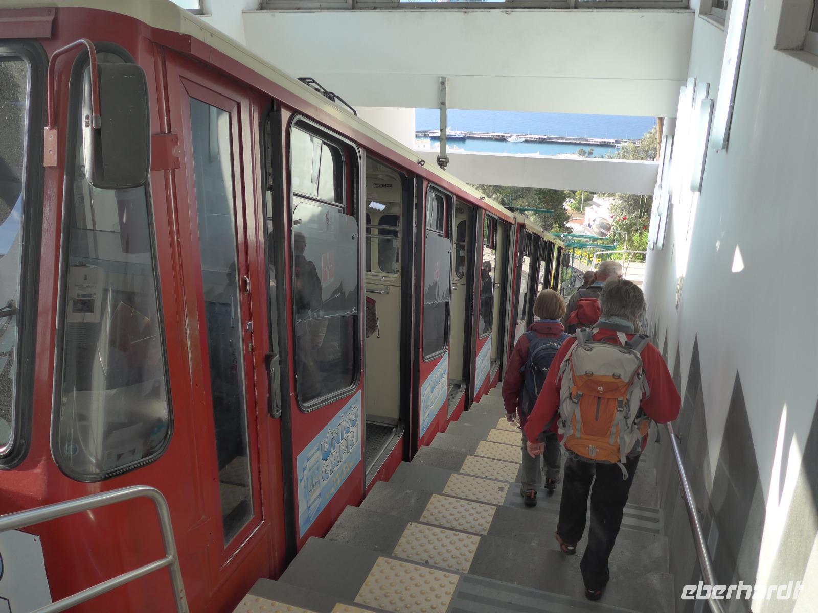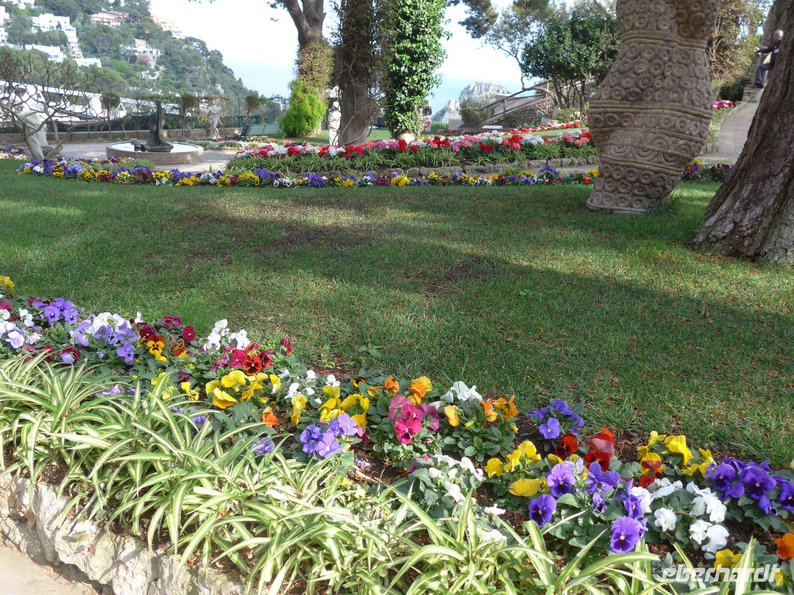 Auf dem Weg zu den Augustusgärten besuchten wir kurz die Parfümerie und nahmen einige Proben. Von den Augustusgärten hatten wir nochmals einen schönen Blick auf die Faraglioni und die Via Krupp. Gegen 18 Uhr verabschiedeten wir uns von Annamaria und fuhren mit der Funicolare hinunter ans Meer und von dort mit der Fähre wieder zurück nach Sorrent.